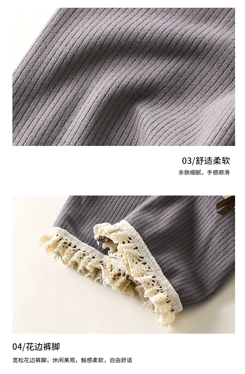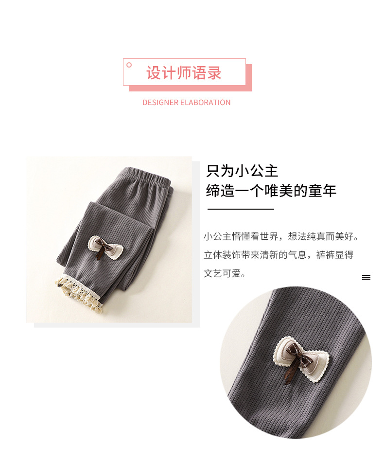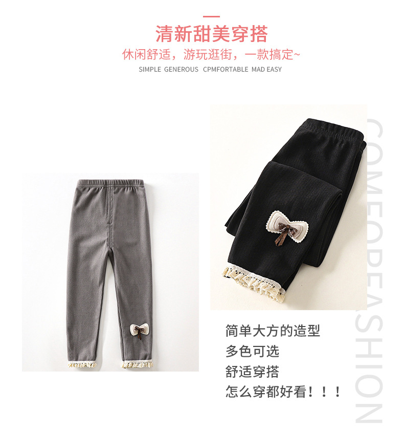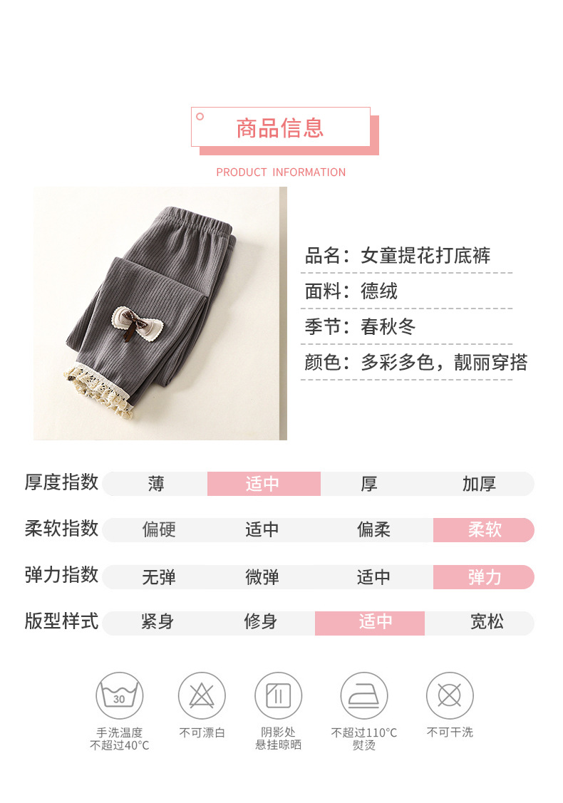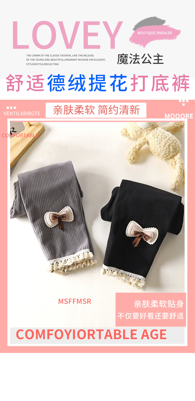 立减40【舒适德绒提花打底裤,亲肤柔软,简约清新】儿童打底裤秋季新款 女童德绒薄款 宝宝外穿花边长裤 女孩裤子-QQ#异业福利