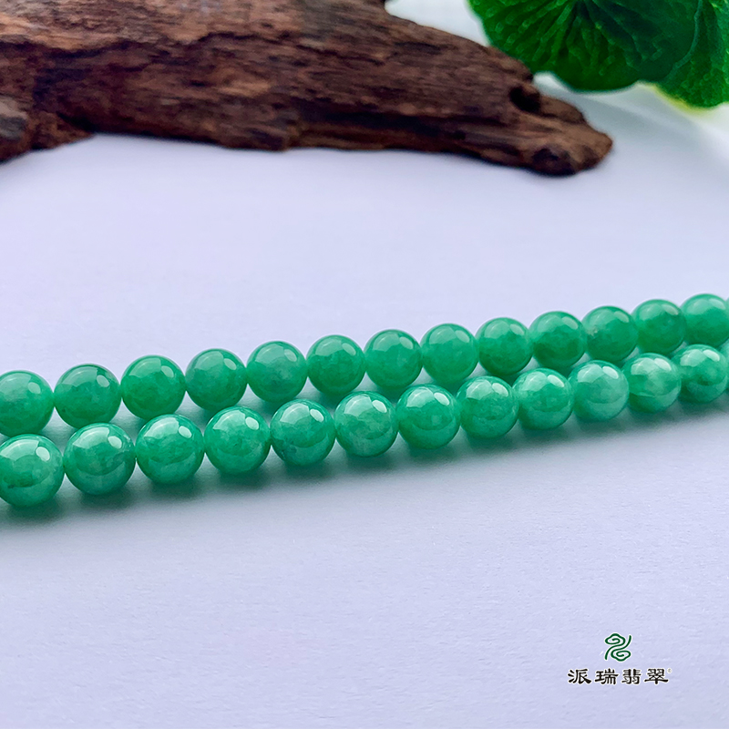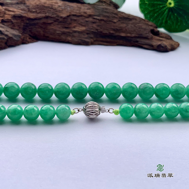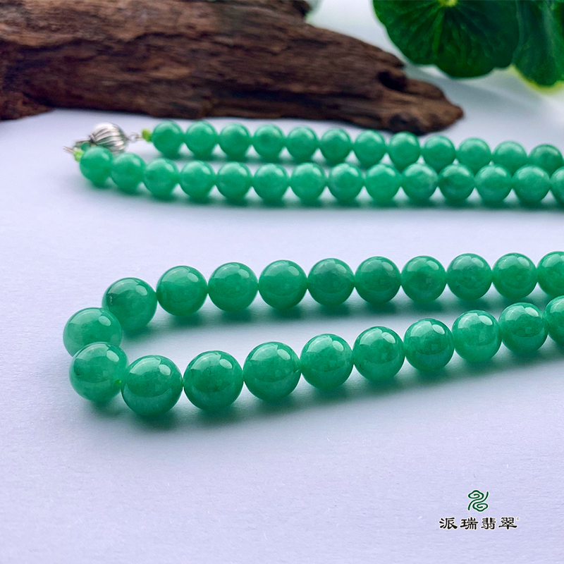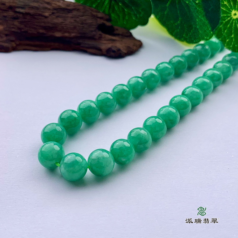 派瑞翡翠 翡翠珠链 糯种 满绿
