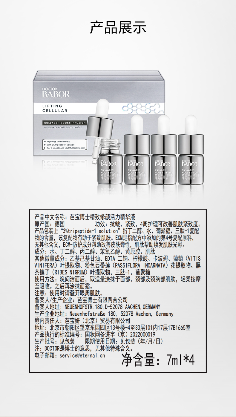 品牌直发 BABOR 芭宝博士 精致修颜活力精华液 7mLx4+精致修颜胶原活力面霜 50mL