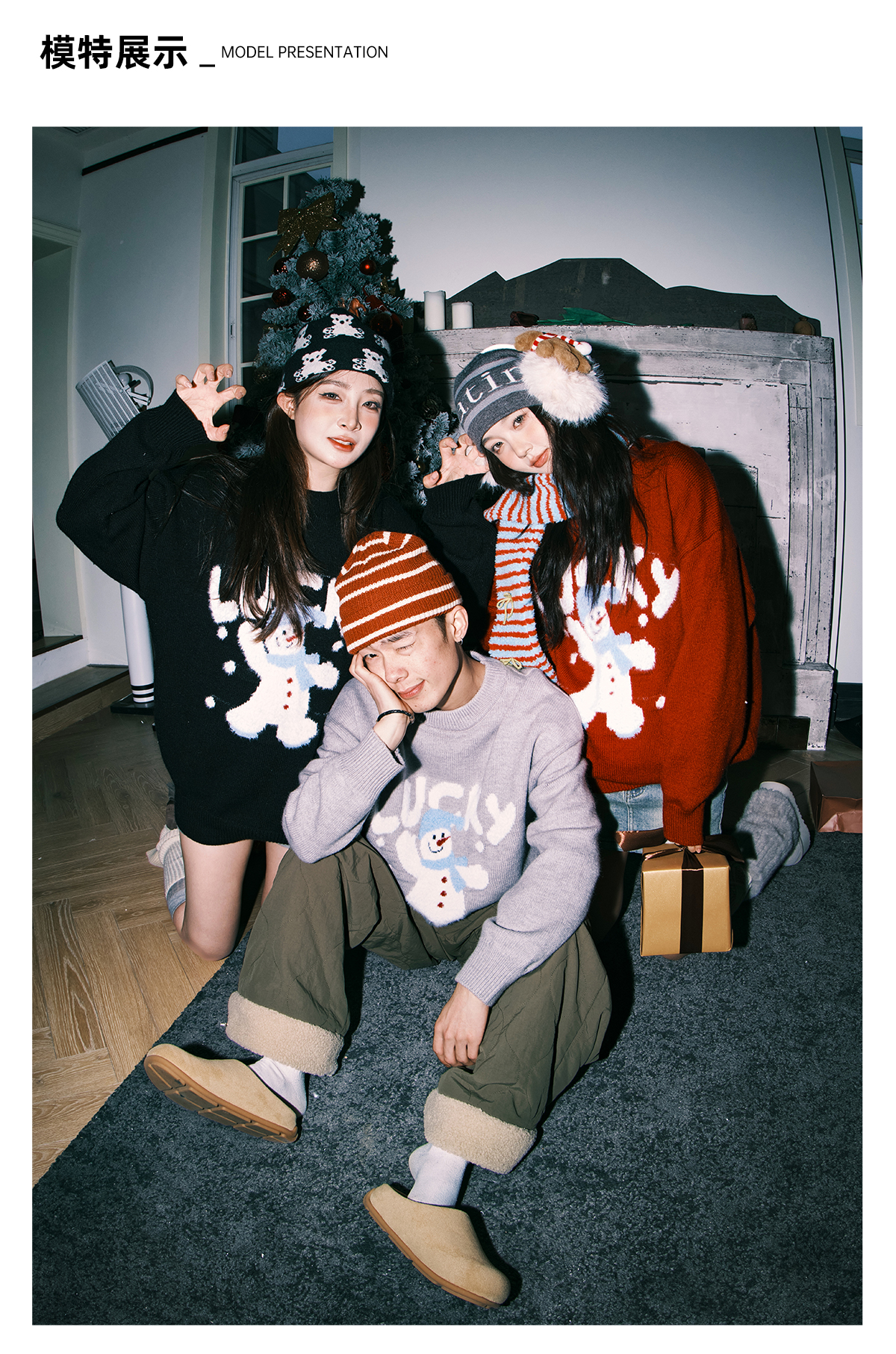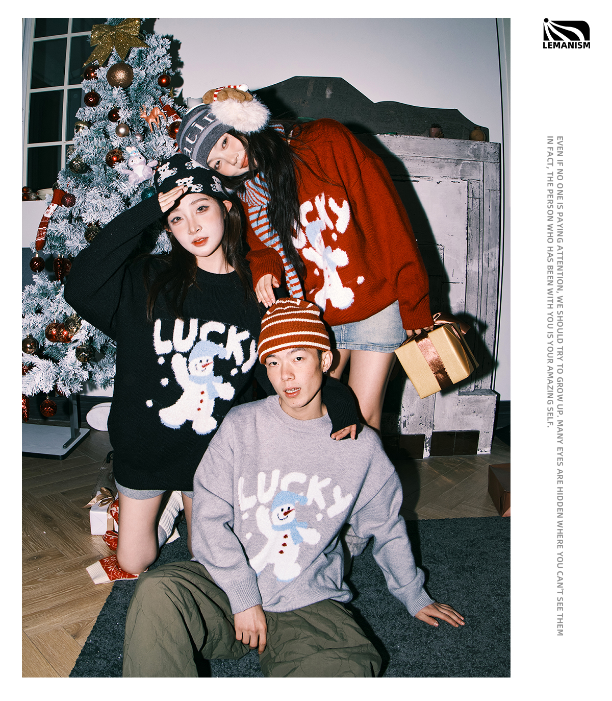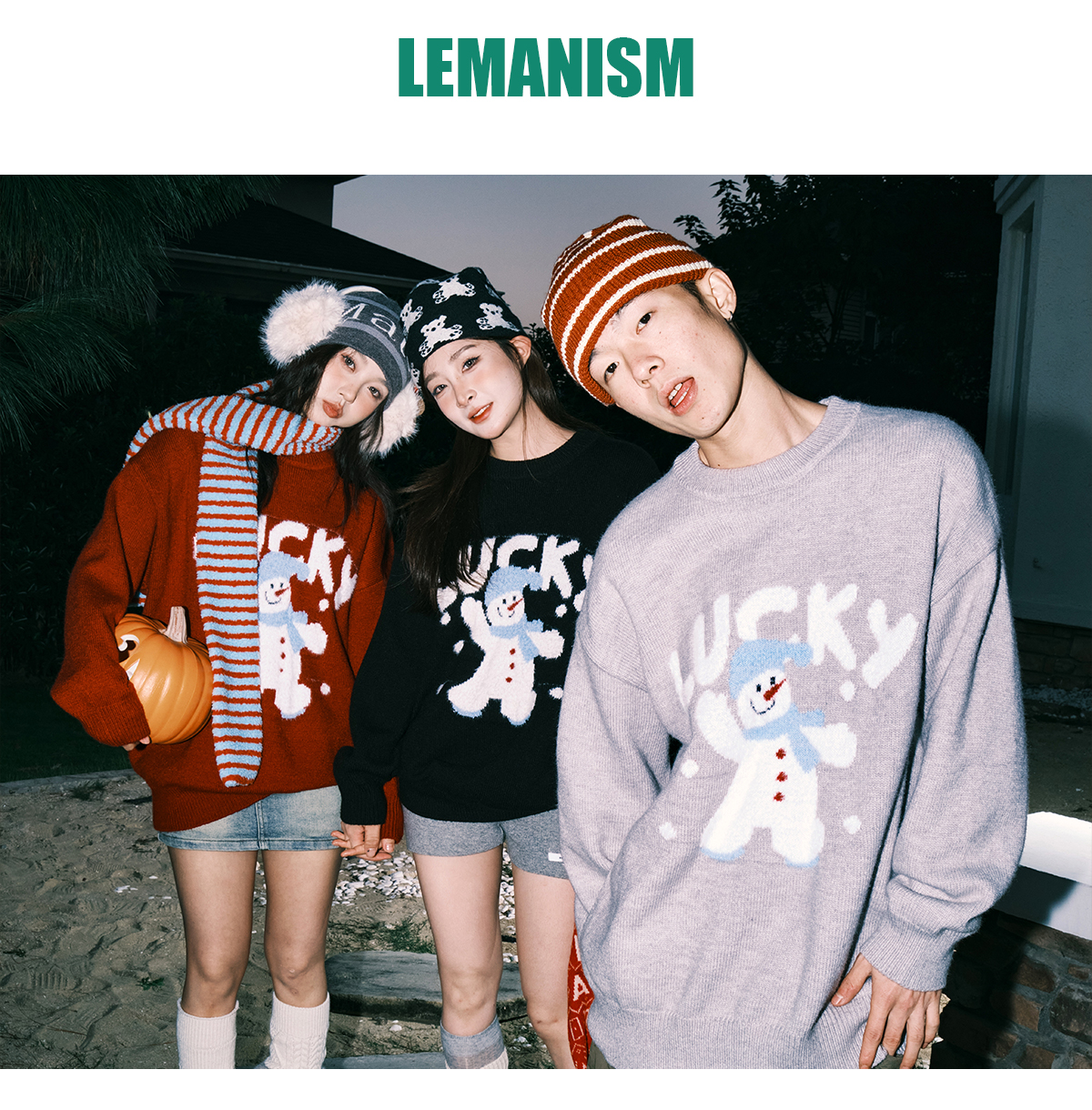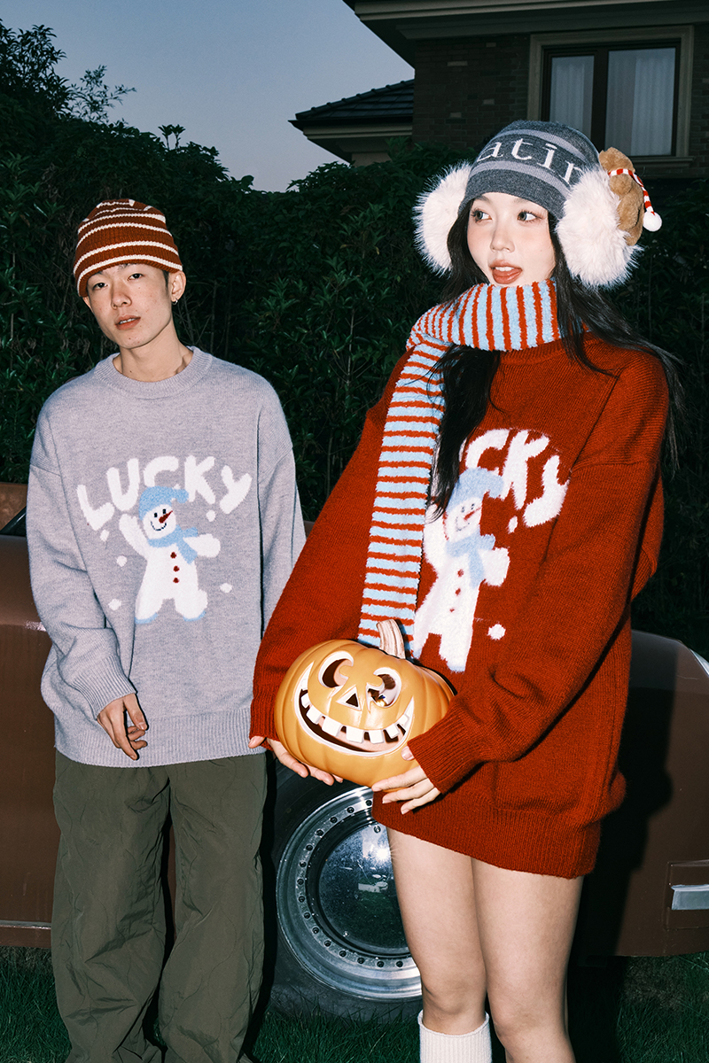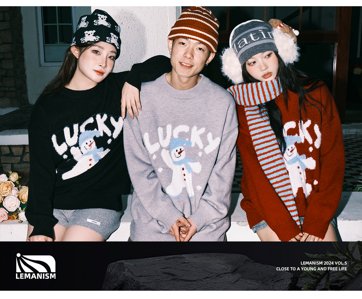 Lemanism/FHA114-5718/卡通雪人圆领毛衣
