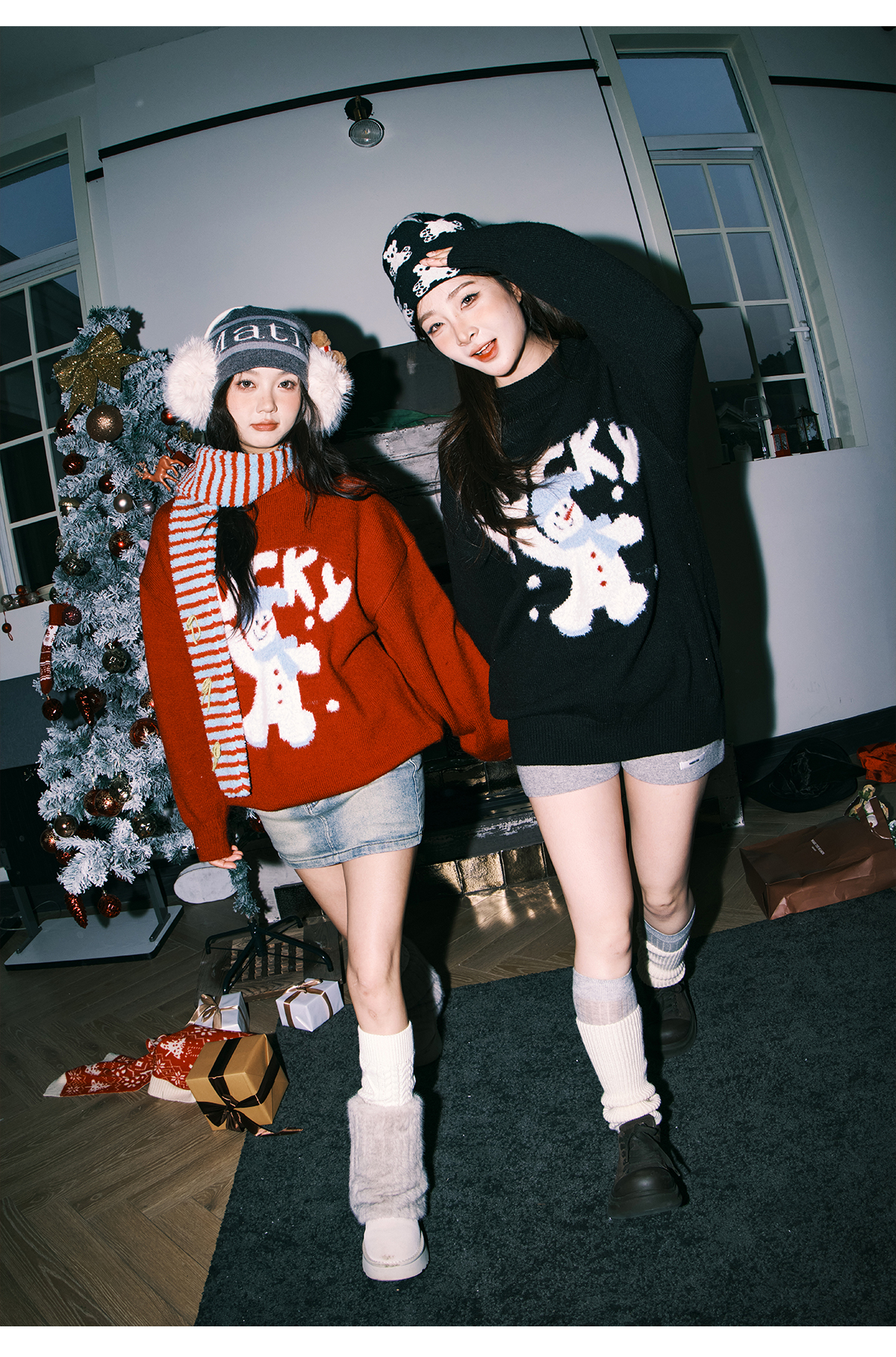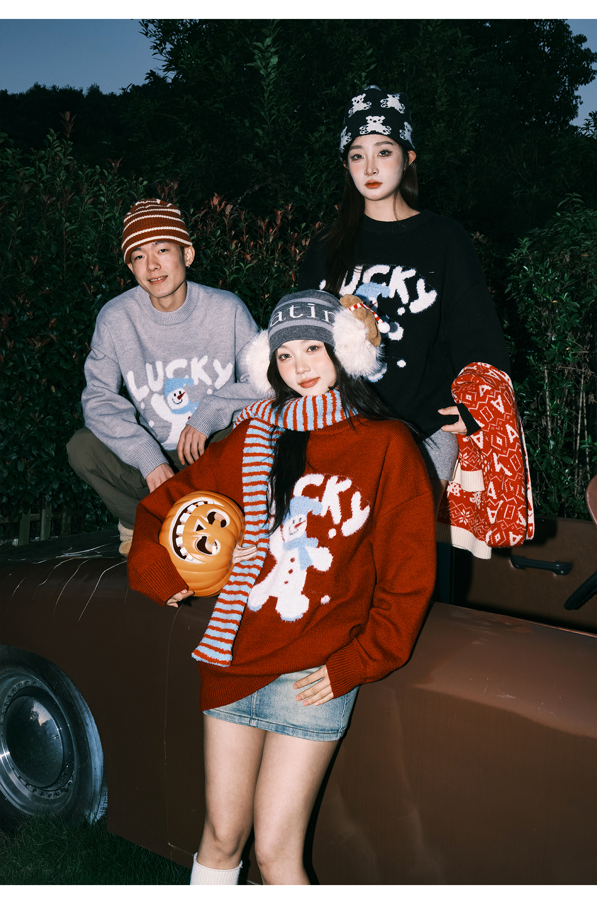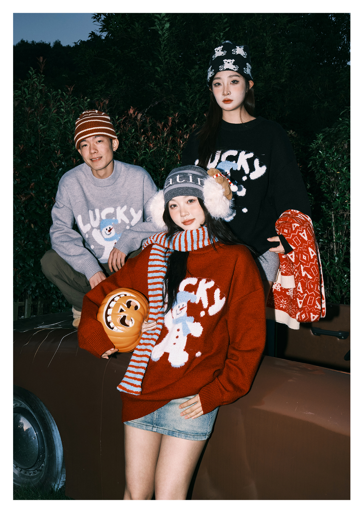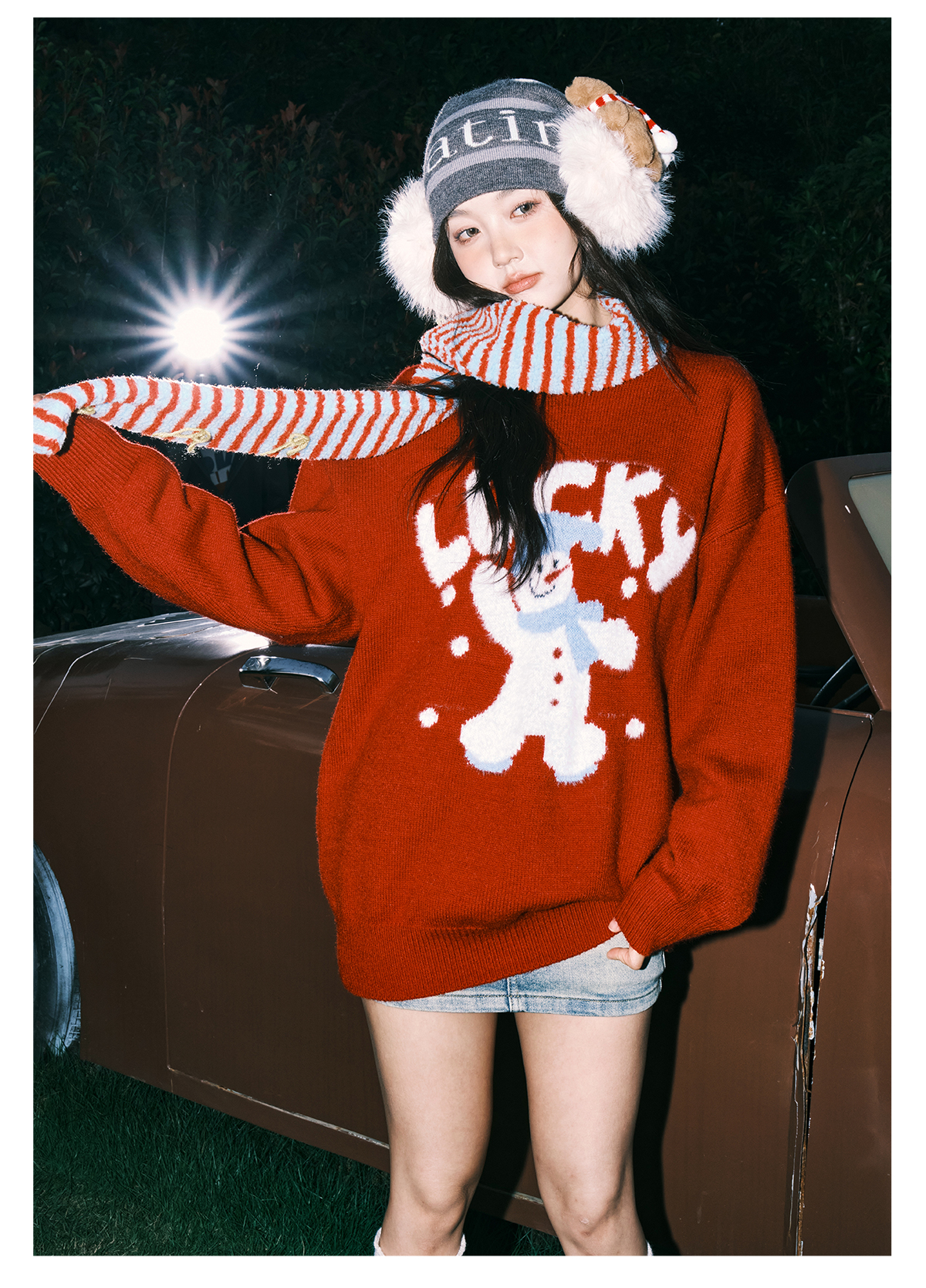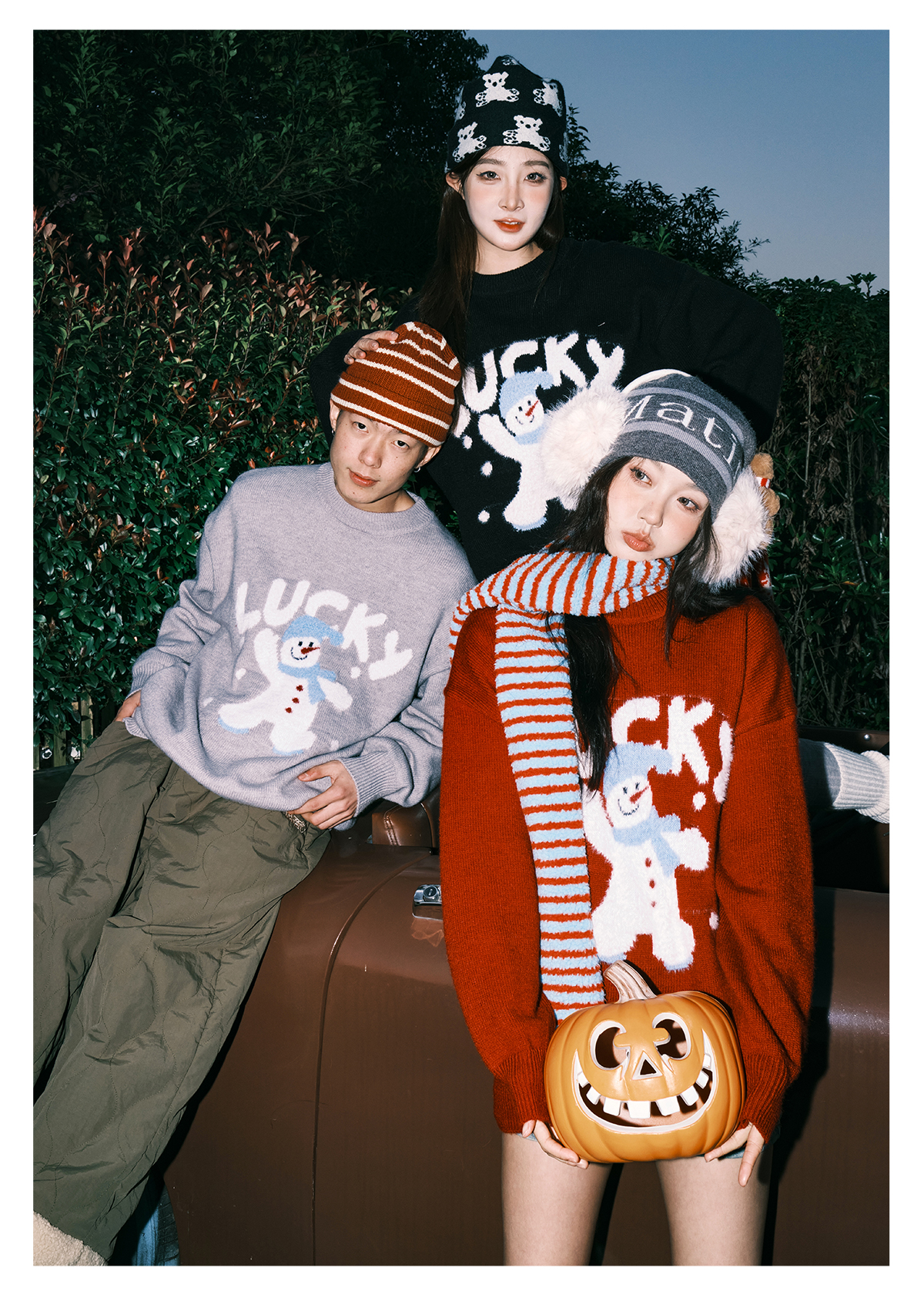 Lemanism/FHA114-5718/卡通雪人圆领毛衣