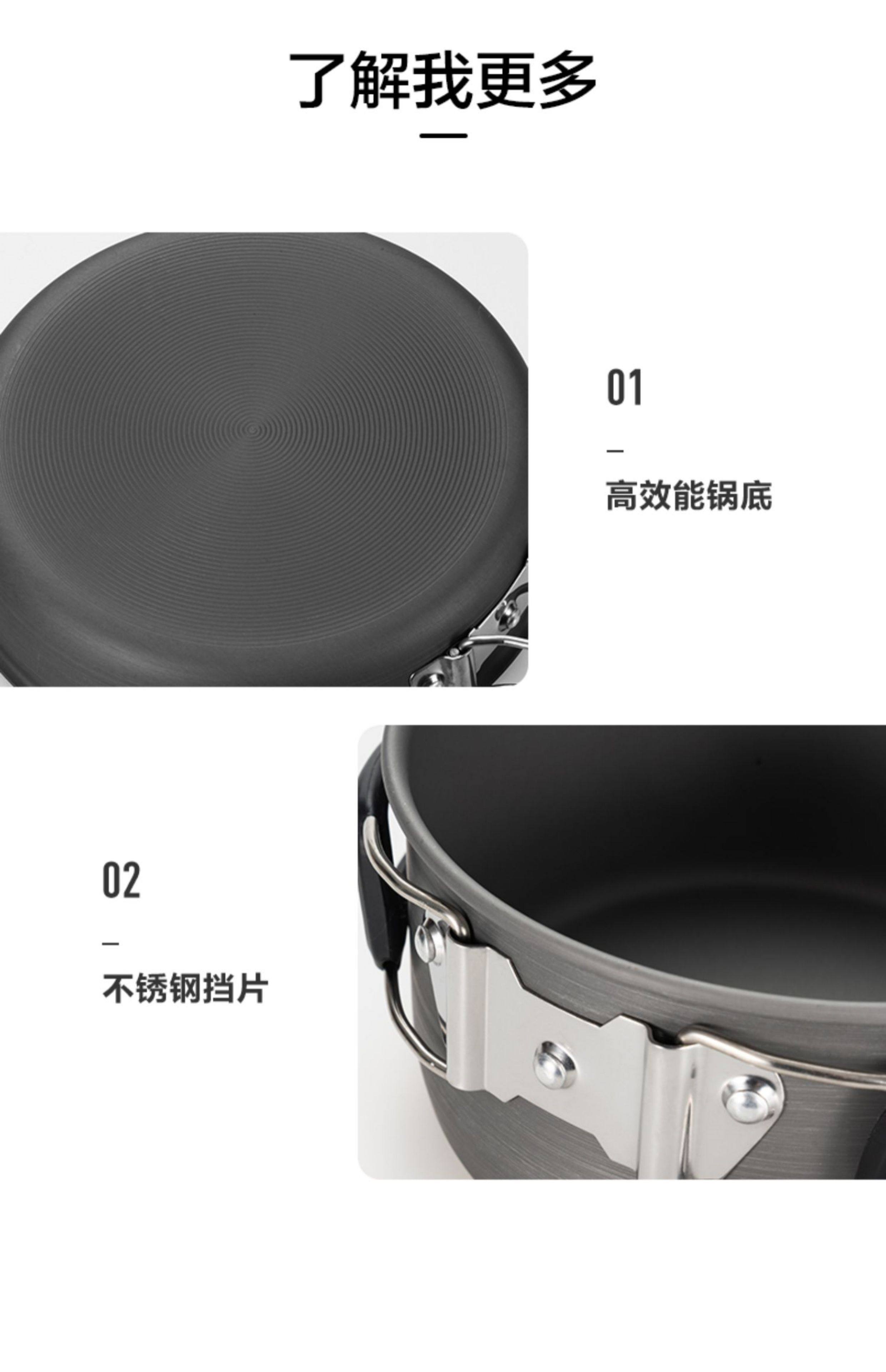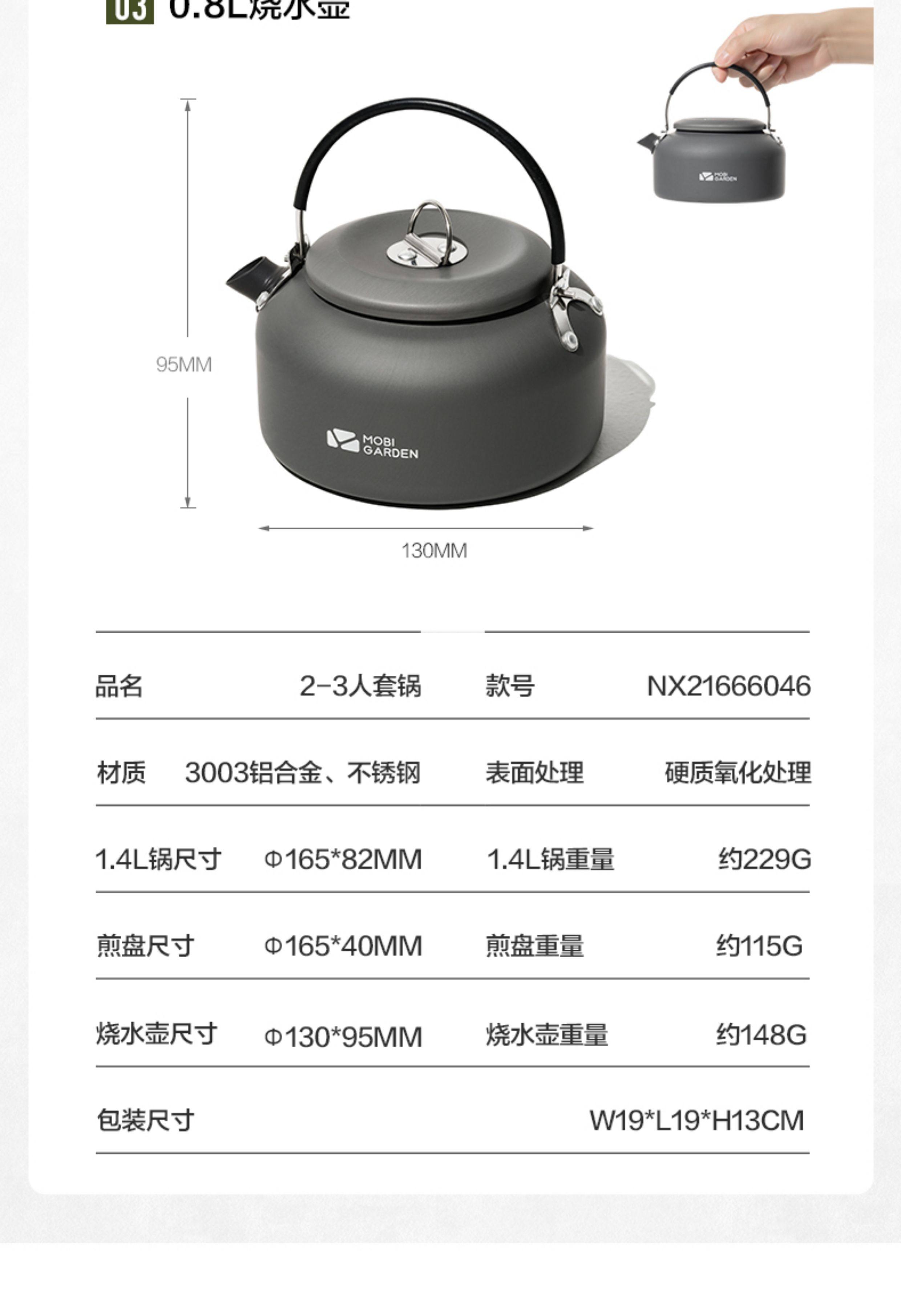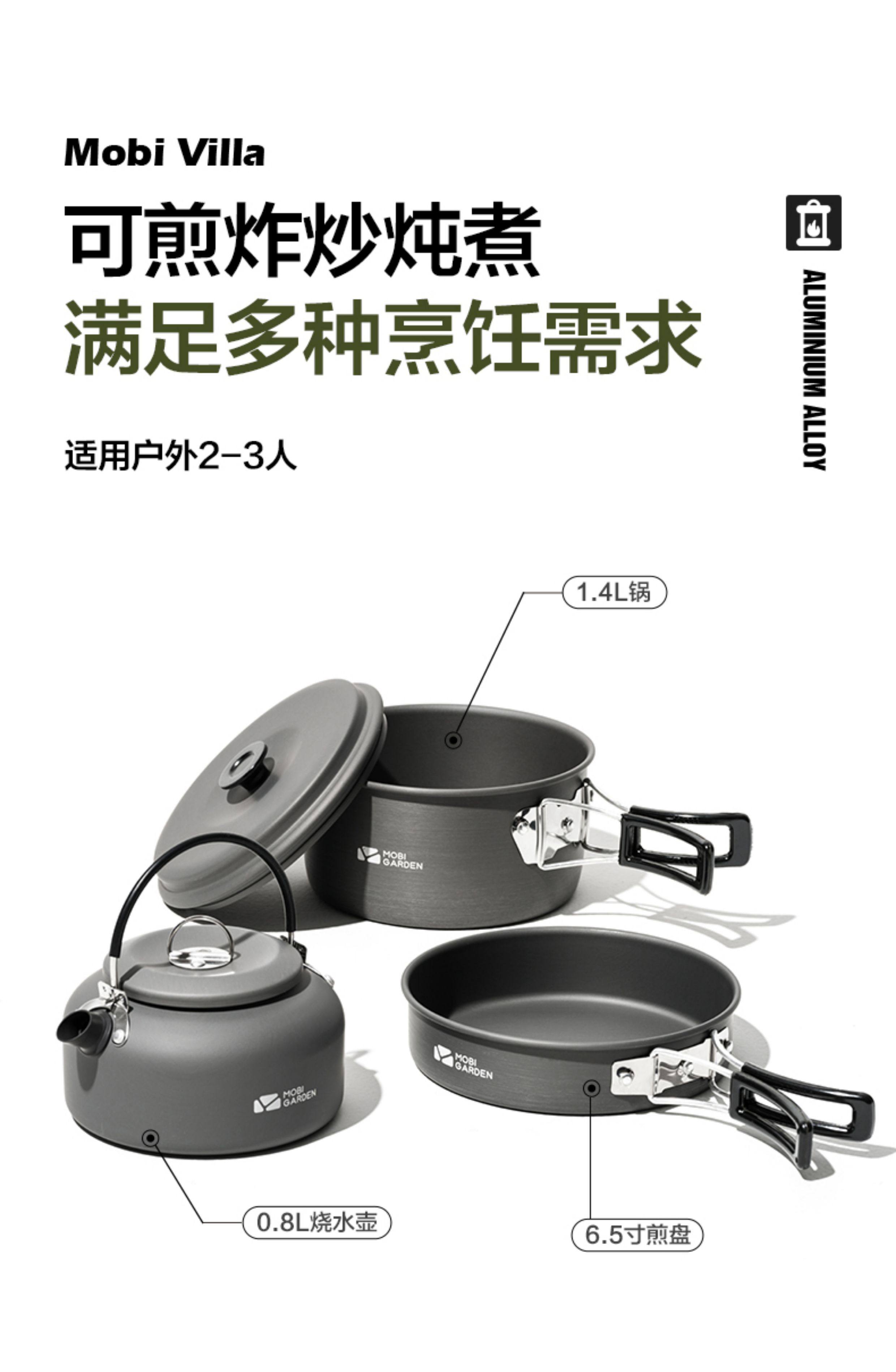 牧高笛户外炊具锅具便携式烧水壶煎盘野营野餐套装2-3人露营装备