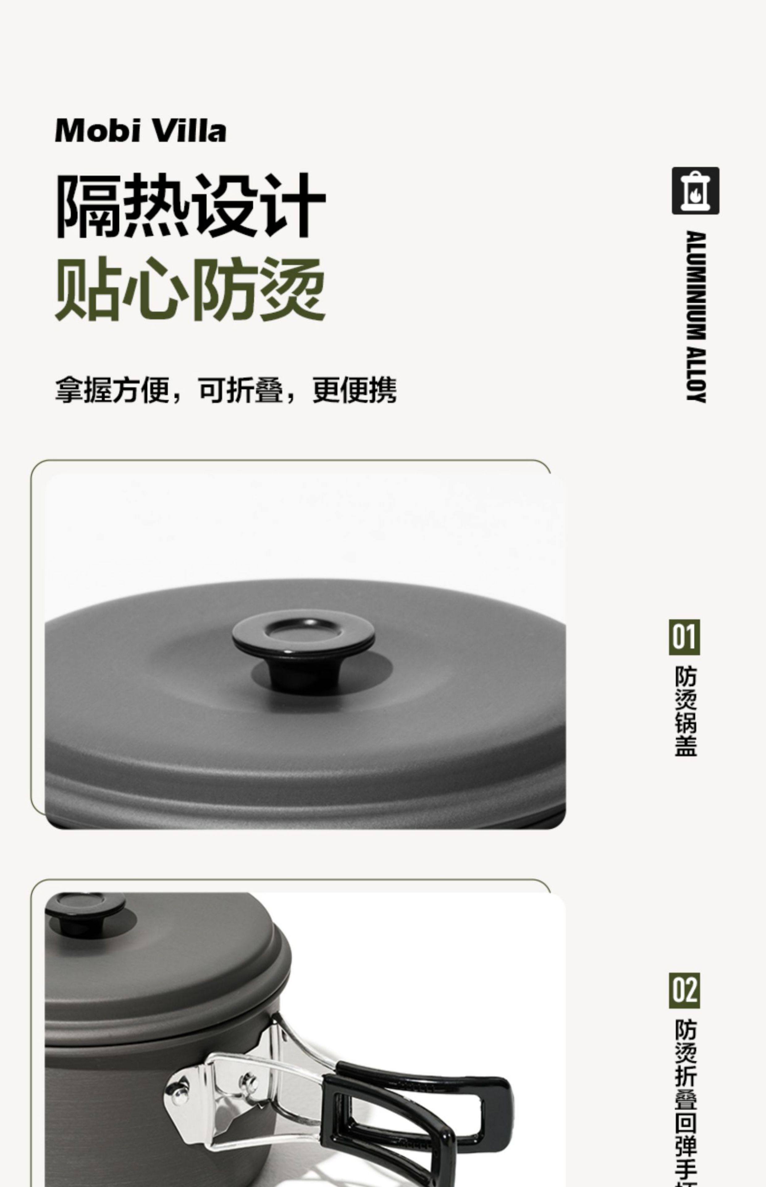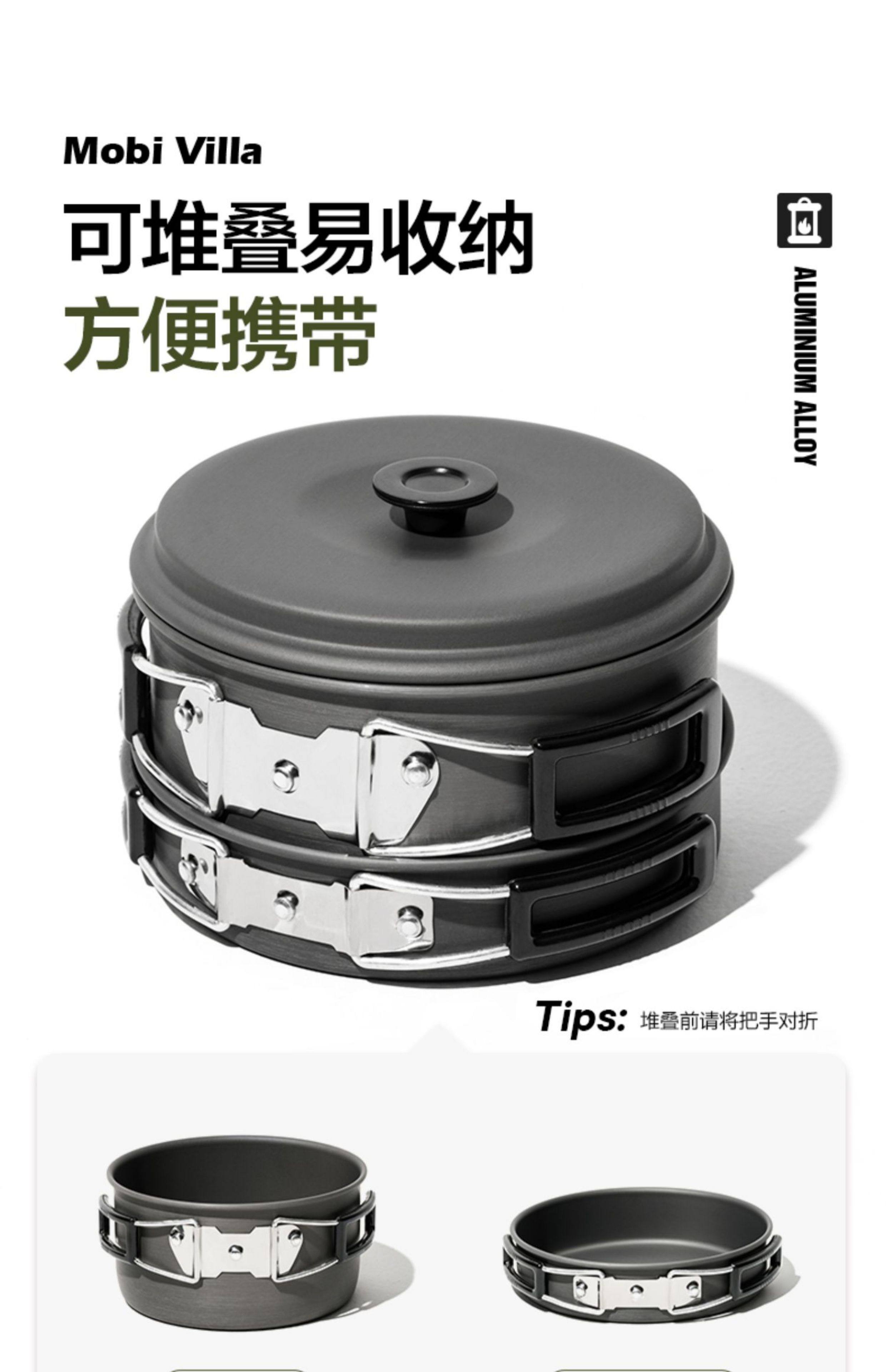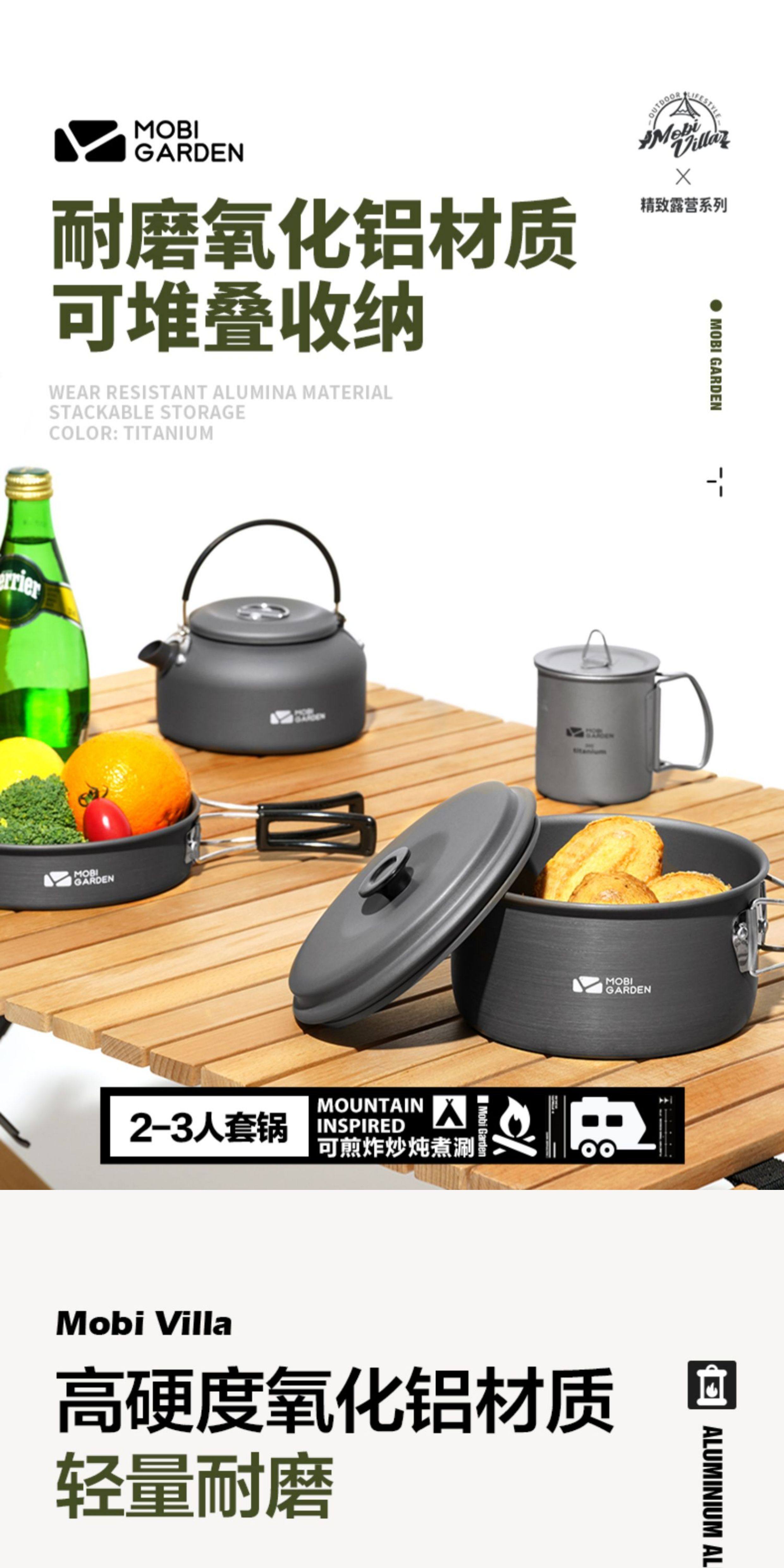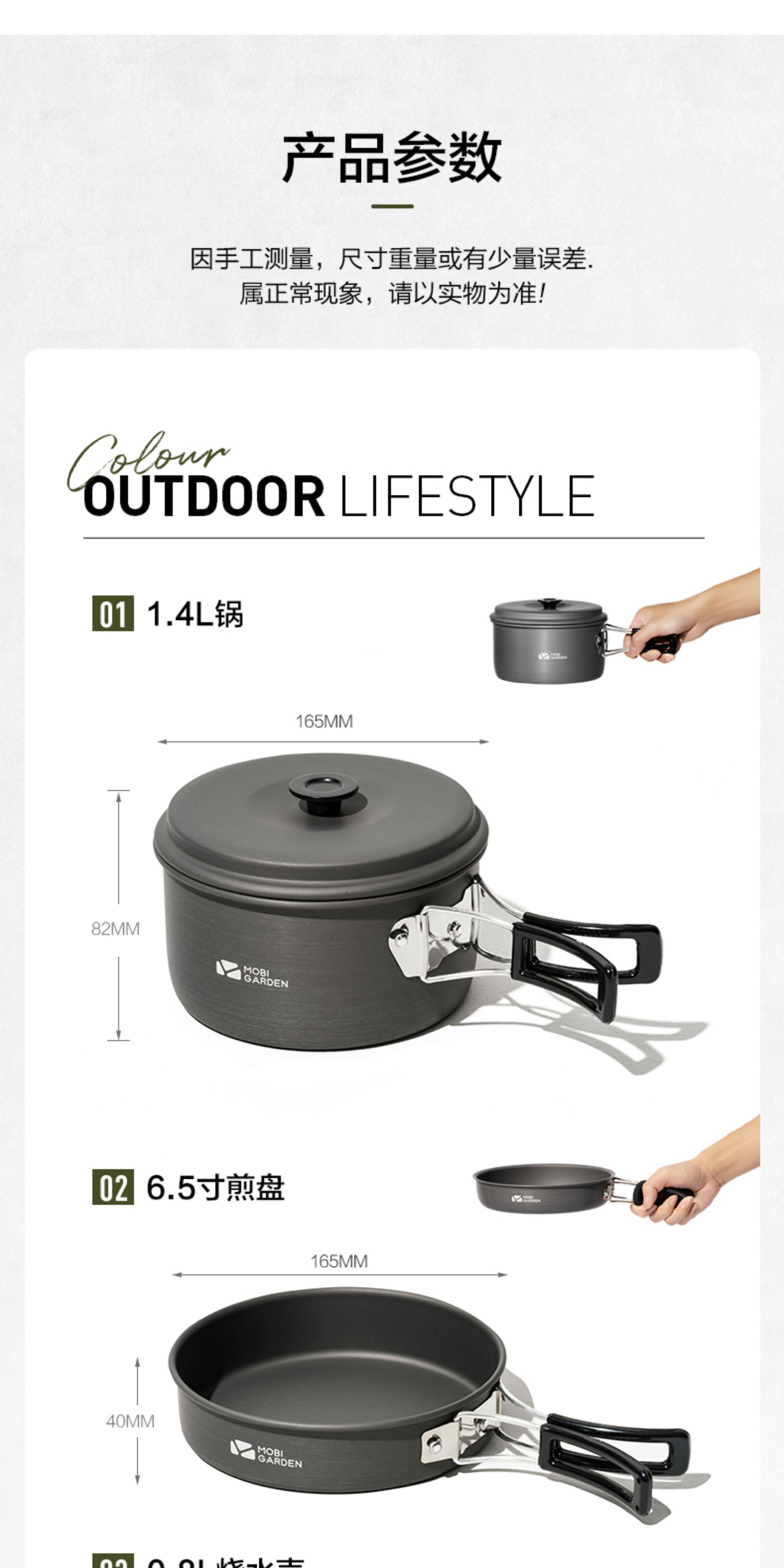牧高笛户外炊具锅具便携式烧水壶煎盘野营野餐套装2-3人露营装备