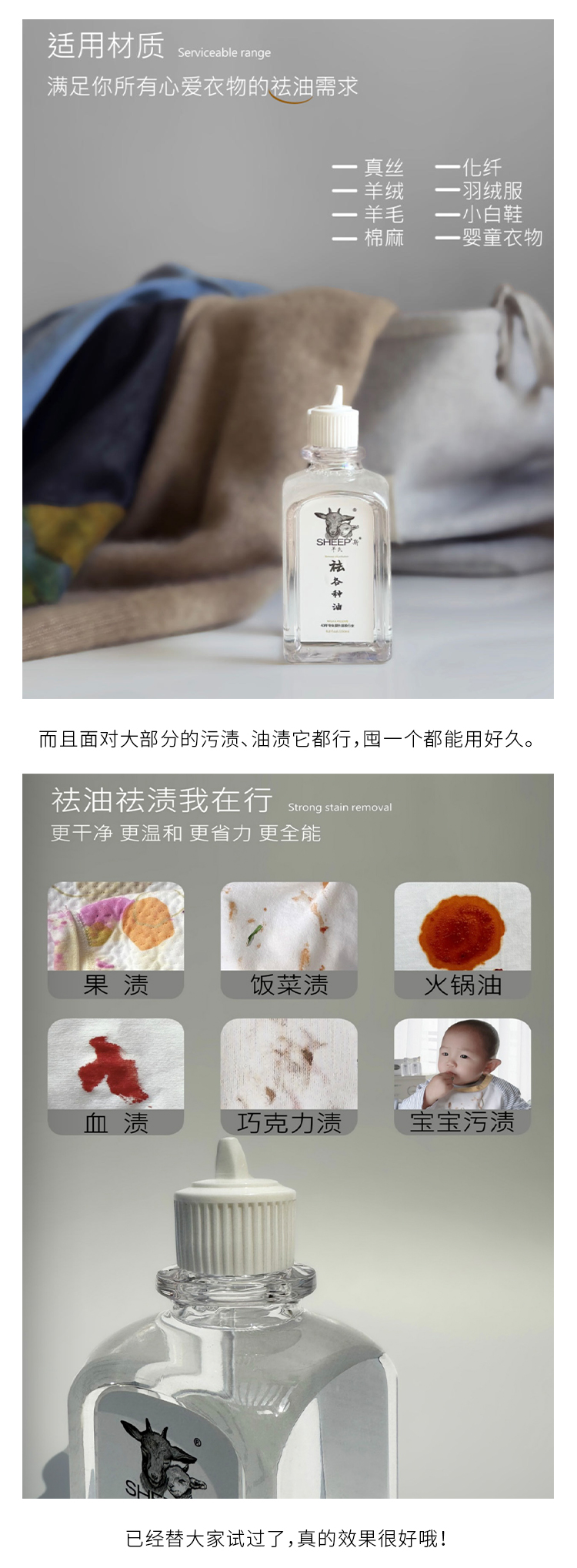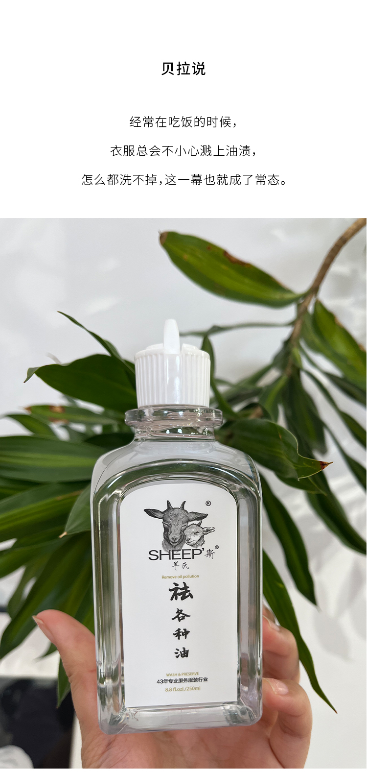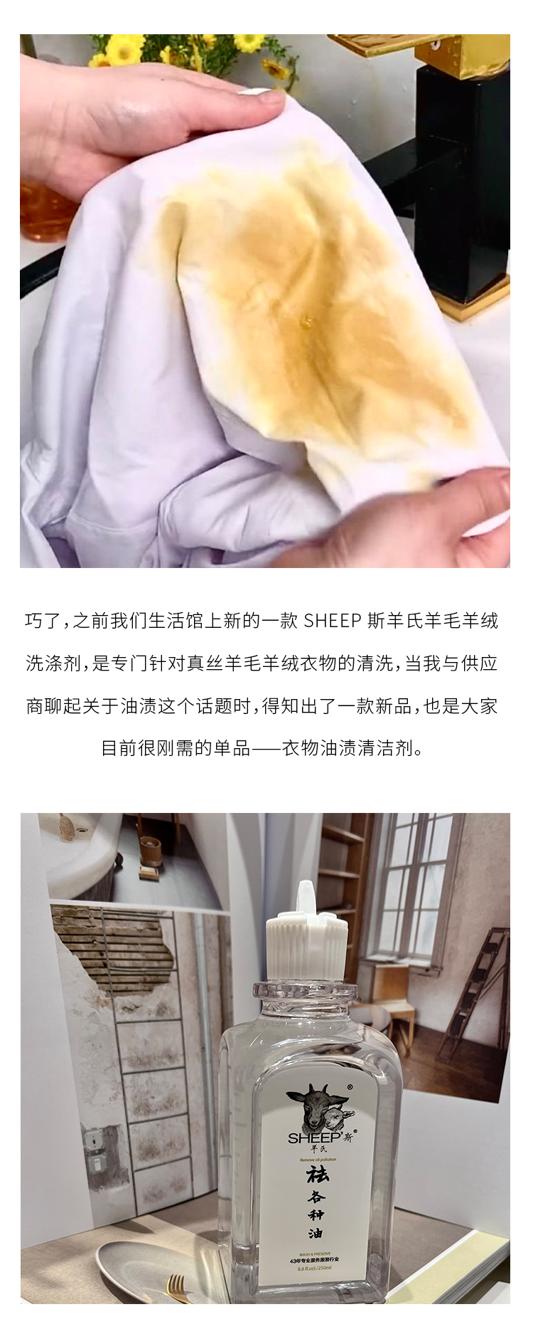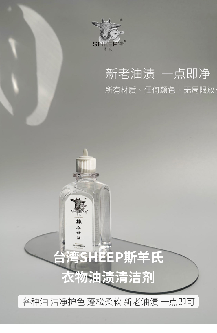 台湾SHEEP斯羊氏 衣物油渍清洁剂 祛各种油 洁净护色 蓬松柔软 新老油渍 一点即可