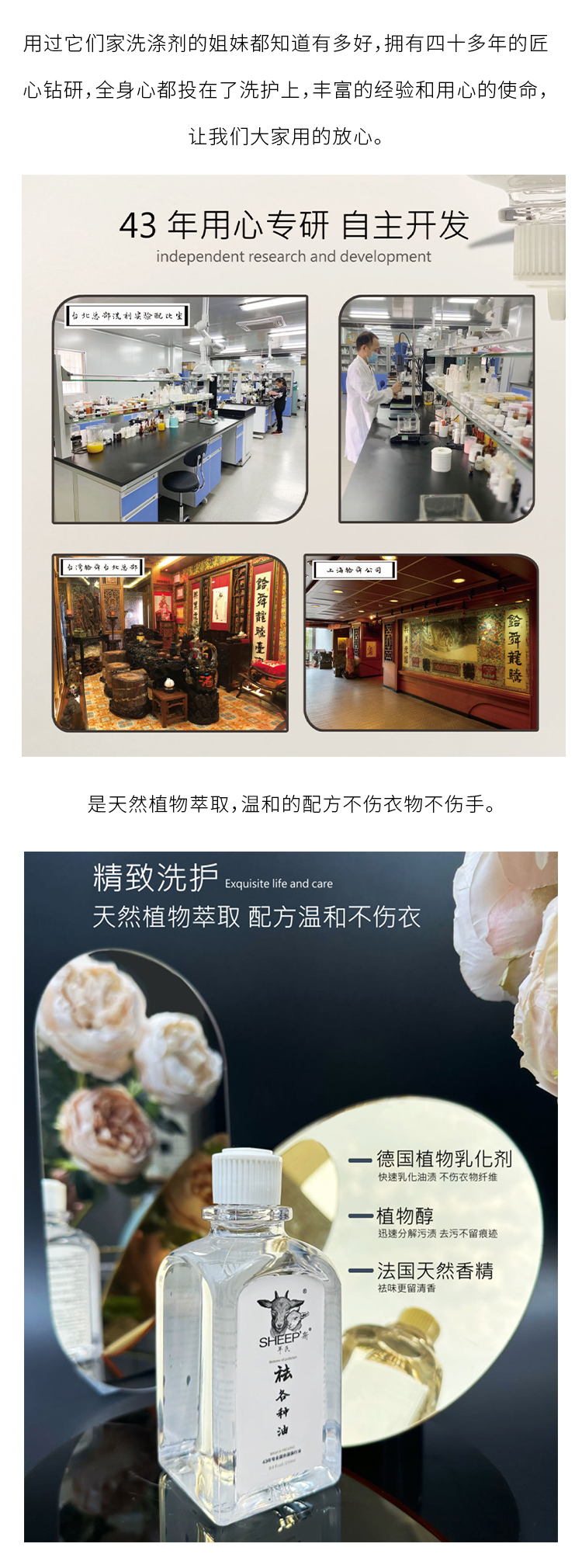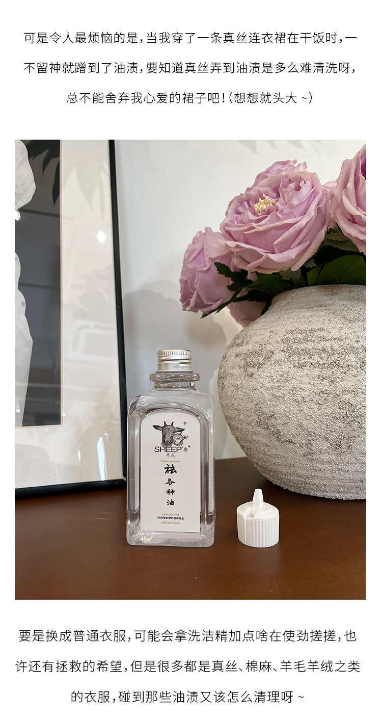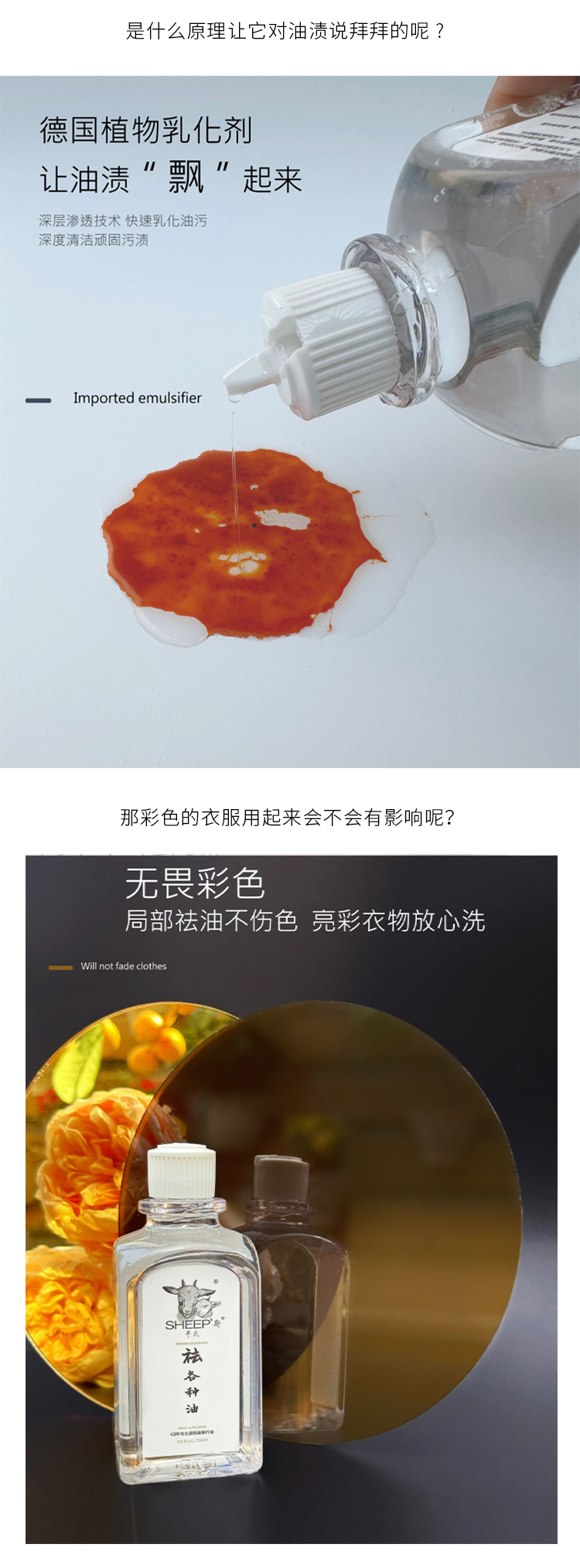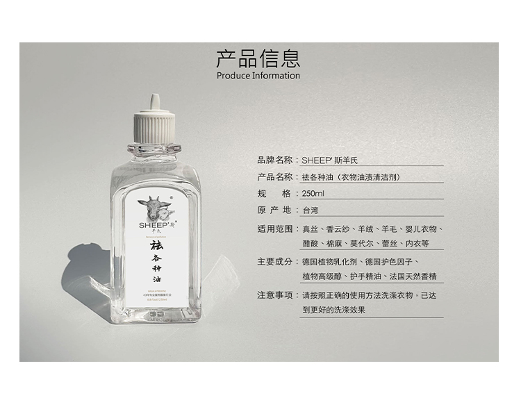 台湾SHEEP斯羊氏 衣物油渍清洁剂 祛各种油 洁净护色 蓬松柔软 新老油渍 一点即可
