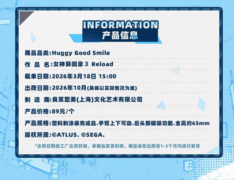 【GSC预售定金】Huggy Good Smile P3R主人公/岳羽由加莉/伊织顺平 女神异闻录3 Reload