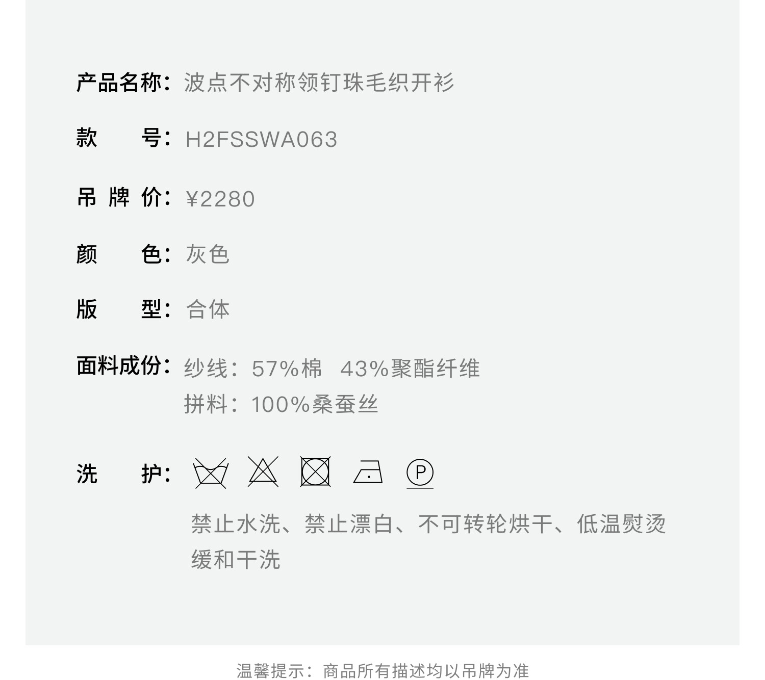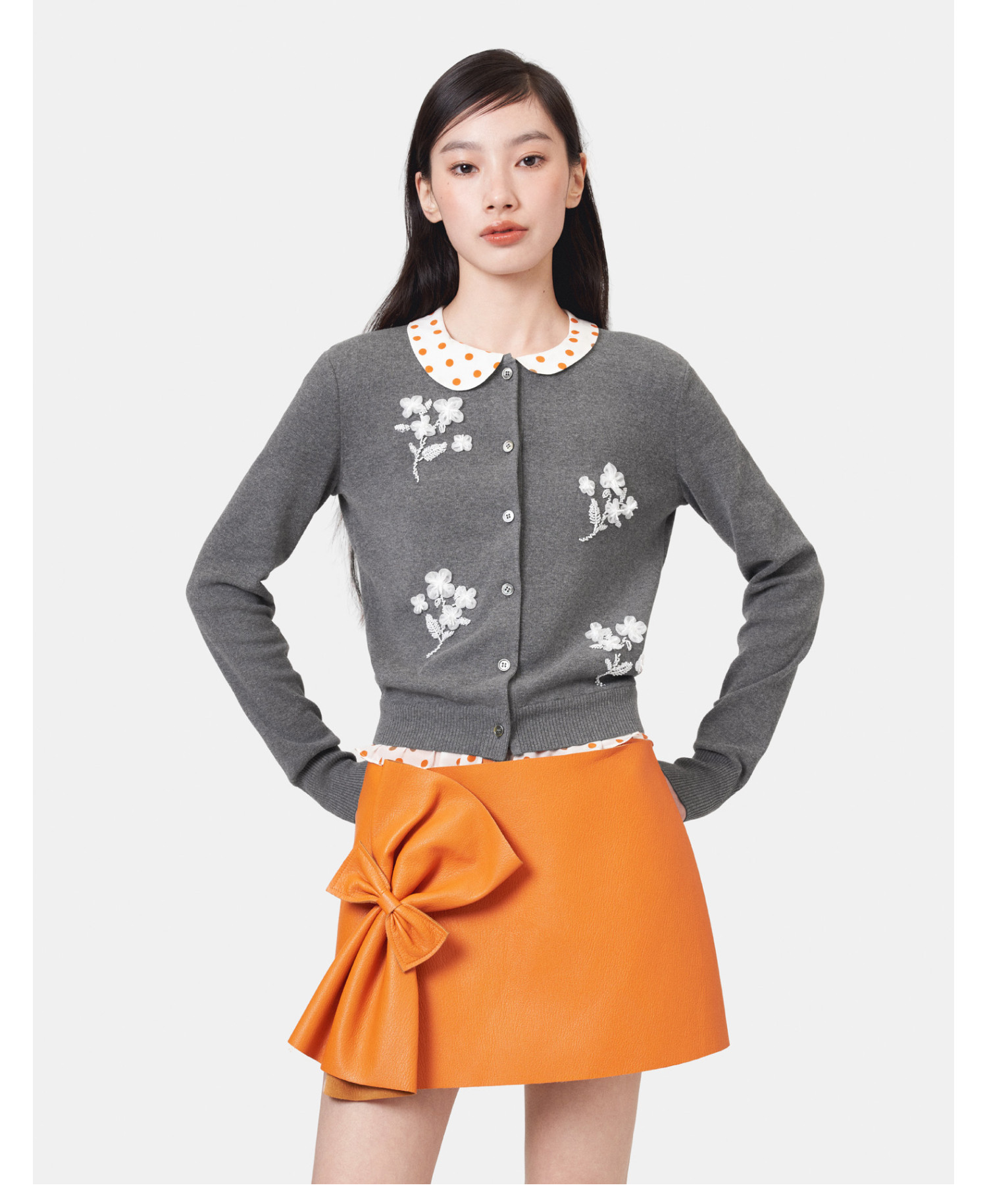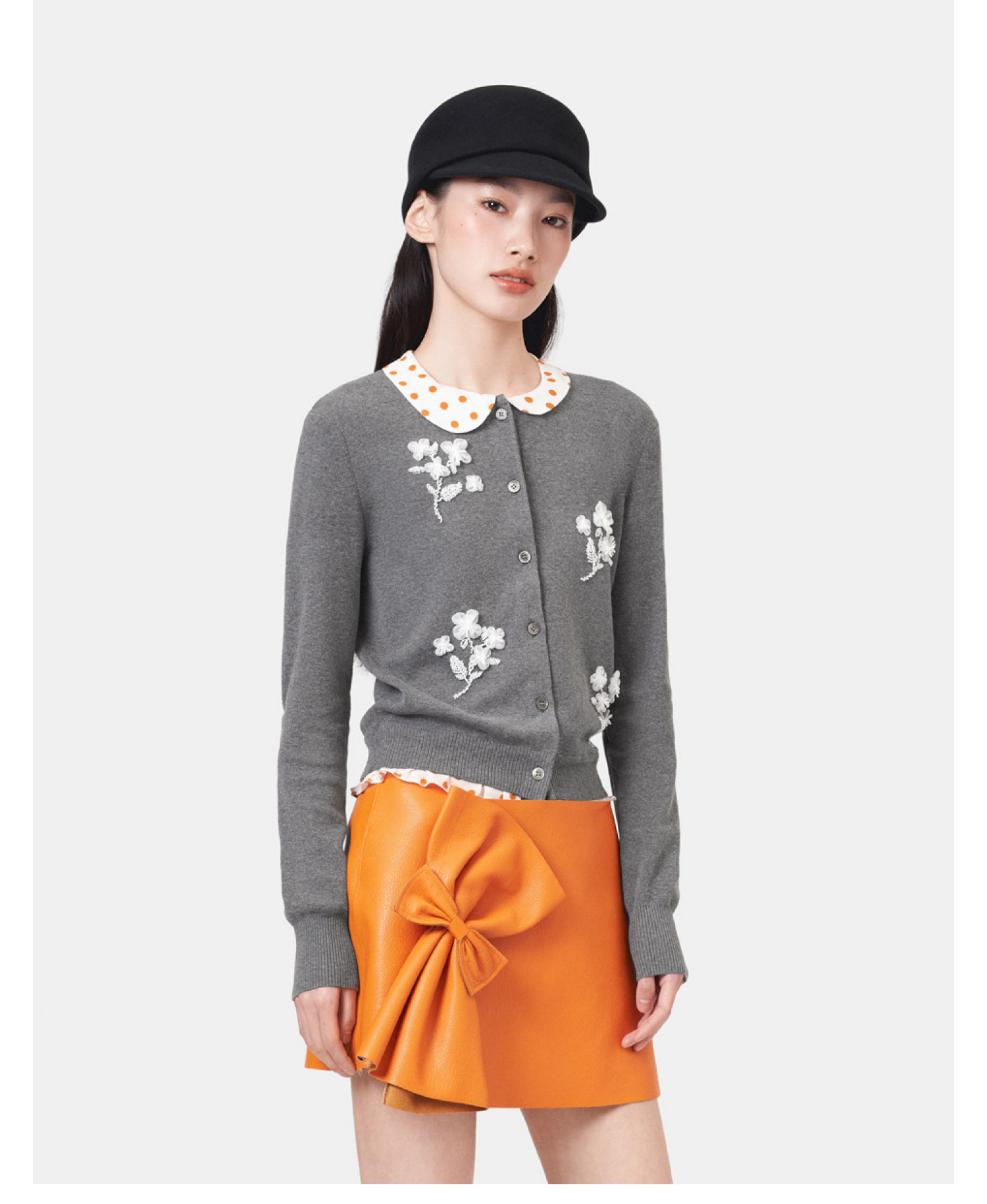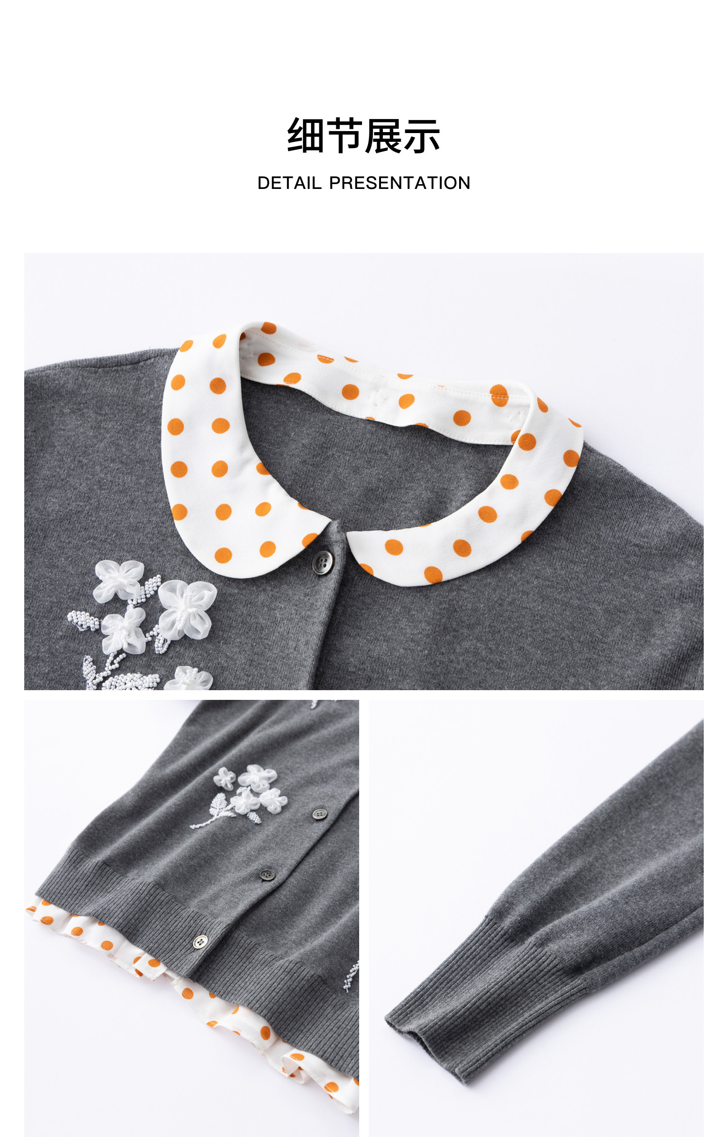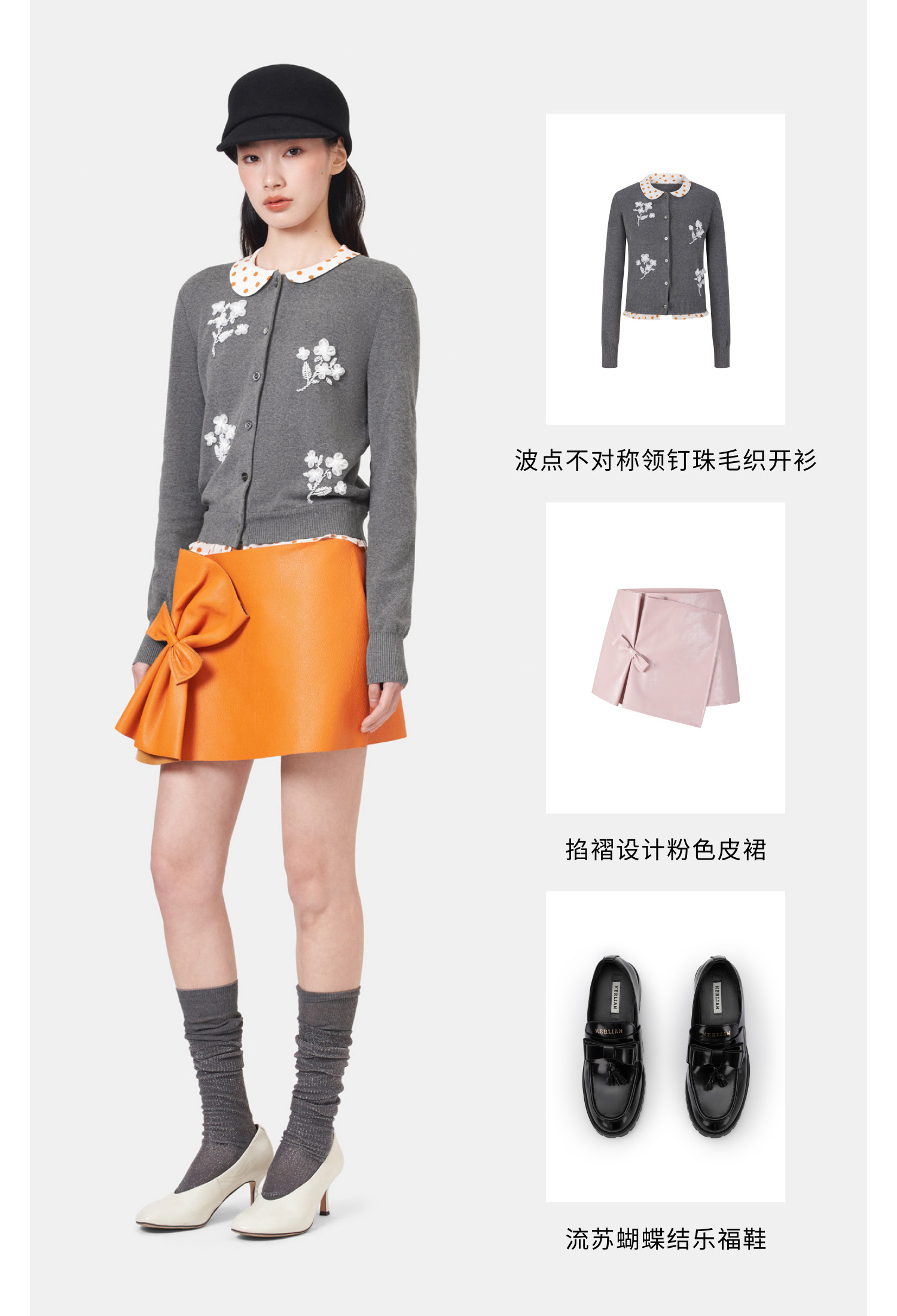 HERLIAN 2026年春季新品波点不对称领钉珠拼接女士针织衫开衫