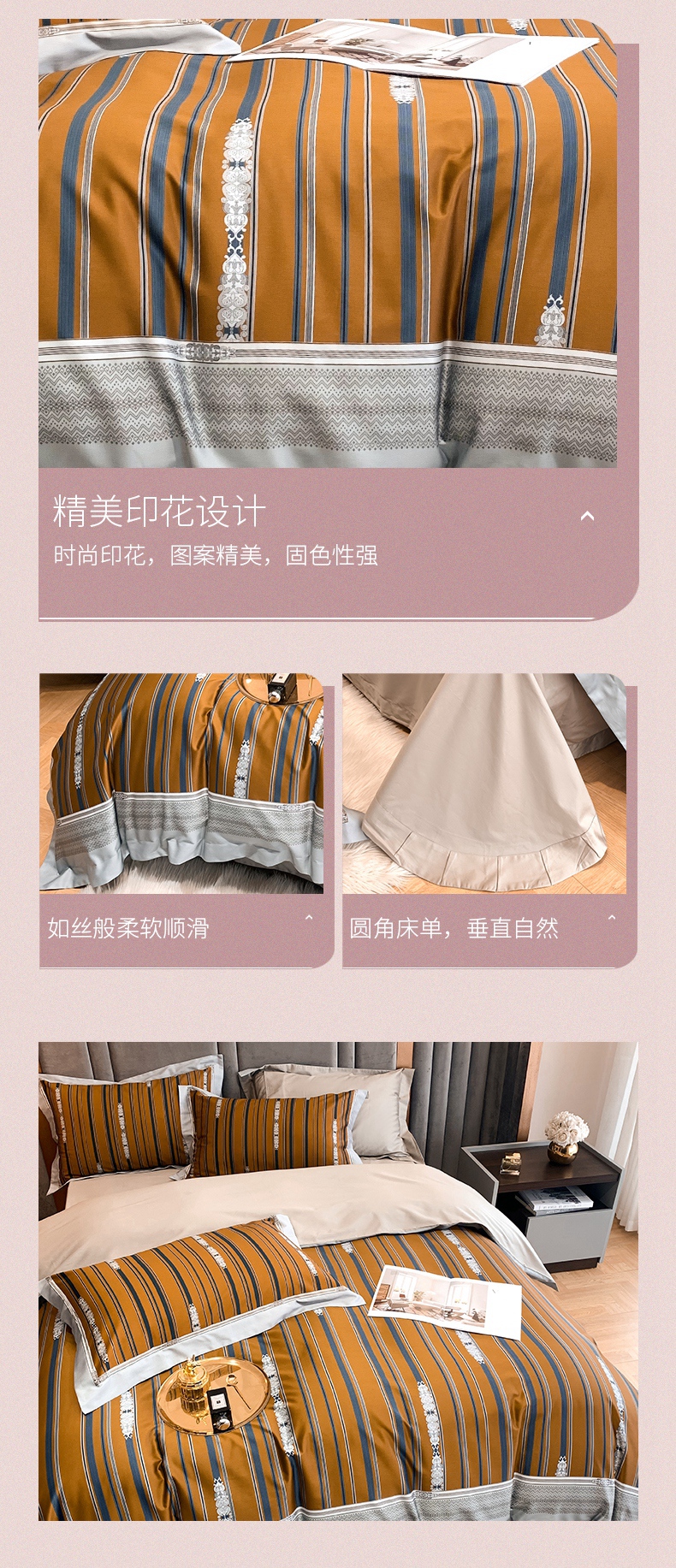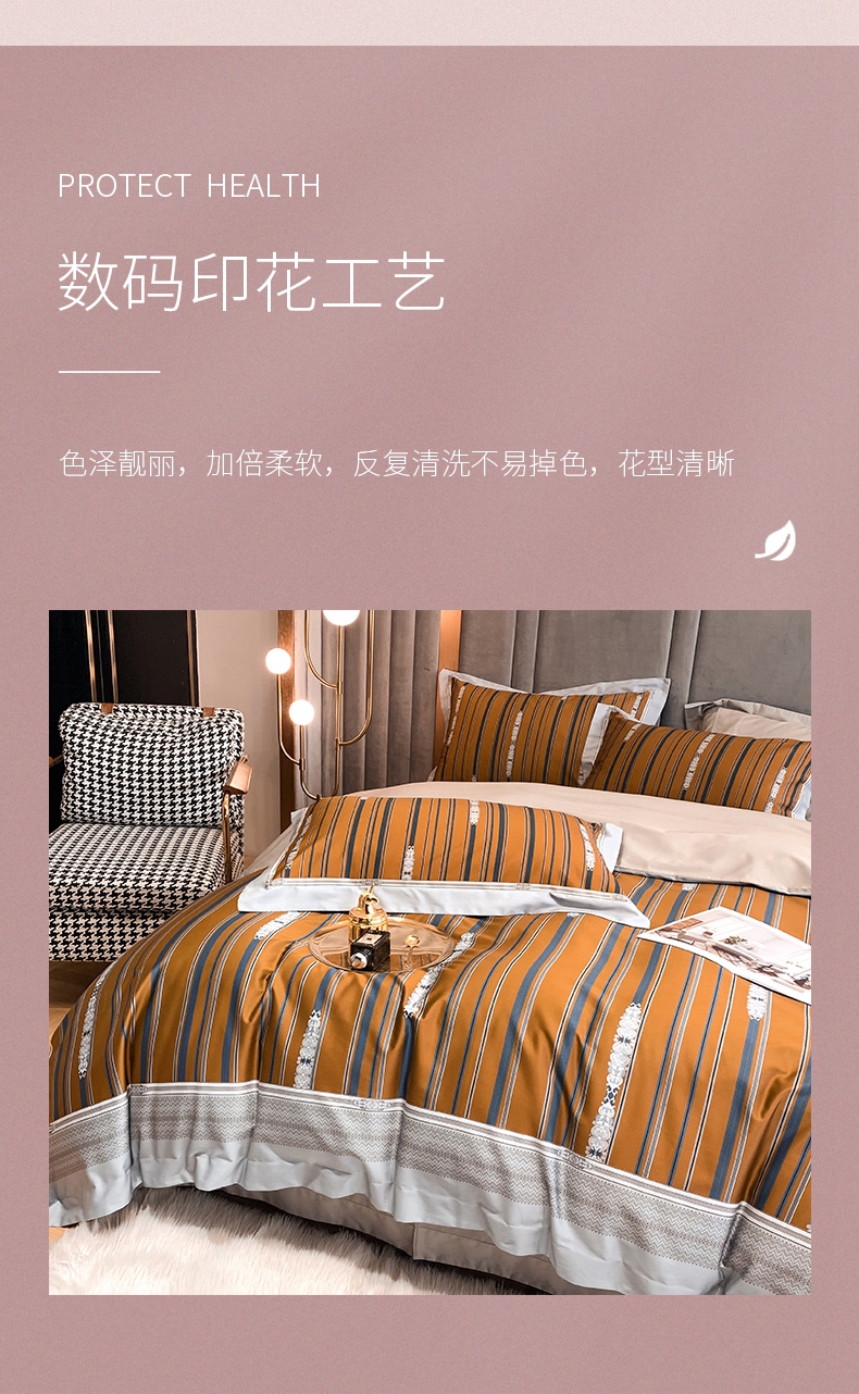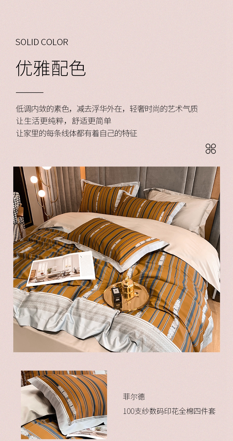 100支纱数码印花全棉四件套 被套床单4件套 1.8\1.5米床-菲尔德