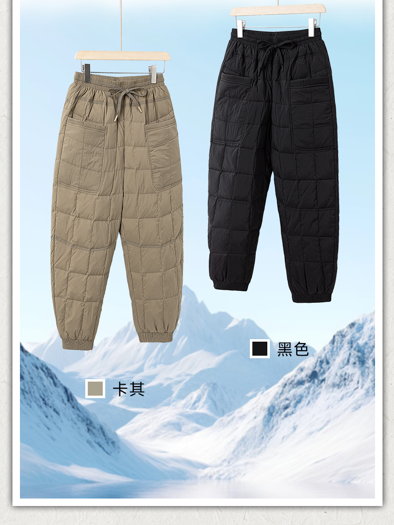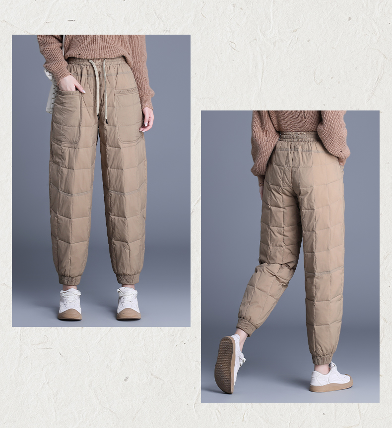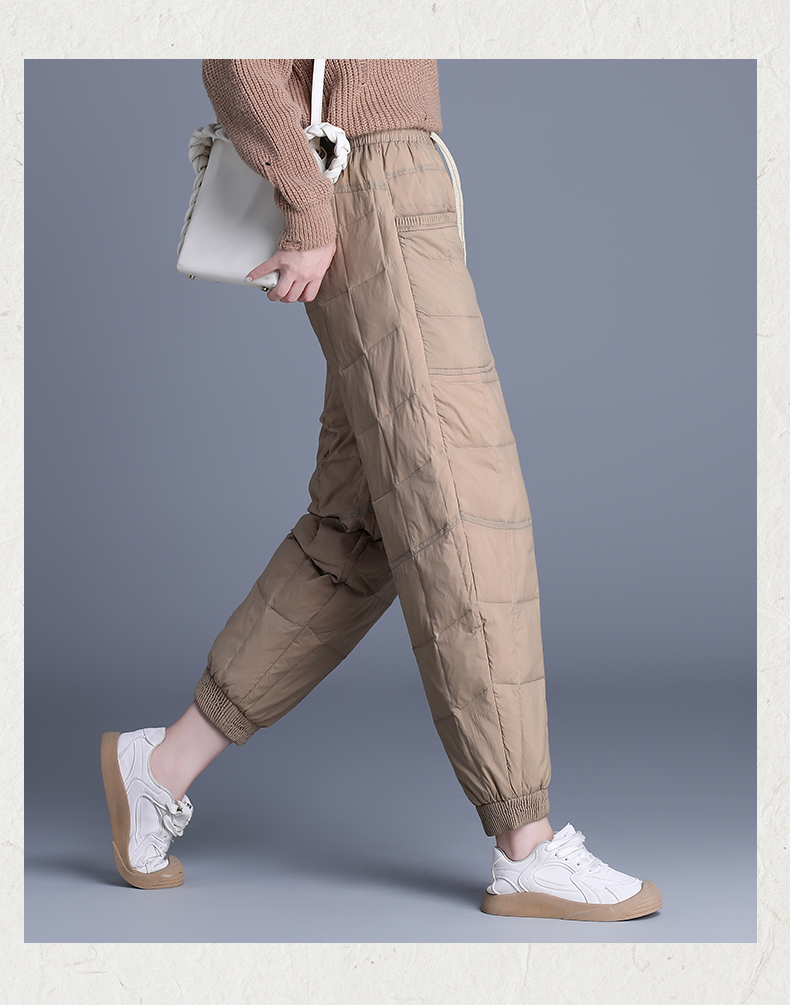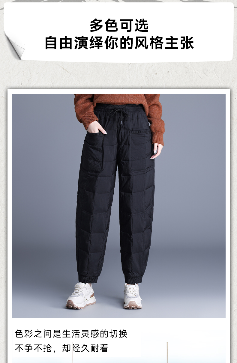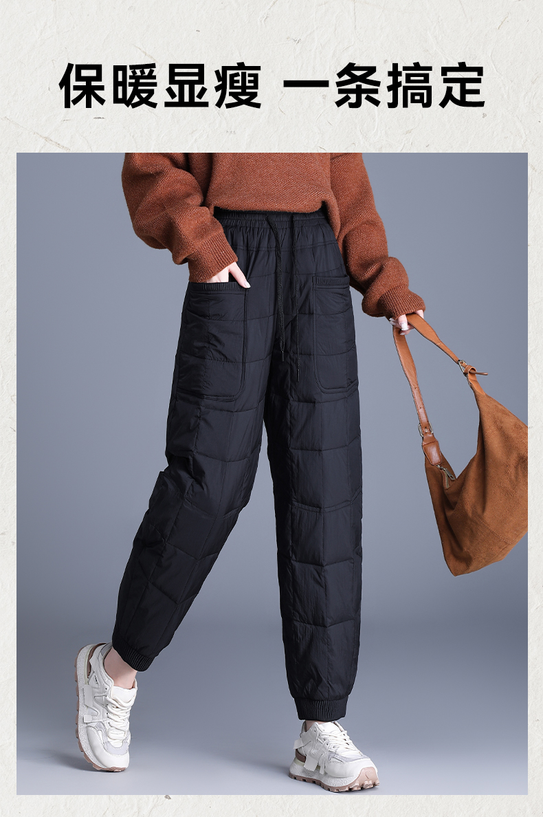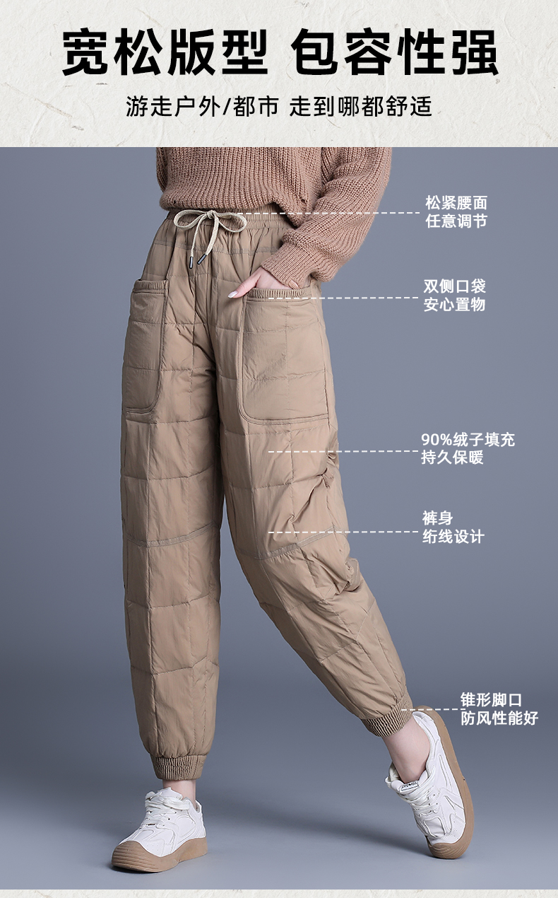 90%鸭绒填充 加厚保暖冬季女士羽绒裤宽松束脚个性口袋防风休闲百搭 罗蒙