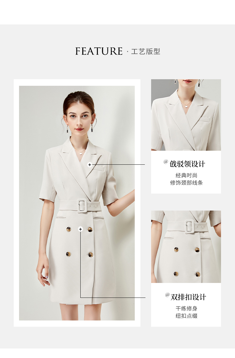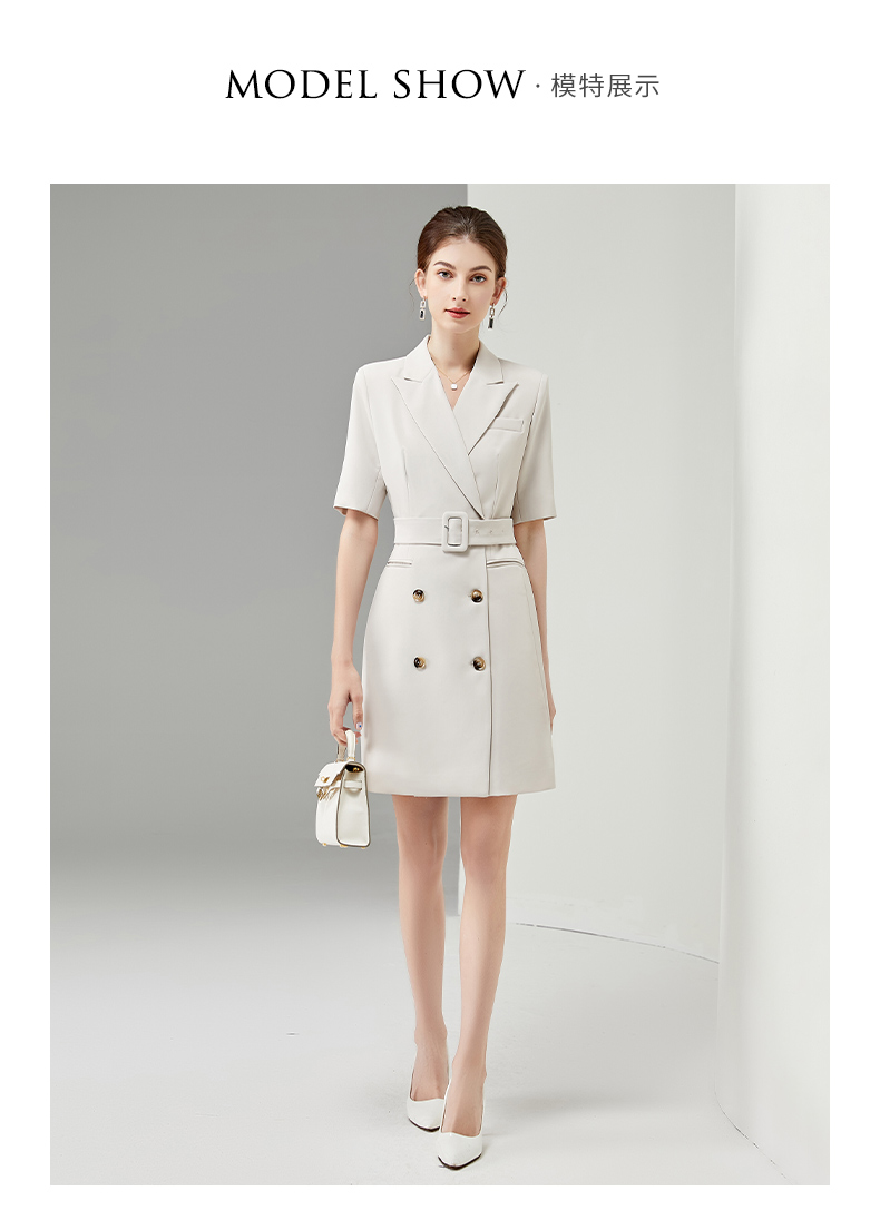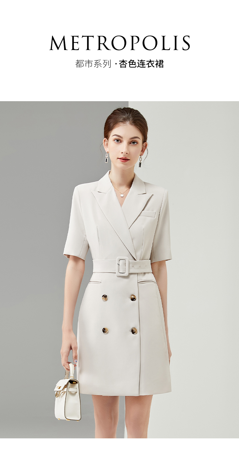 IWY/气质短袖西装连衣裙子女杏色双排扣高端商务职业装摄影婚纱工作服013248