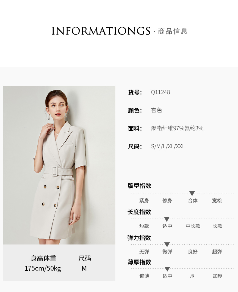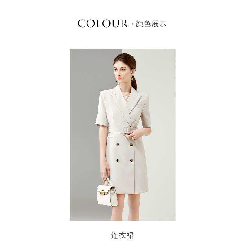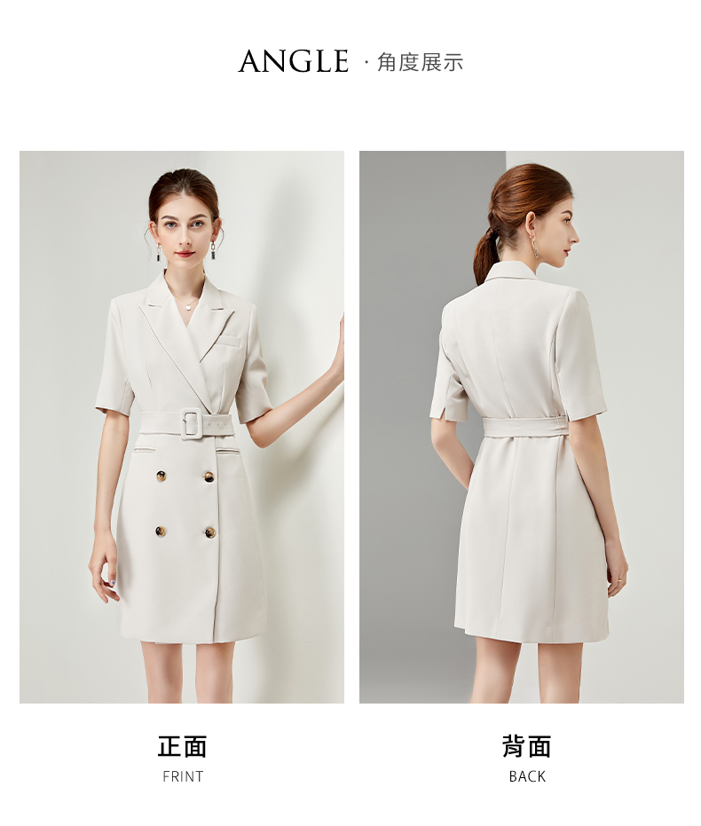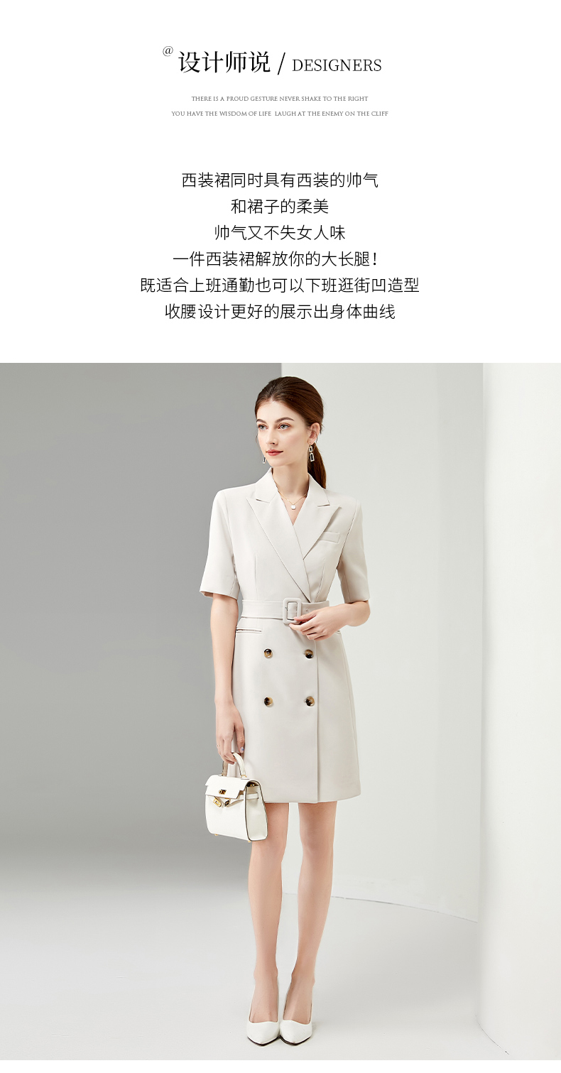 IWY/气质短袖西装连衣裙子女杏色双排扣高端商务职业装摄影婚纱工作服013248