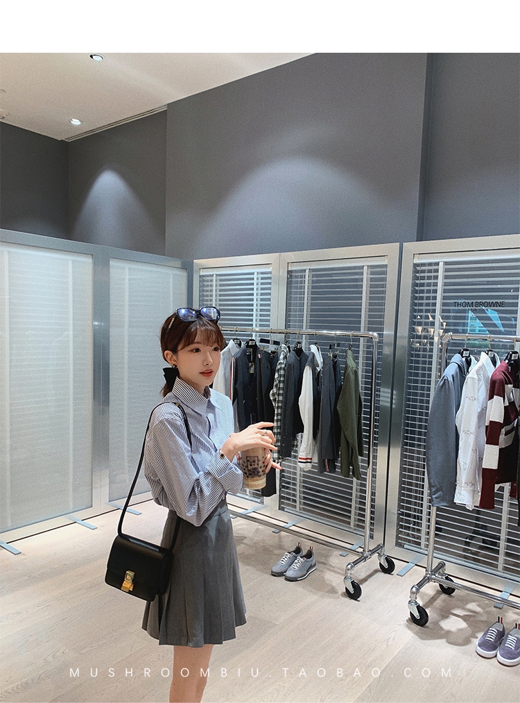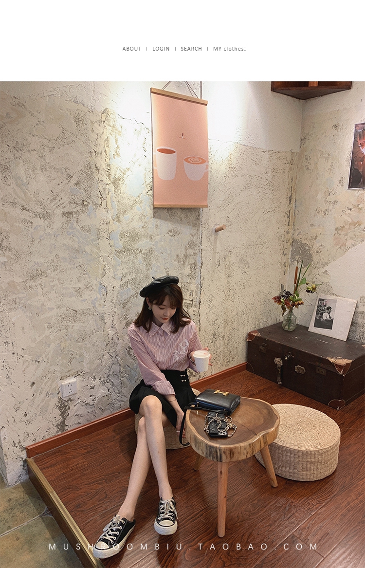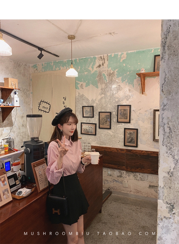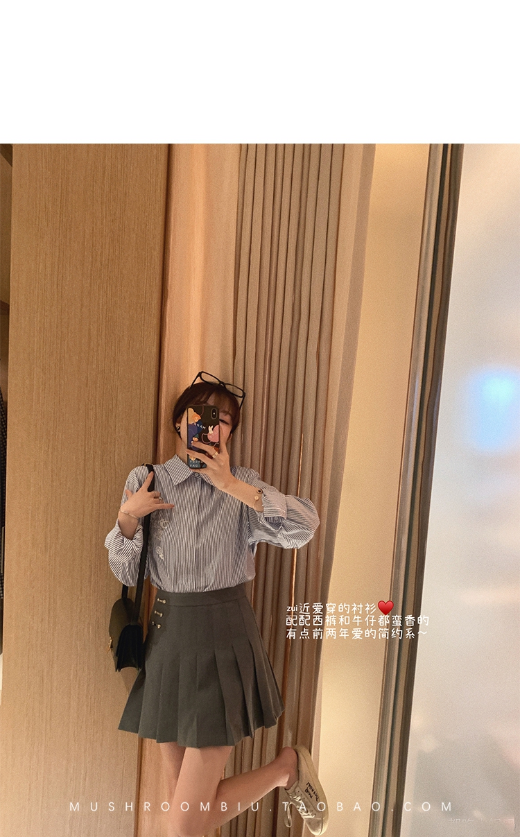 【金蘑菇菇 Anita大牌衬衫】多版本!经典简约条纹翻领衬衫