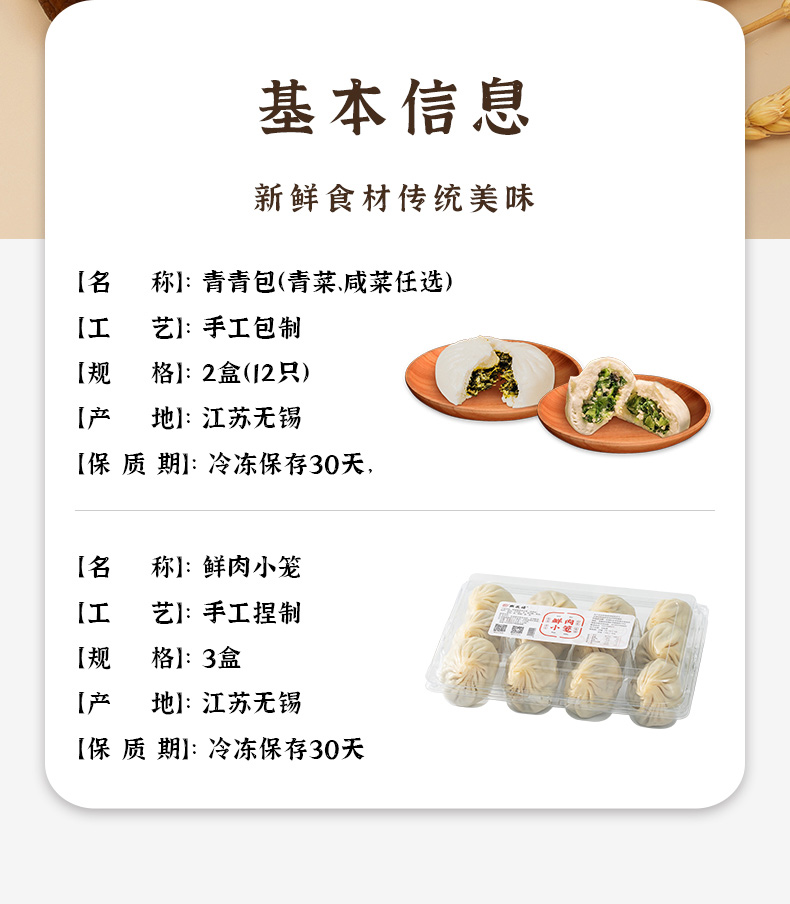 早餐包点(3盒鲜肉小笼+2盒青青包)