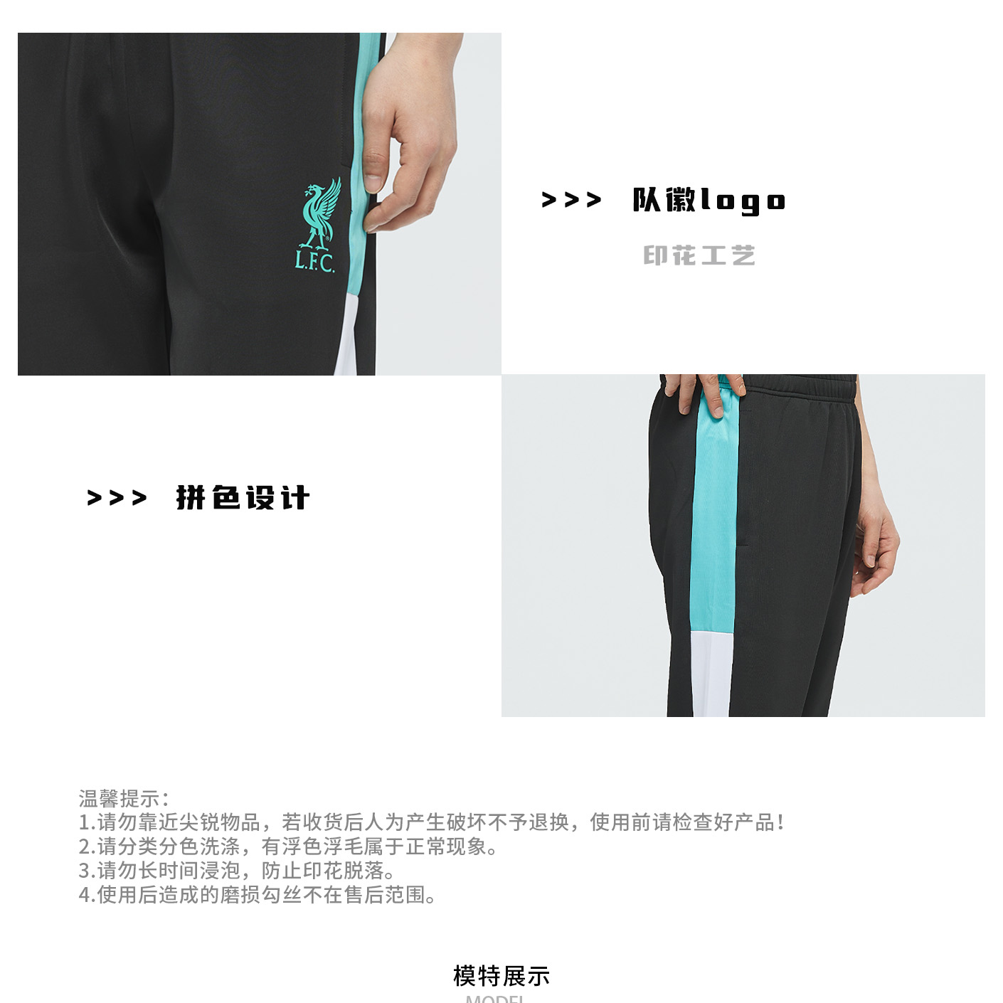 【官方正版】利物浦俱乐部 | 简约拼色长裤夏季休闲百搭裤子