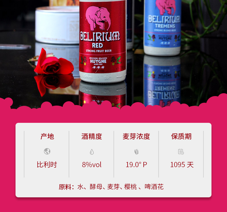 比利时粉象啤酒系列330ml 深粉象/银粉象/浅粉象/樱桃味 精致酿造 012059/012060/012061/012167