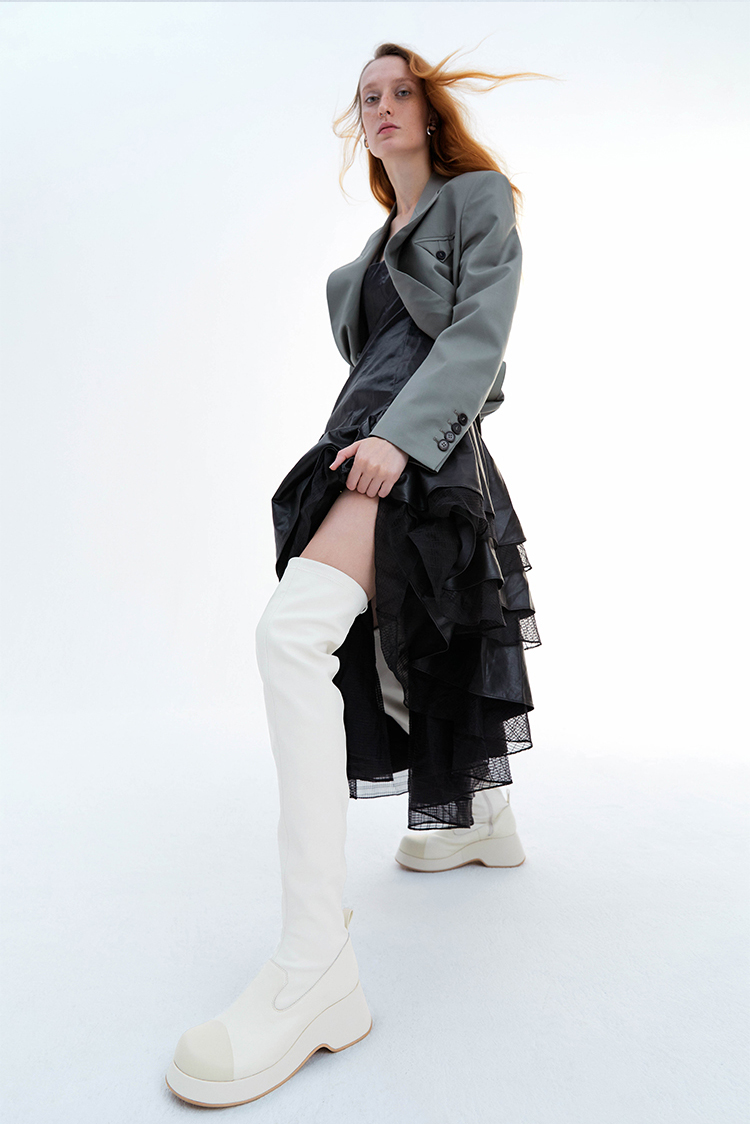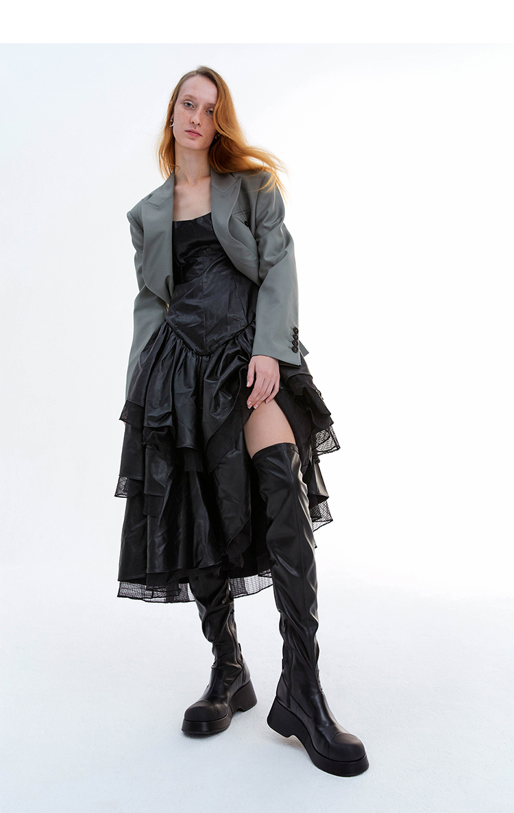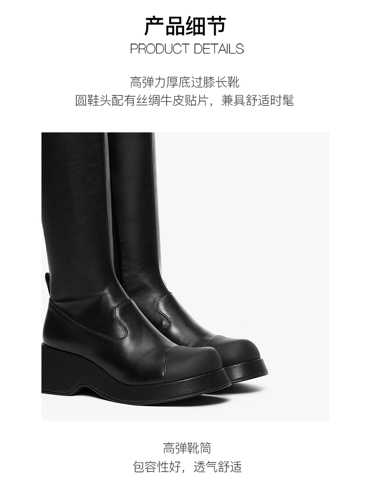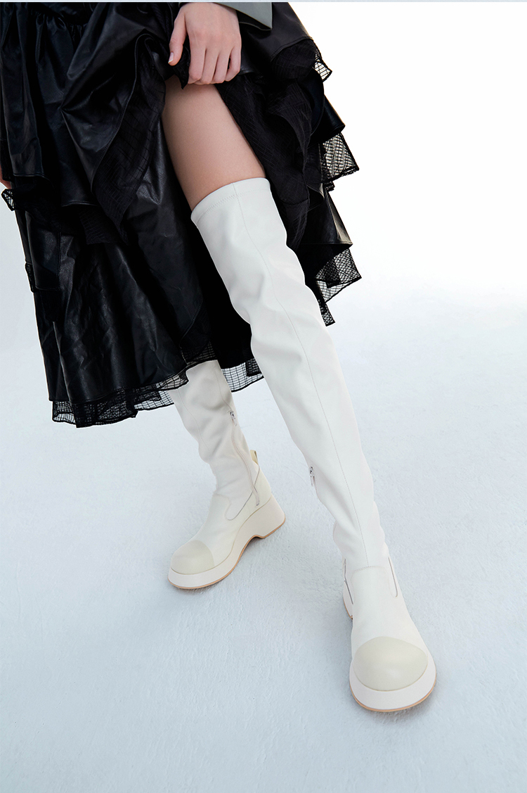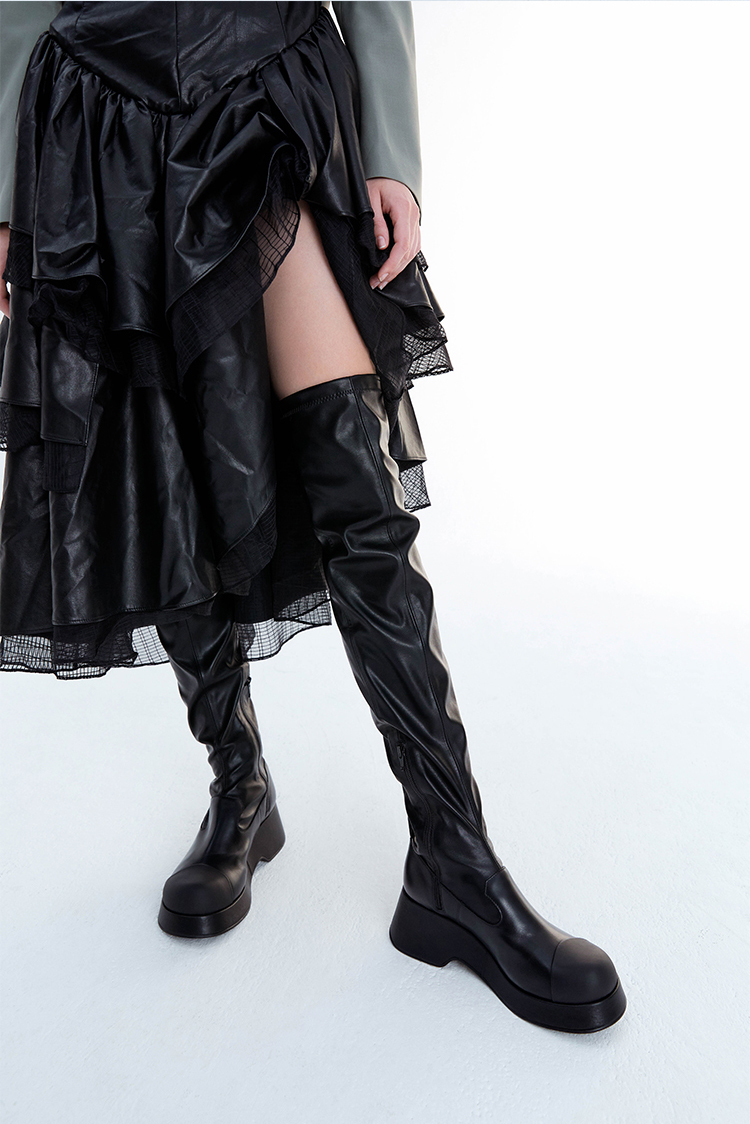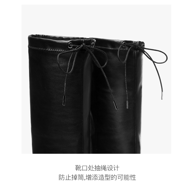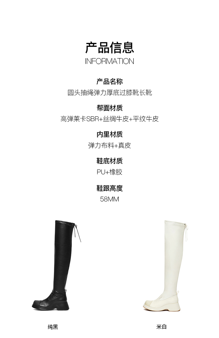 lost in echo 原创设计师品牌 圆头抽绳弹力厚底过膝靴长靴