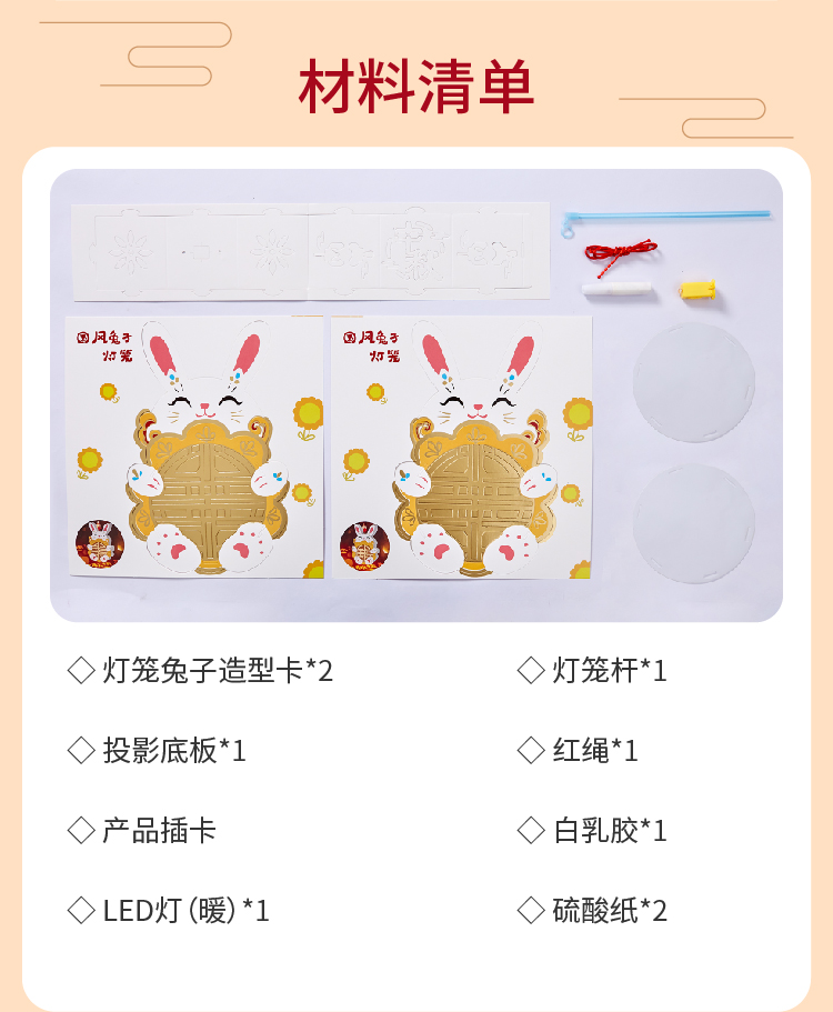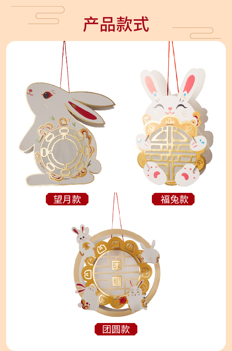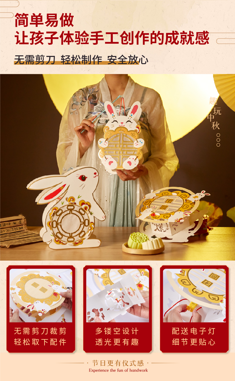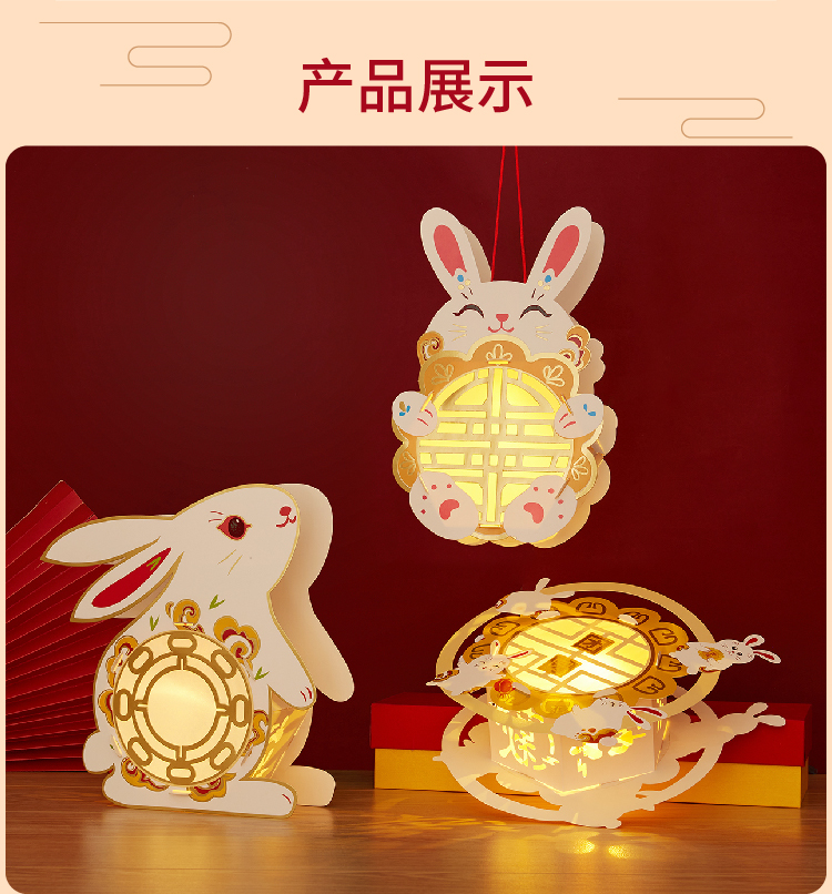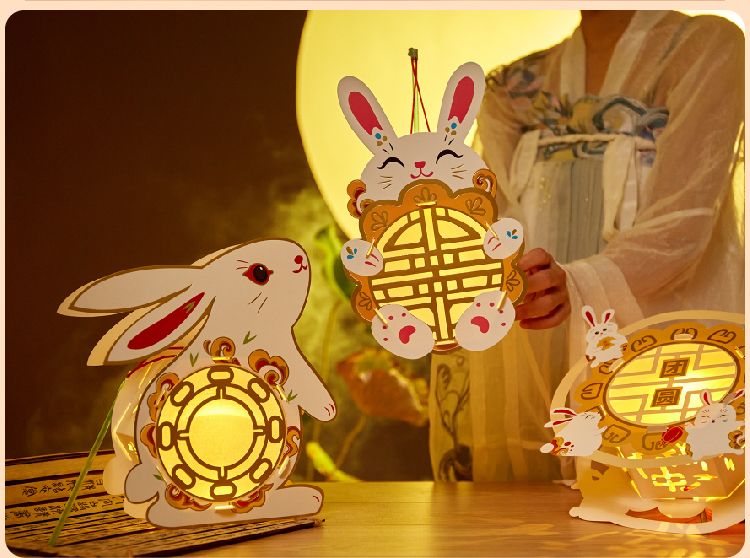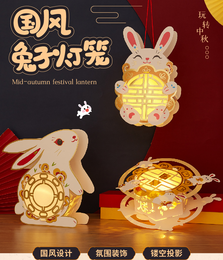 【五号下架】中秋节手工diy儿童手提发光花灯制作材料包古风宫灯国风兔子灯笼