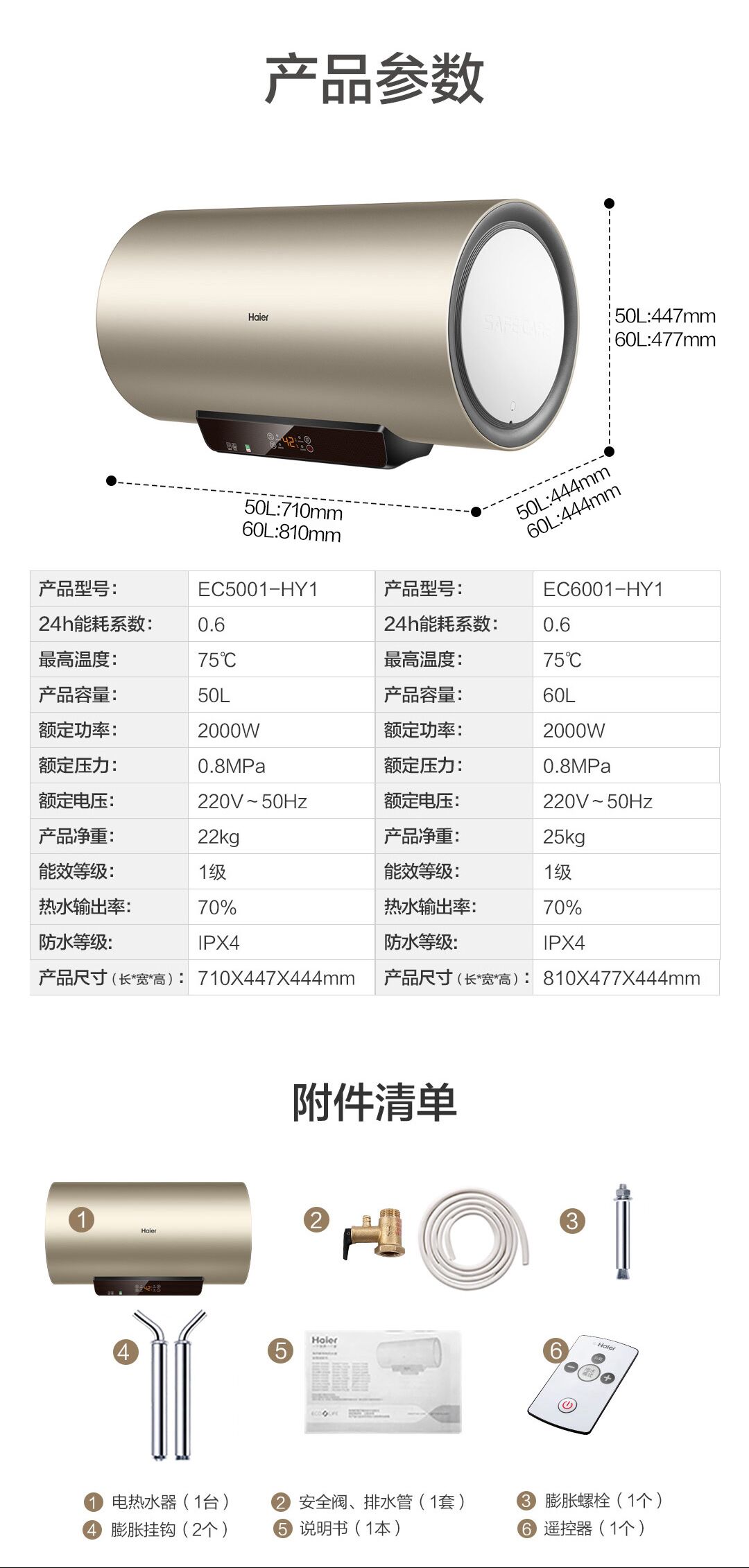 海尔(Haier)电热水器 EC6001-HY1