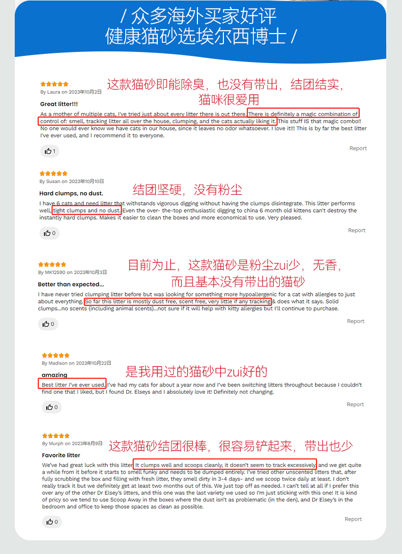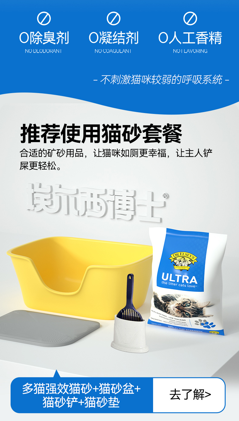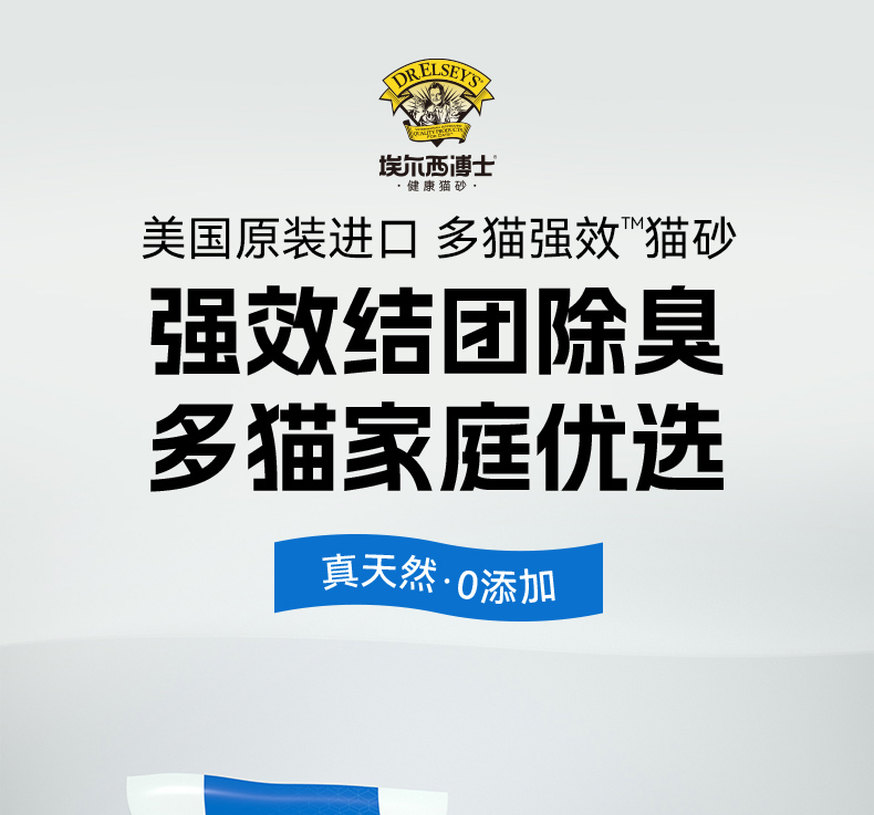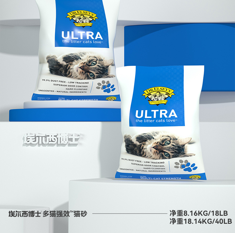 【品牌多地云仓直发】埃尔西博士Dr.Elsey's美国进口膨润土猫砂 多猫强效蓝标 除臭结团低尘 袋装40磅