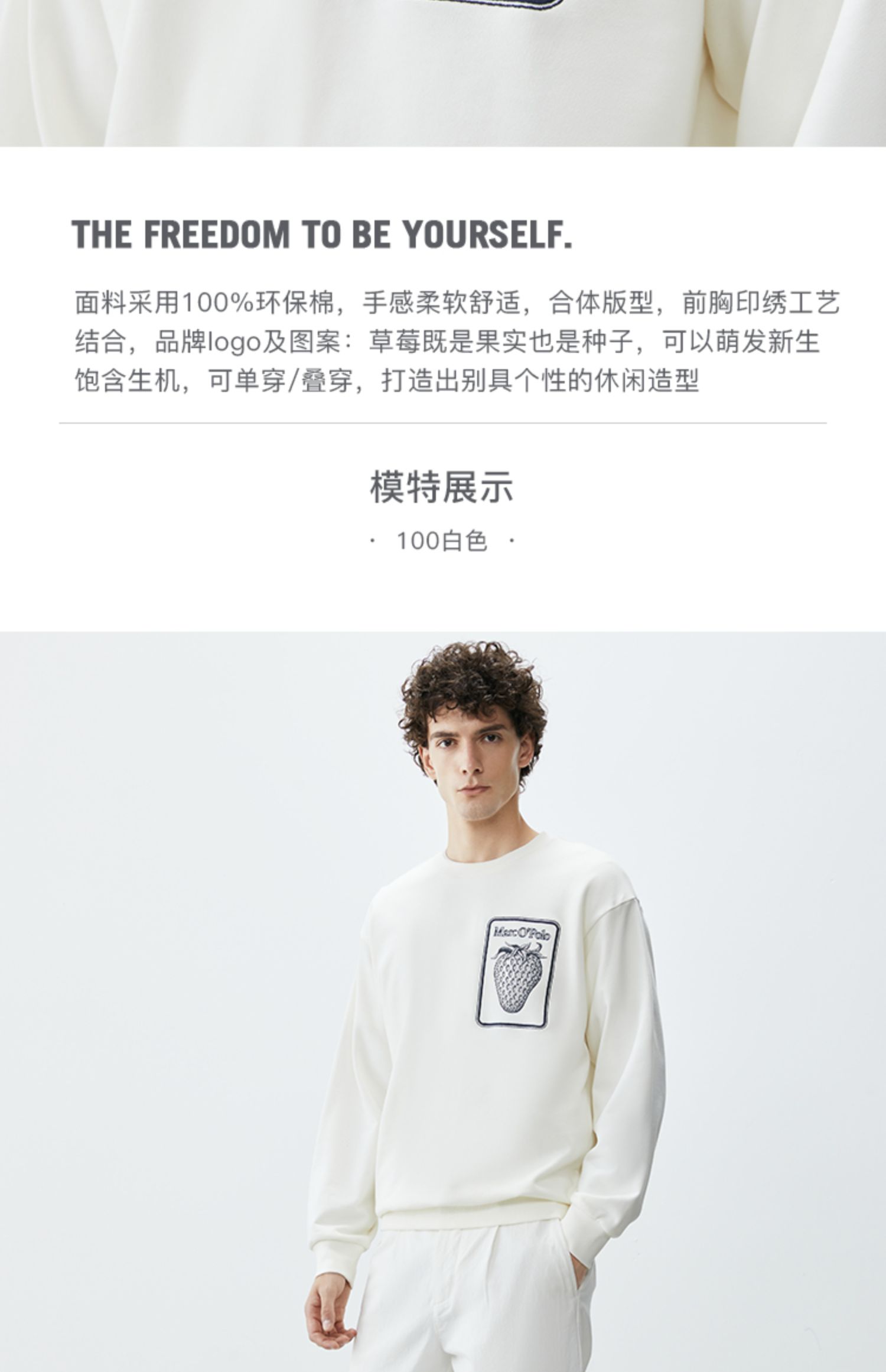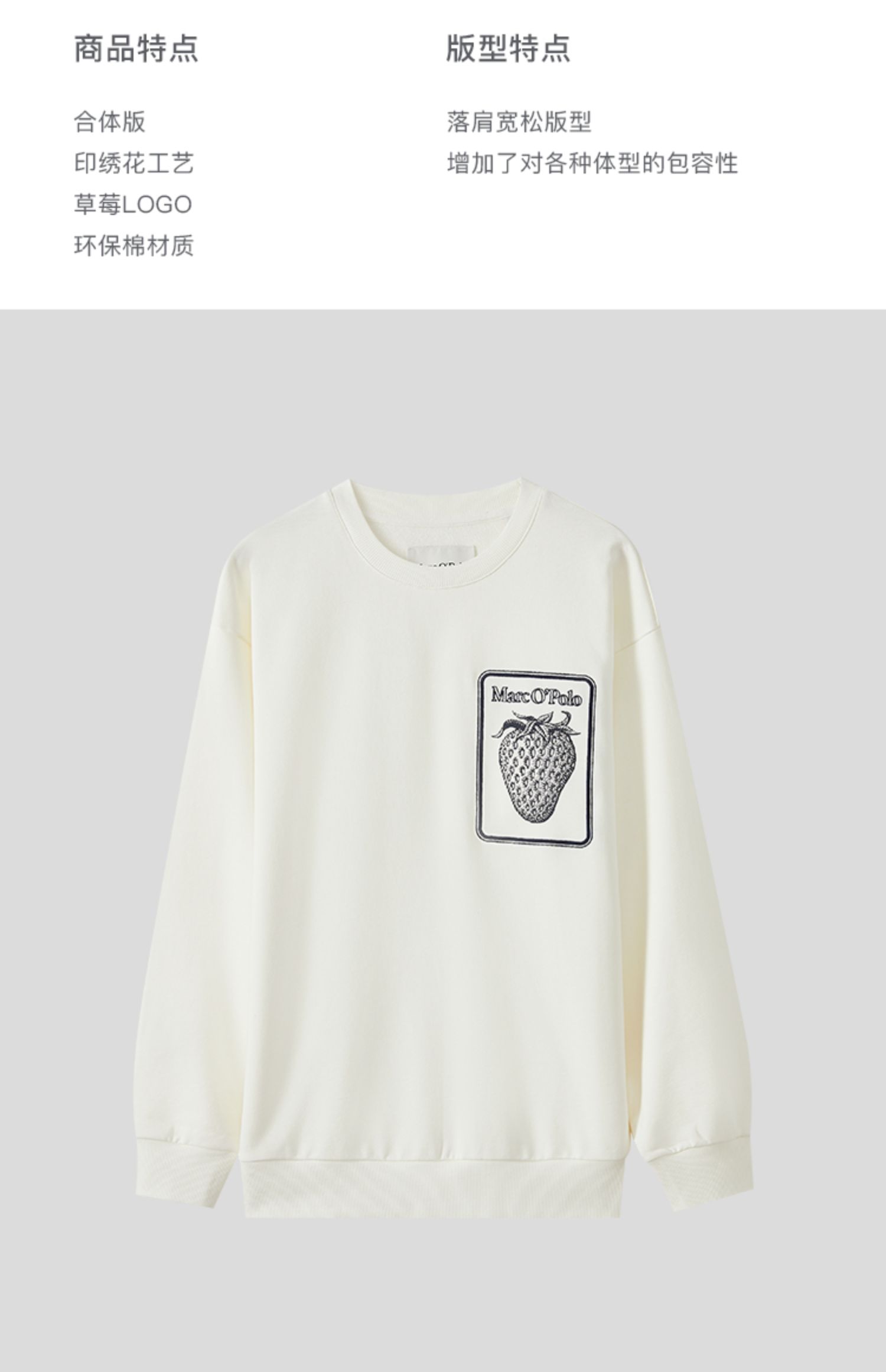 Marc O'Polo/MOP 秋季新款简约质感刺绣宽松纯棉圆领卫衣男士