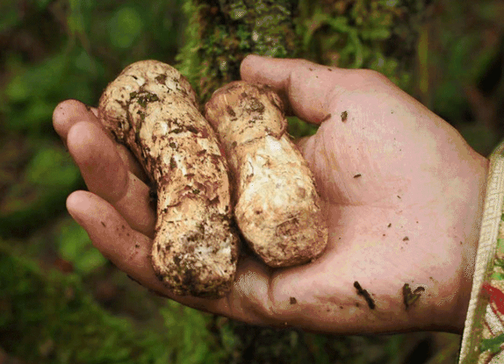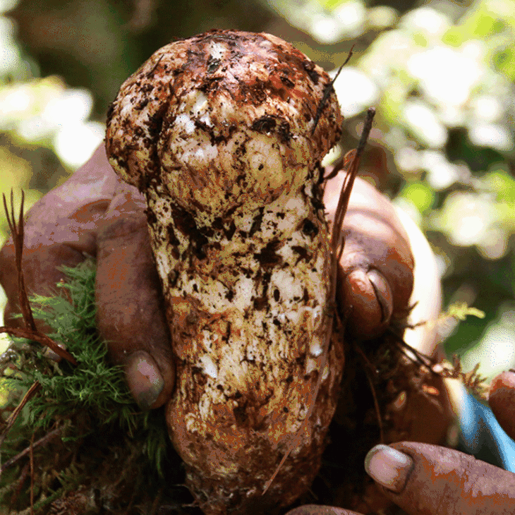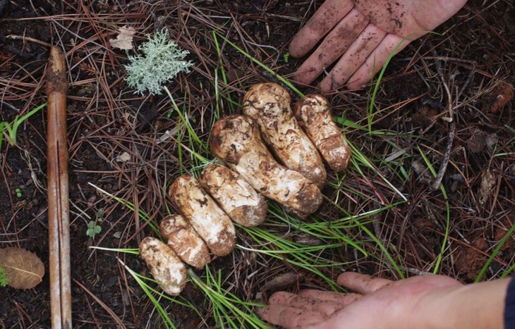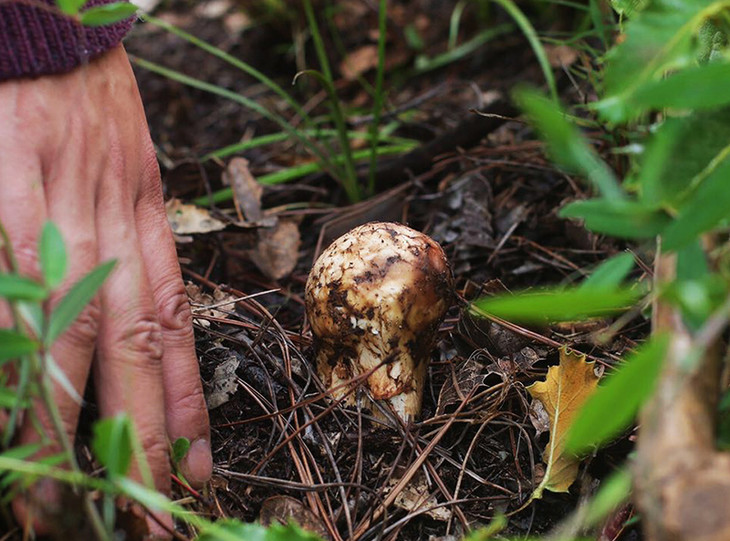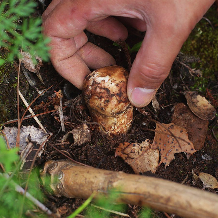 从菌丝开始生长到破土而出,松茸已经在土壤中蛰伏五年以上的时间。破土之后,松茸还会被一层厚厚的树叶或者野草覆盖,若非独具慧眼,根本无法发现,空手而归是常有的事情。