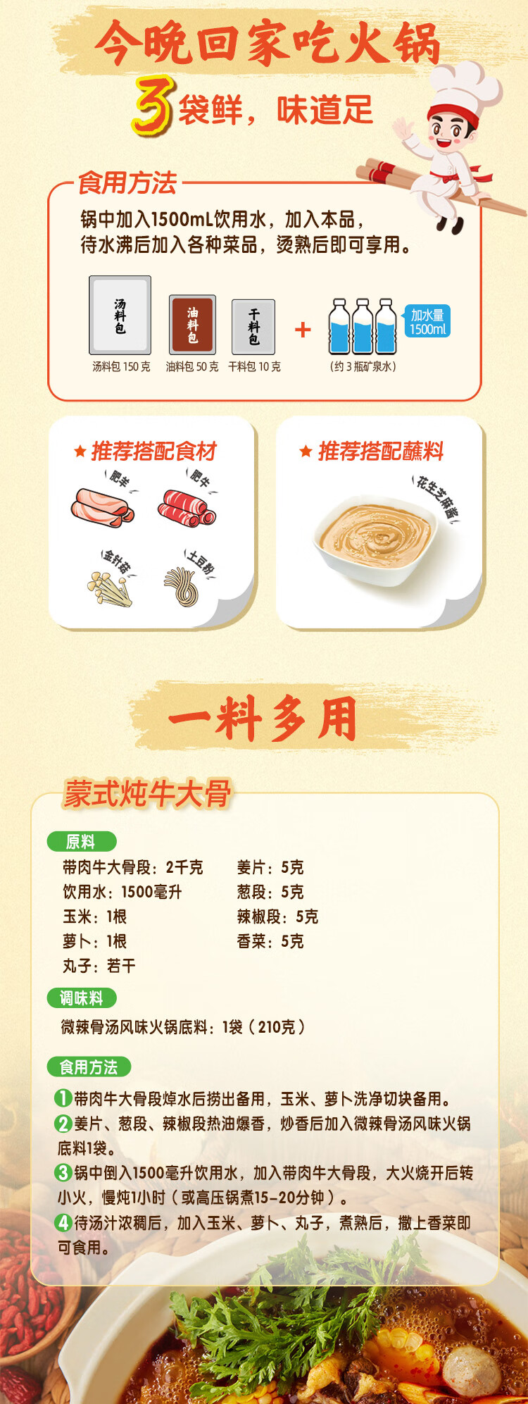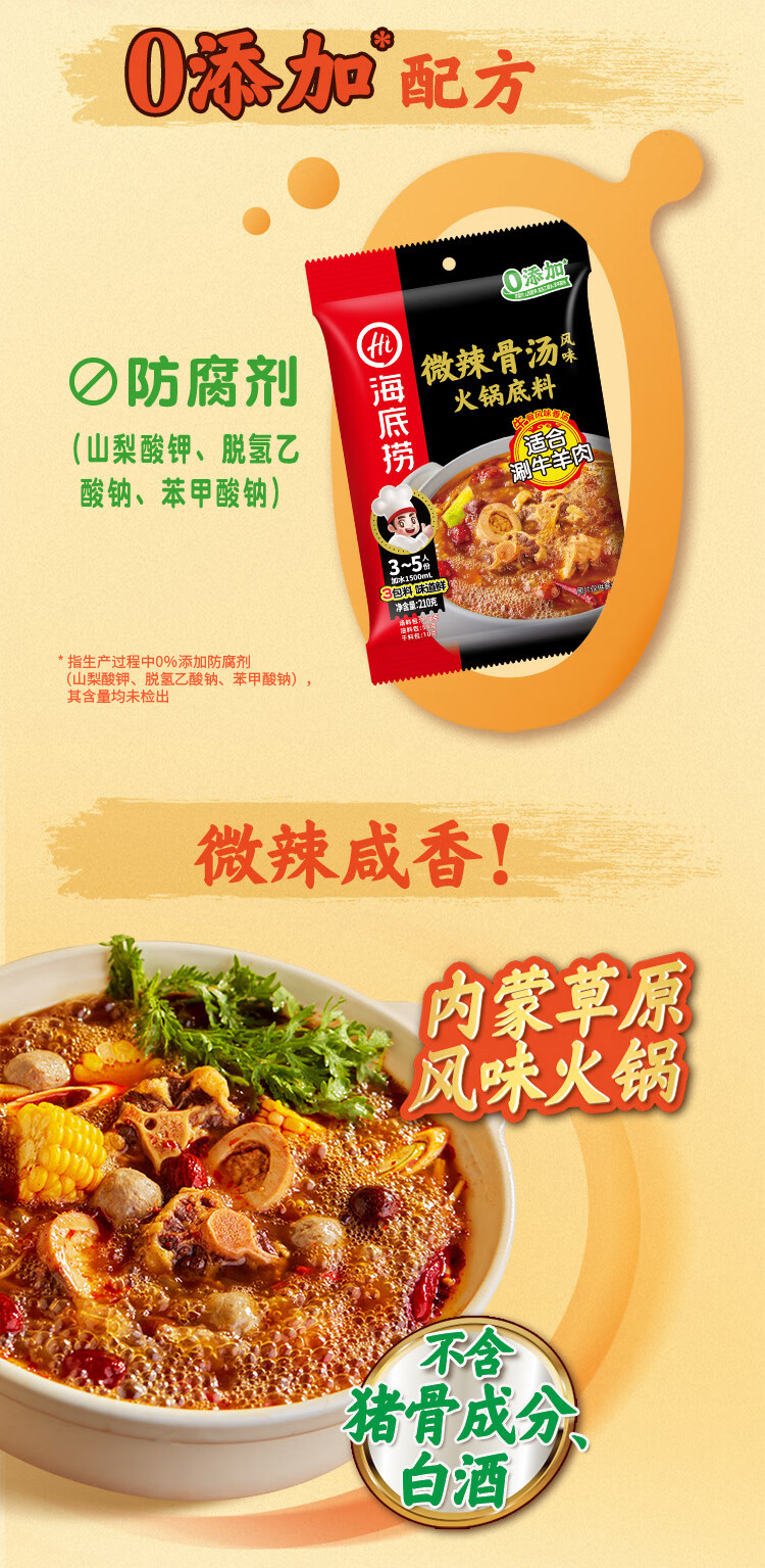 海底捞微辣骨汤风味火锅底料(3~5人)210g