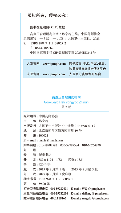 高血压合理用药指南 第3三版 孙宁玲 高血压流行病学特点及治疗现状 常用抗高血压药分类 常用抗高血压药单药治疗等人民卫生出版社