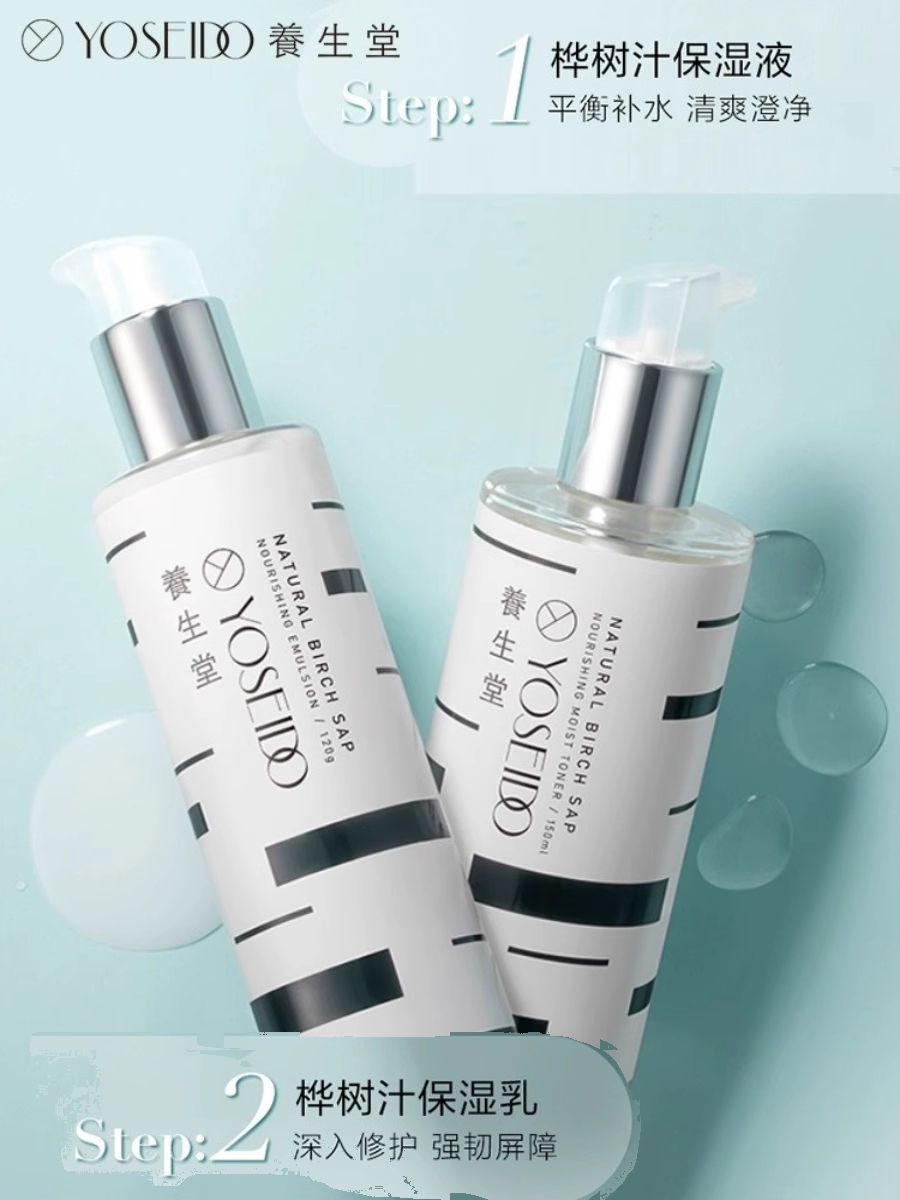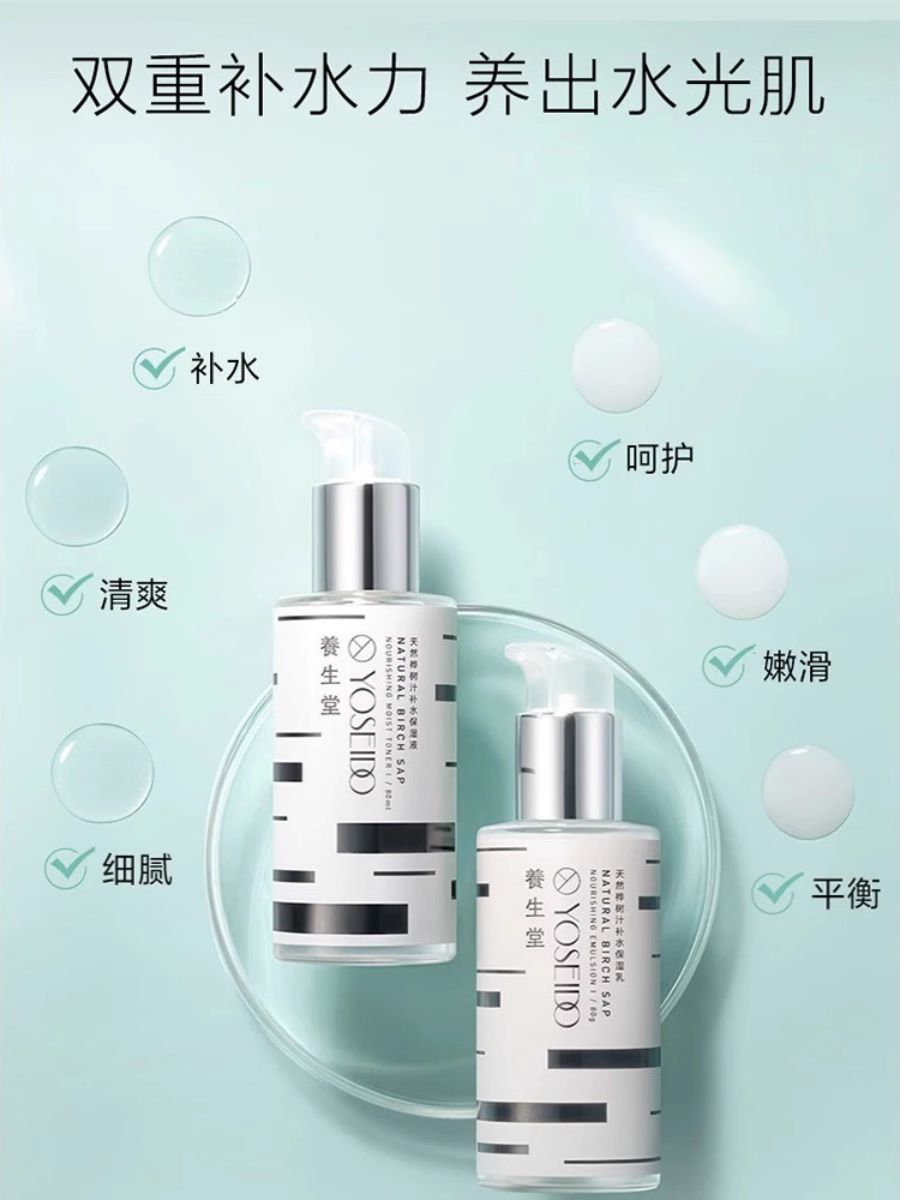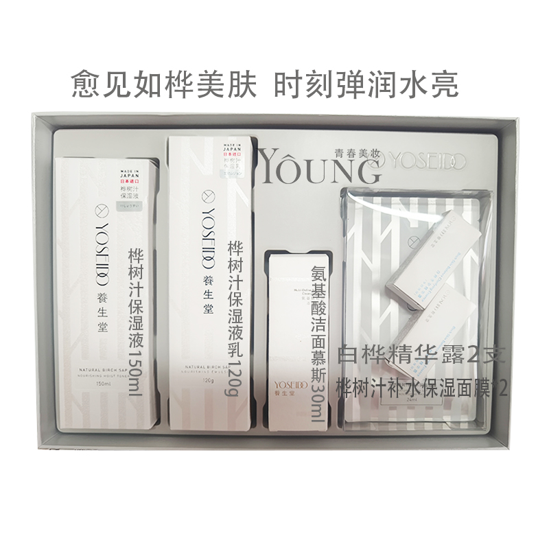 养生堂天然桦树汁保湿水乳礼盒 水+乳+洁面+精华*2+面朠*2