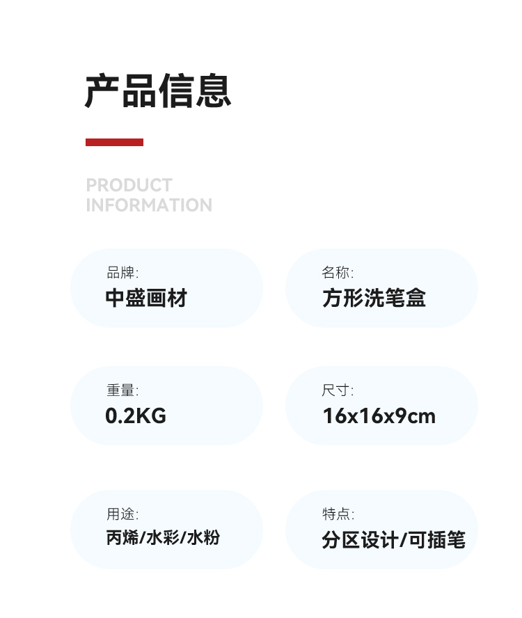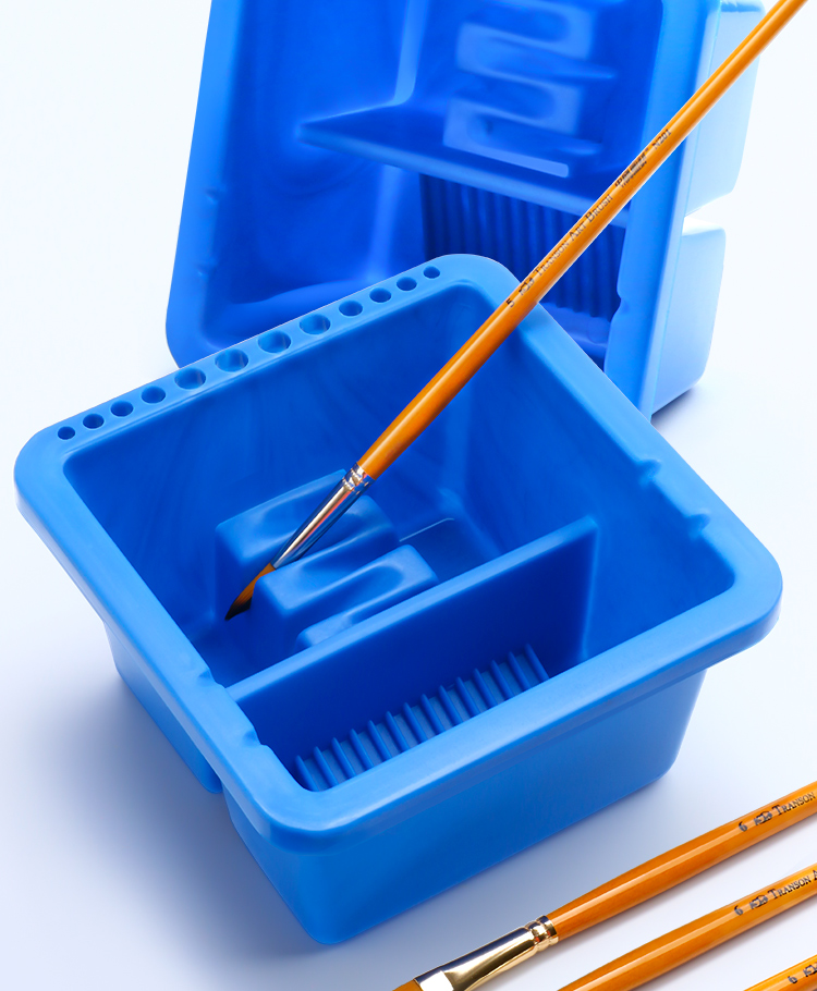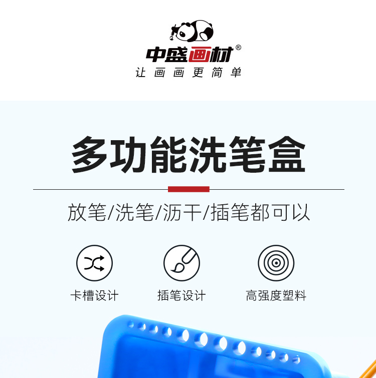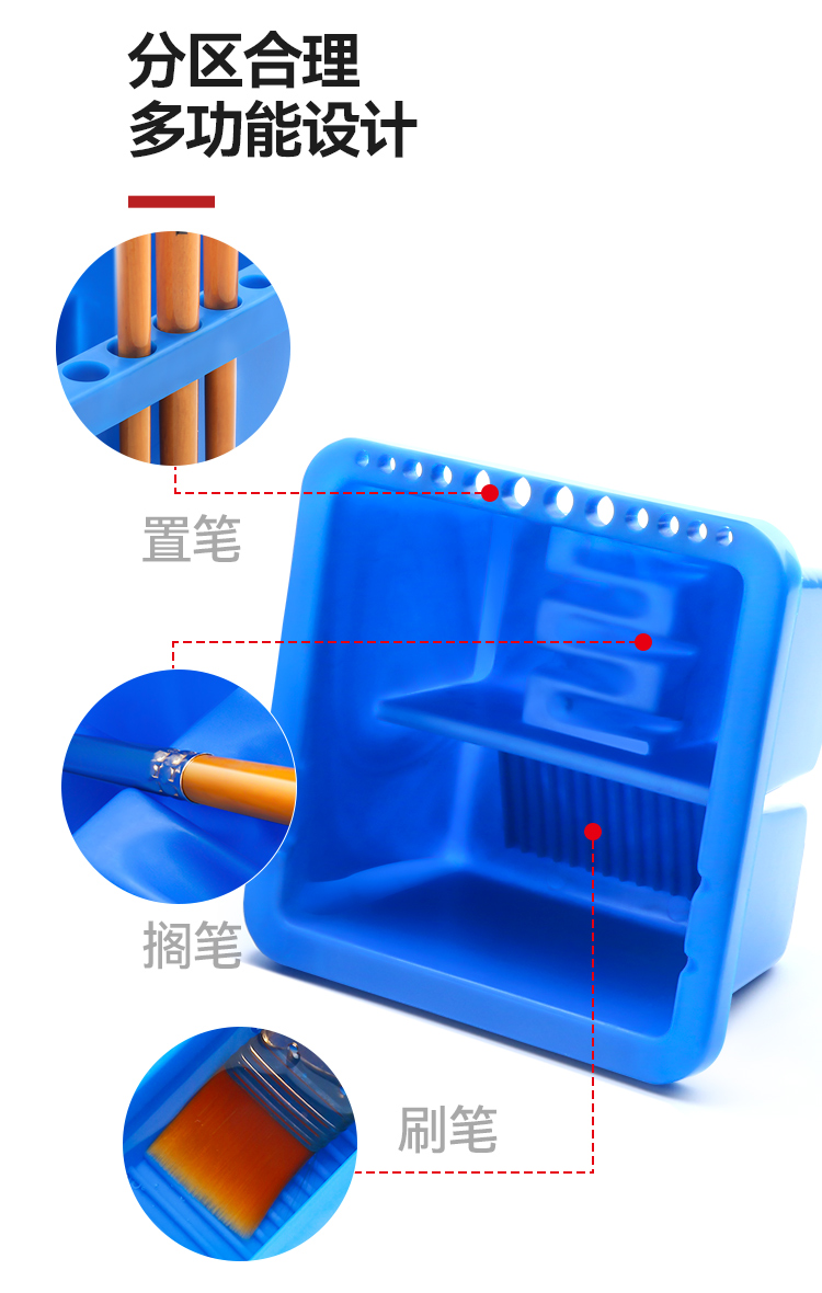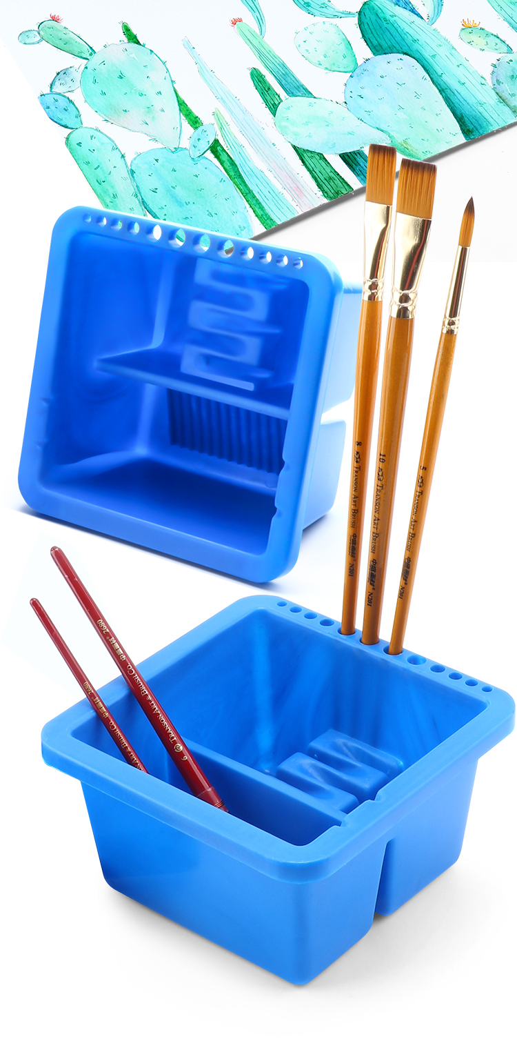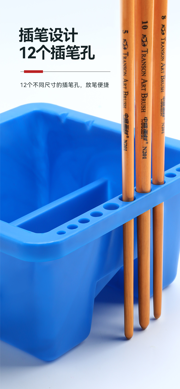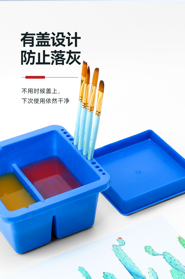 中盛画材 塑料洗笔盒多功能方形洗笔器水粉油画洗笔筒 带插笔孔