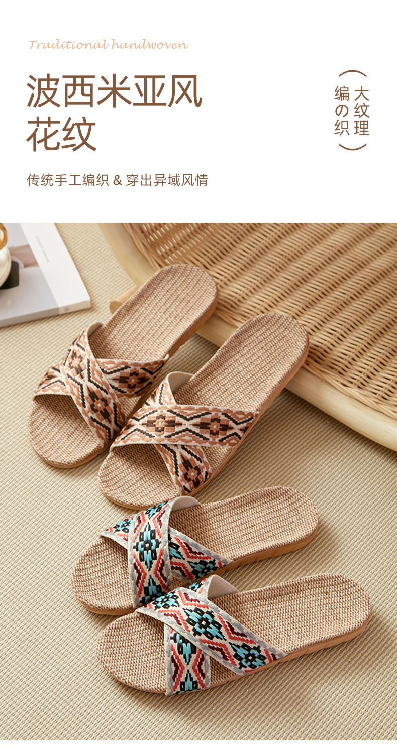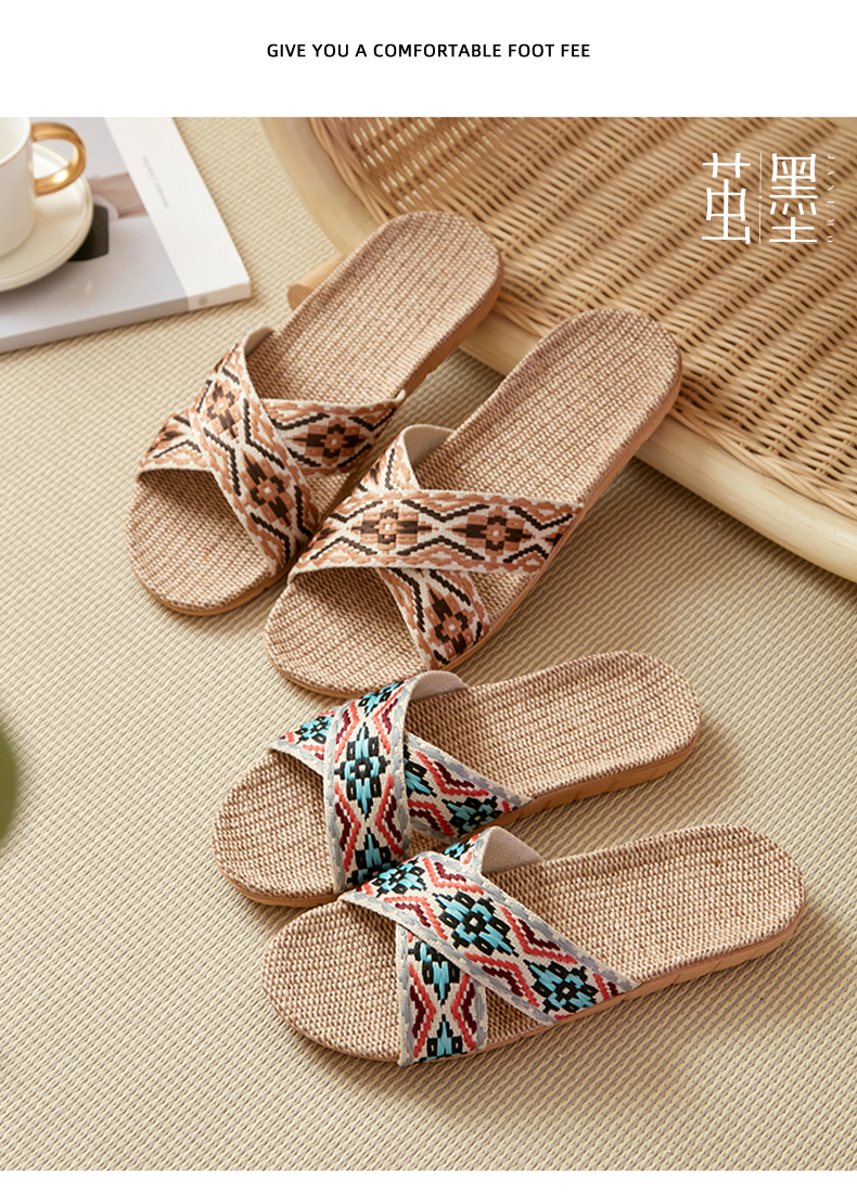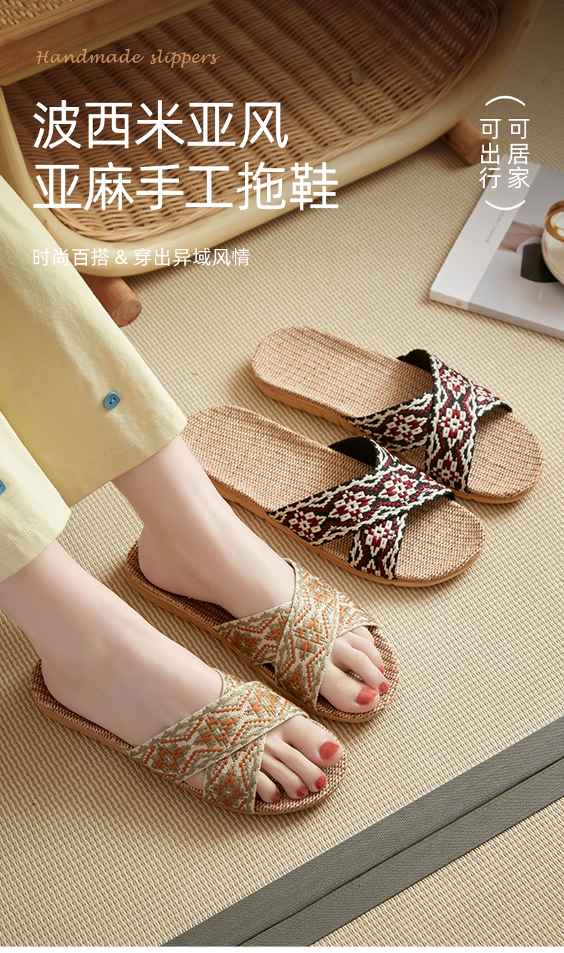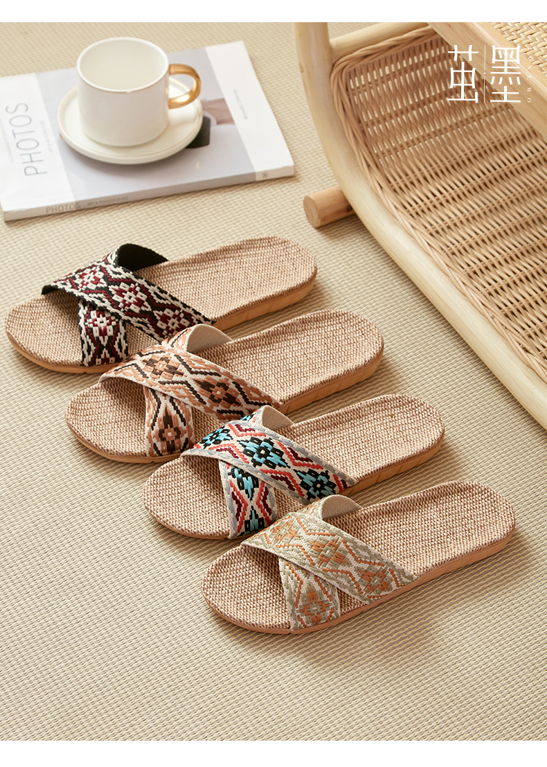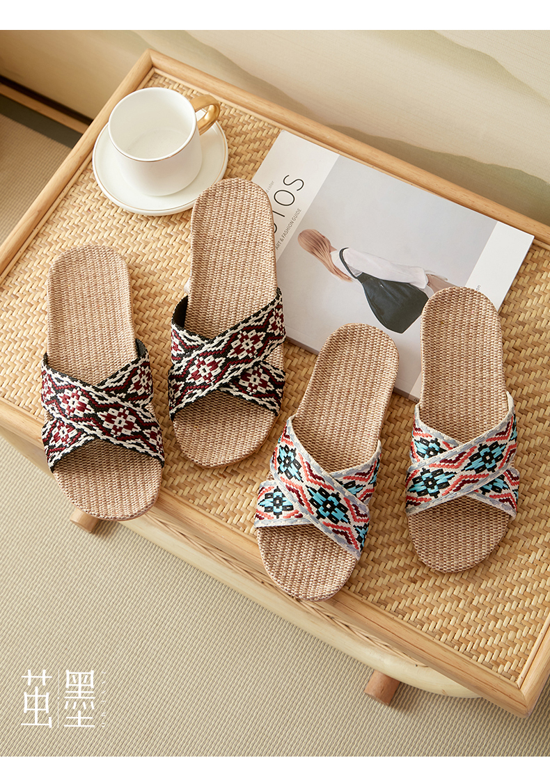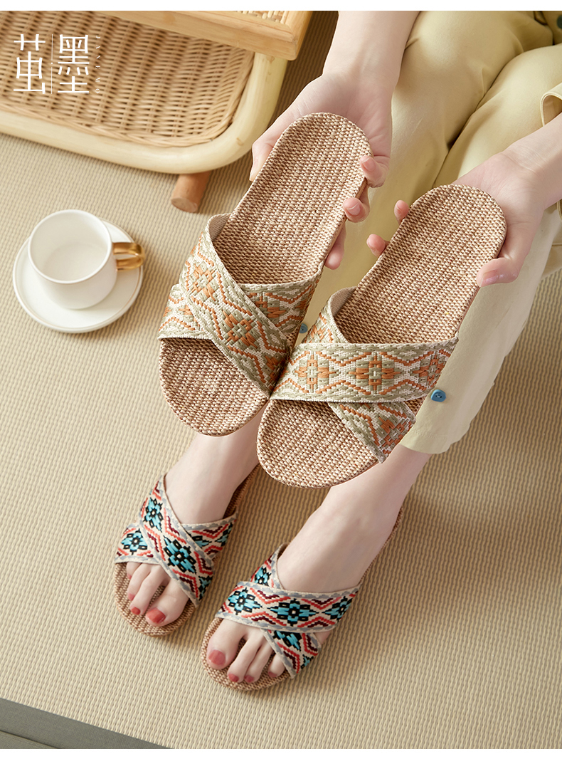 茧墨 波西米亚风亚麻手工拖鞋 男女款(拍大一码)