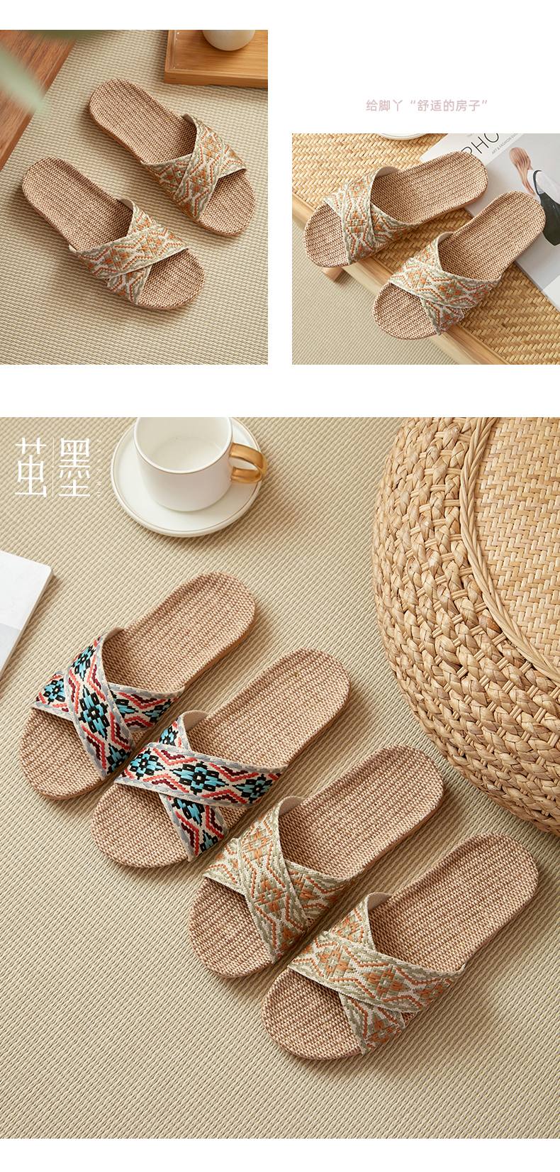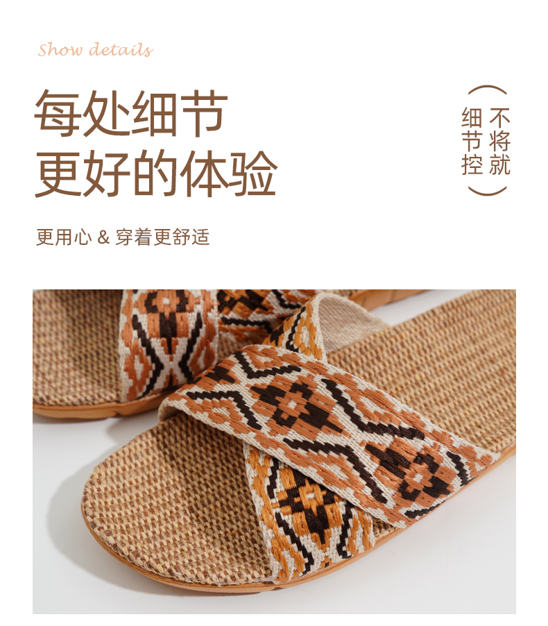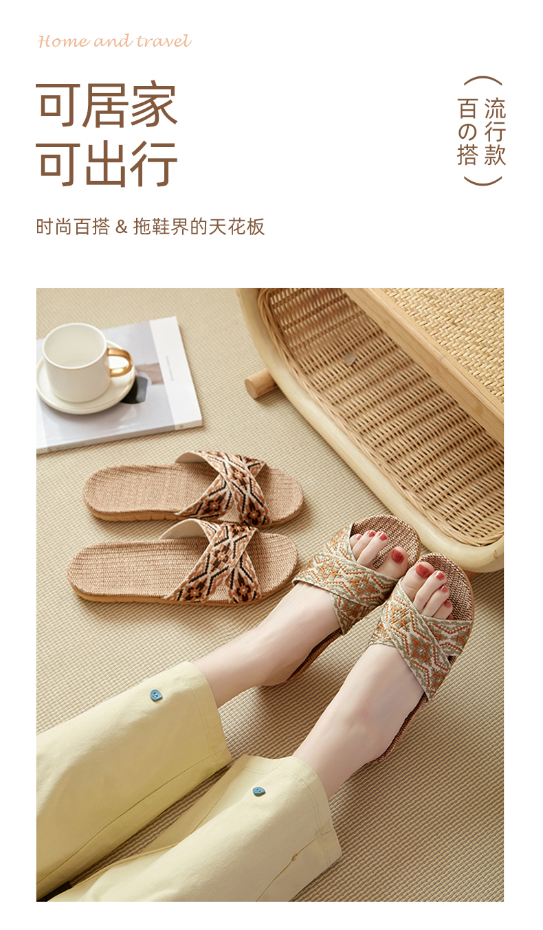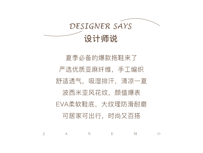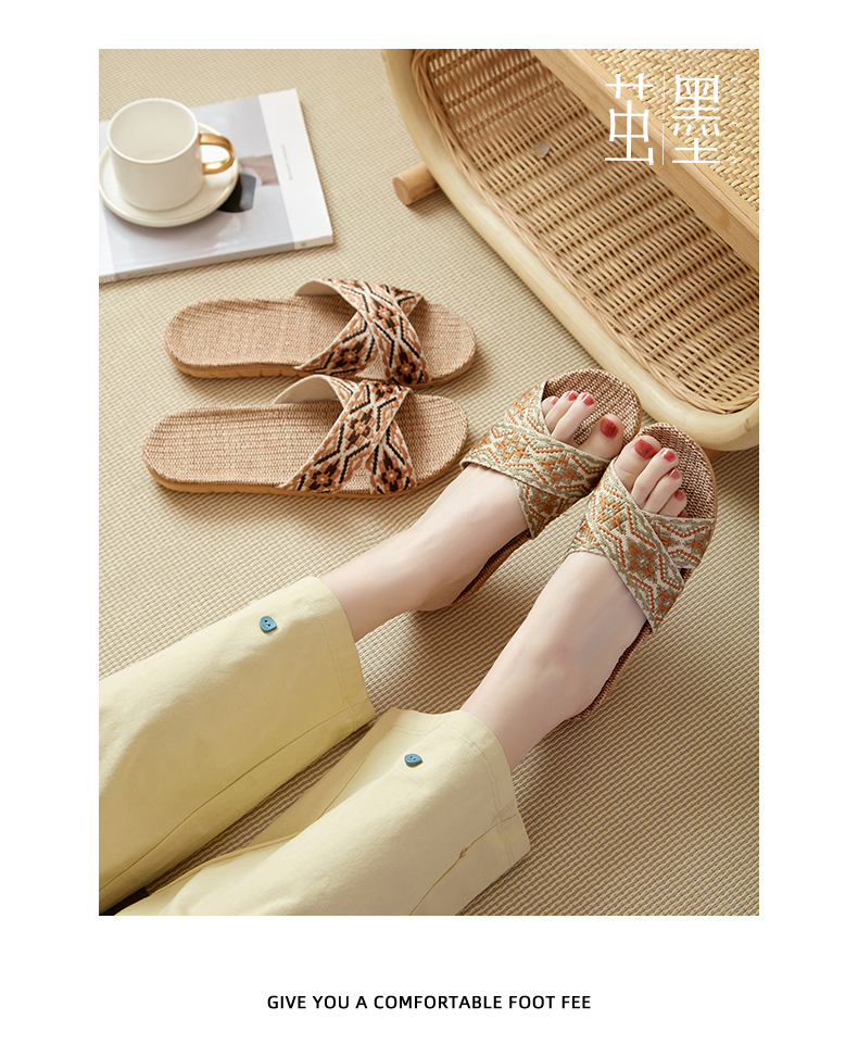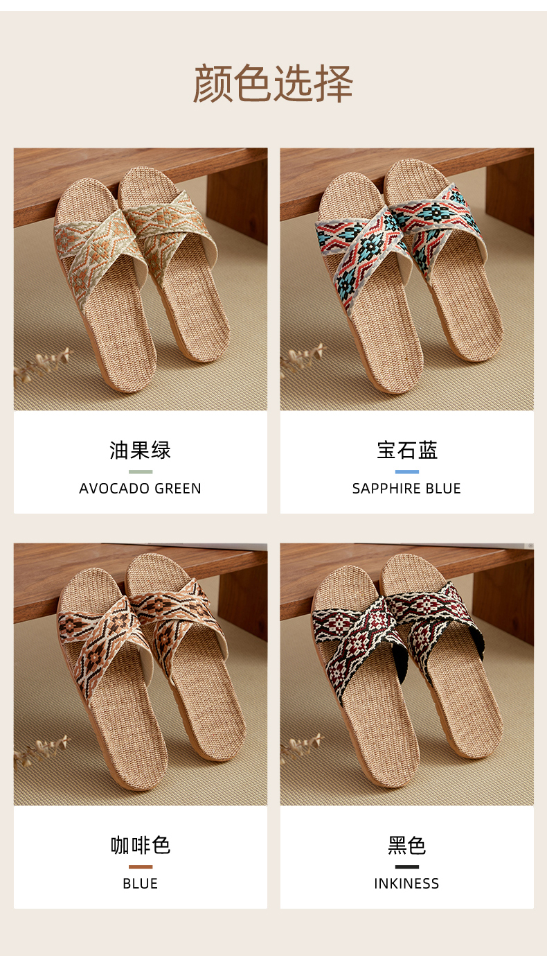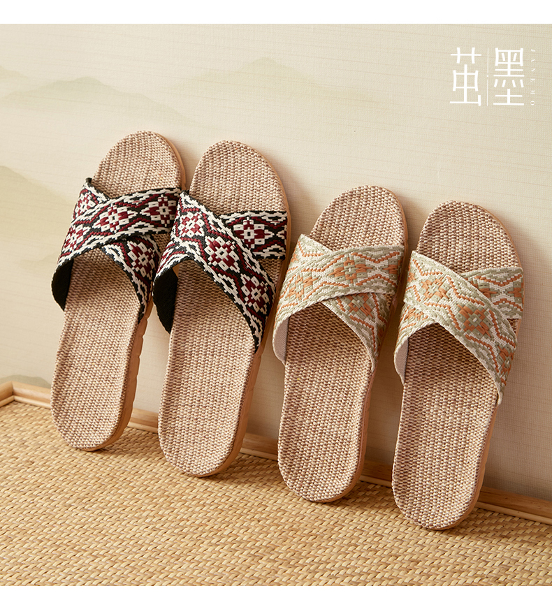茧墨 波西米亚风亚麻手工拖鞋 男女款(拍大一码)