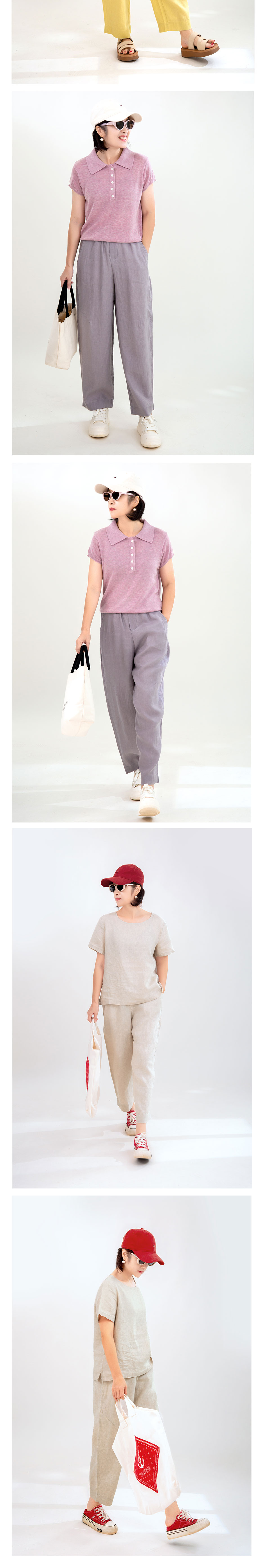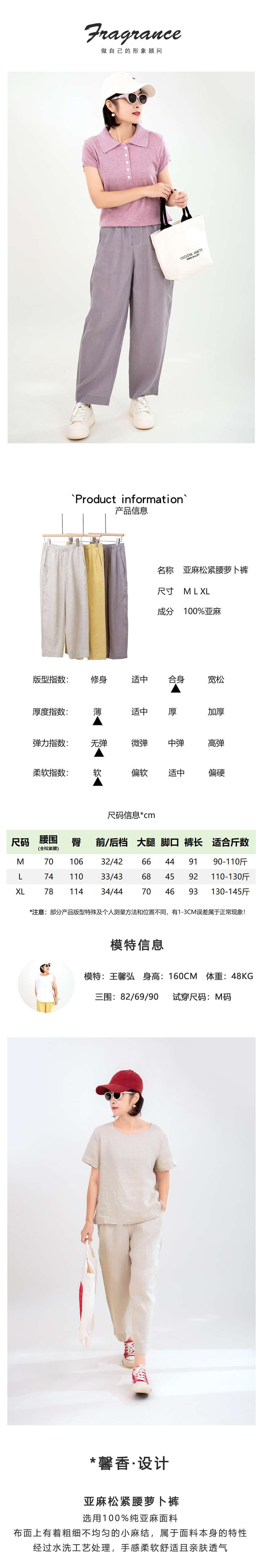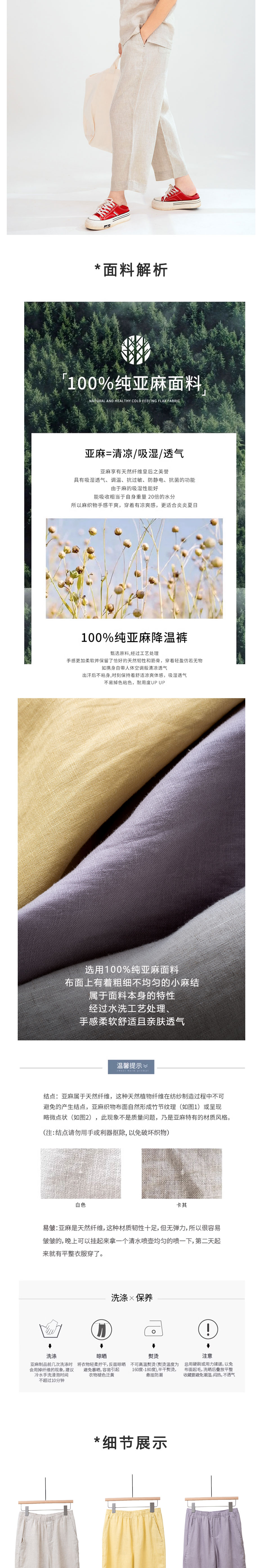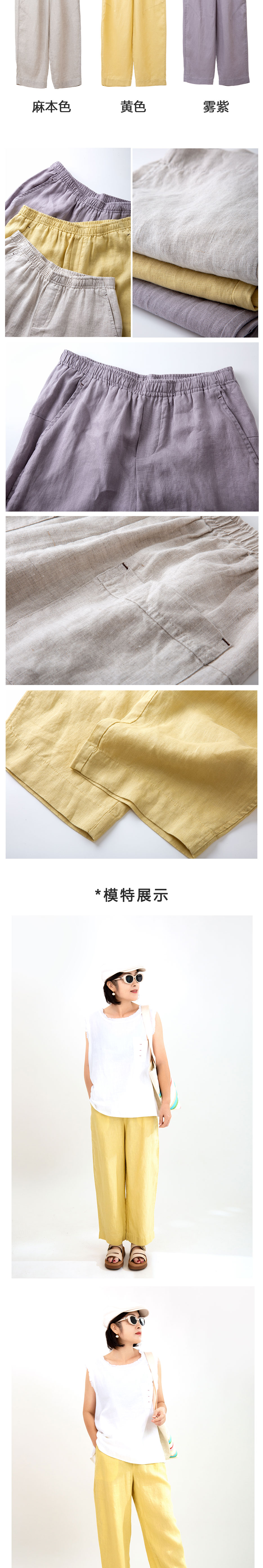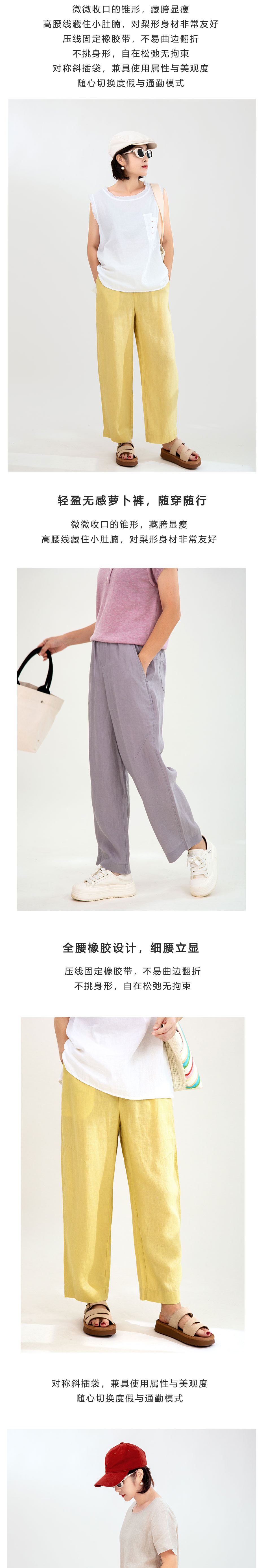 亚麻松紧腰萝卜裤