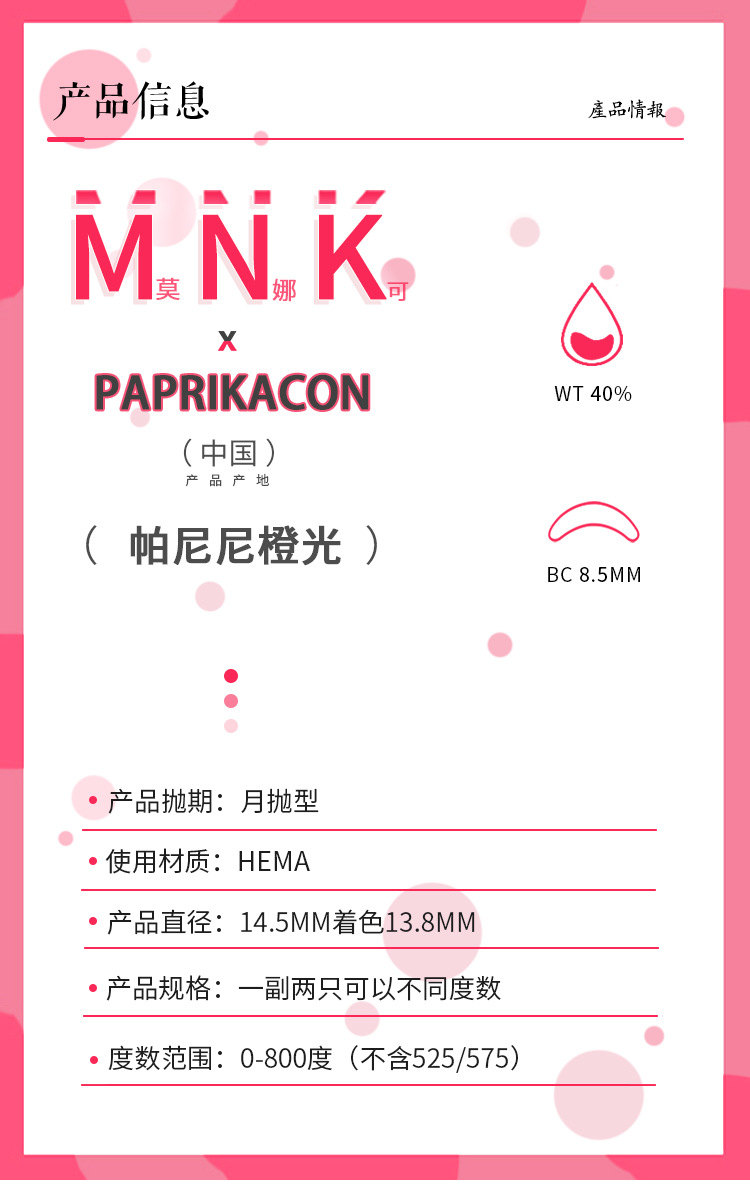 paprikacon 月抛美瞳 帕尼尼橙光 直径14.5mm着色13.8mm 商品图8
