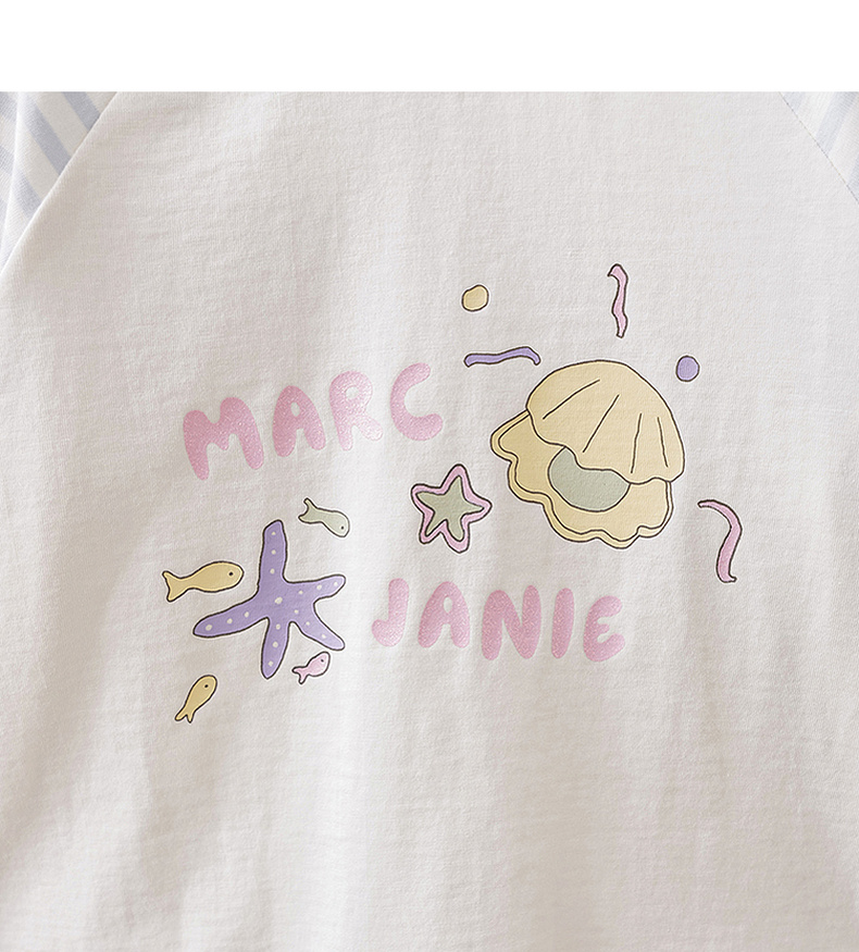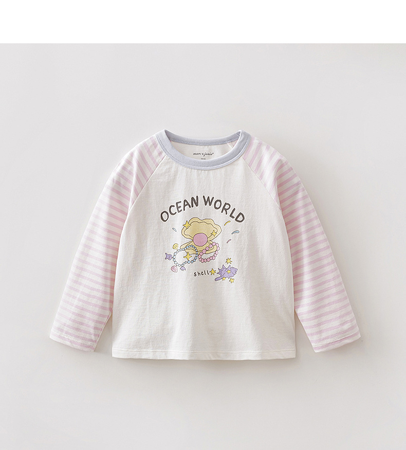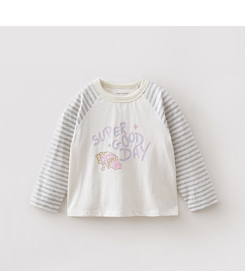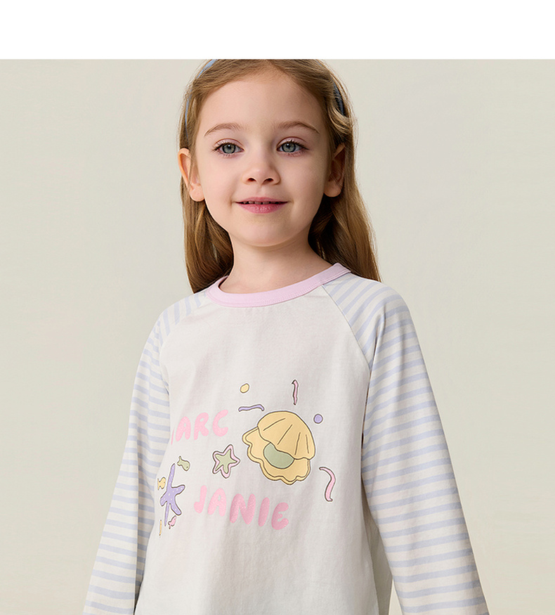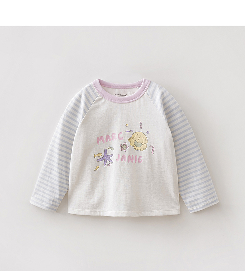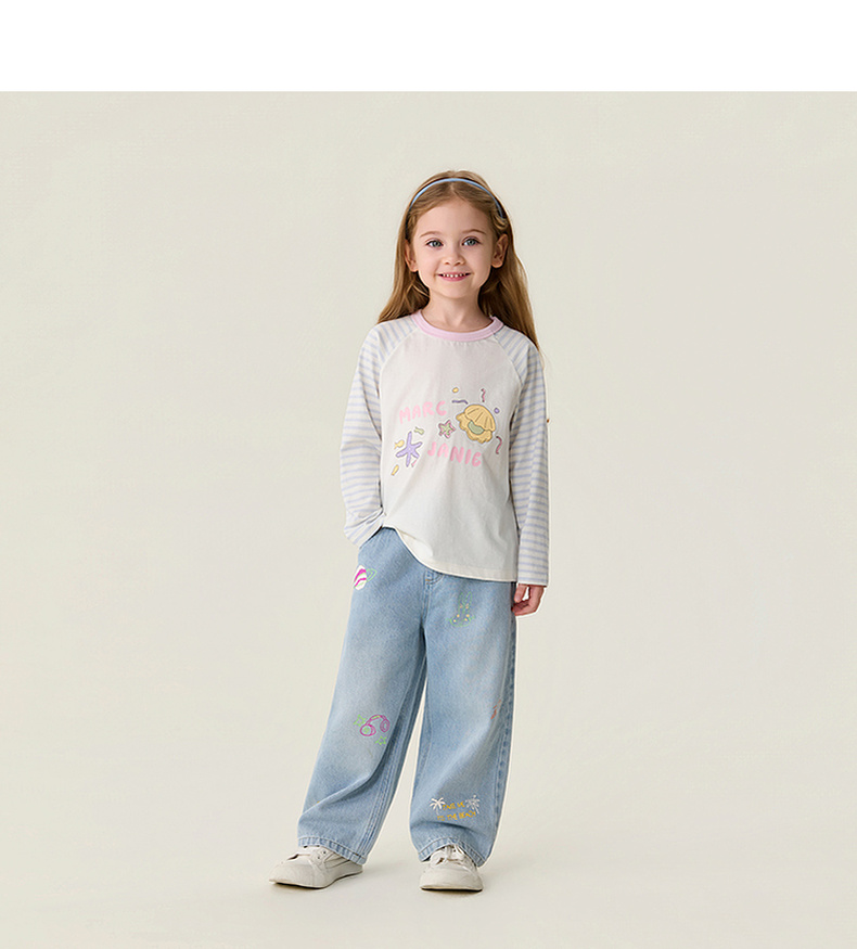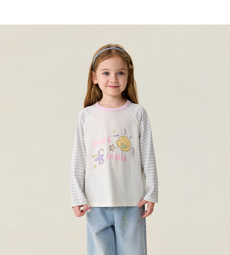马克珍妮多彩条纹女童纯棉手绘T恤2026年春装新款560119
