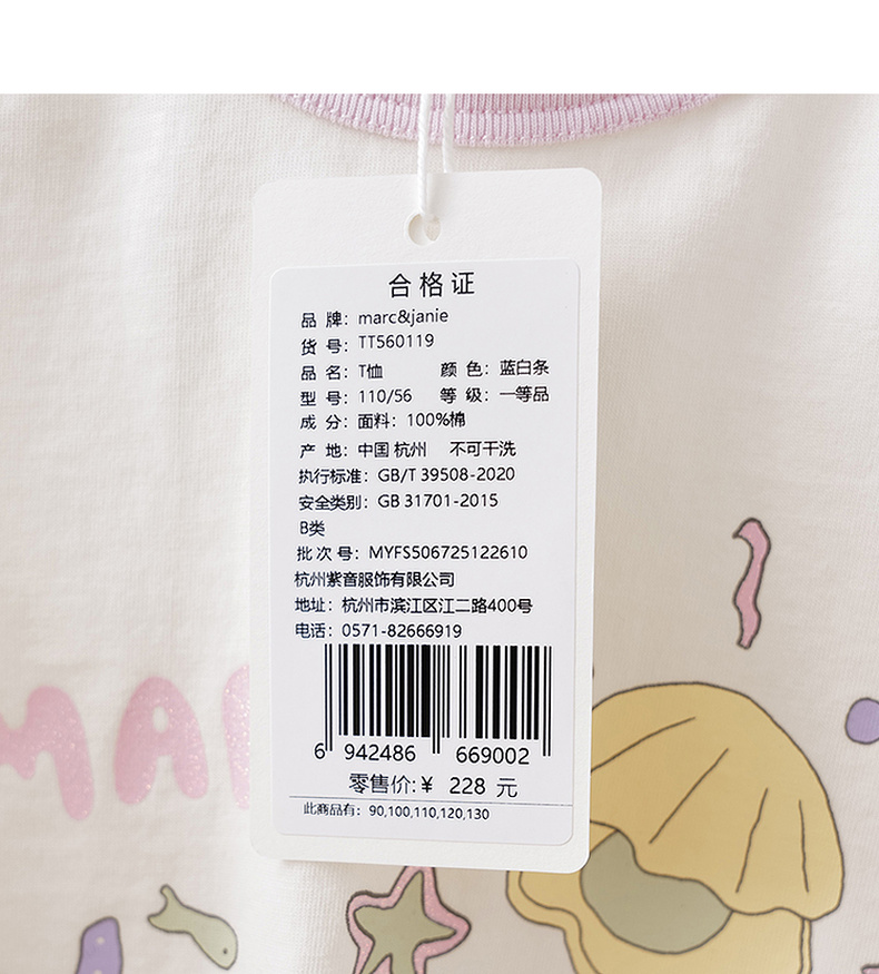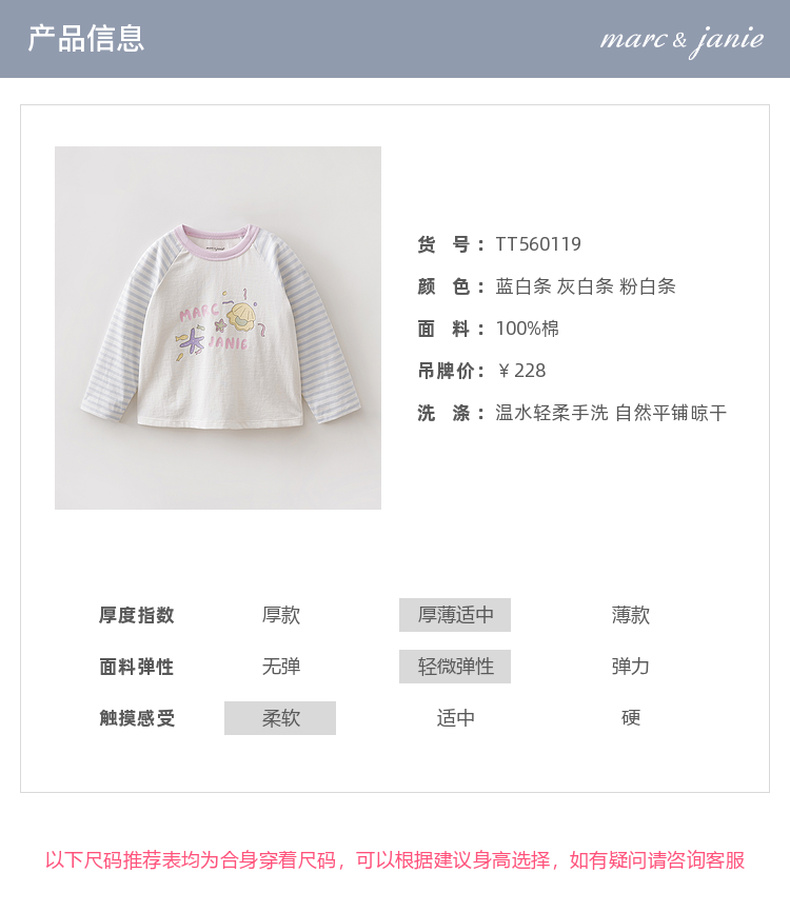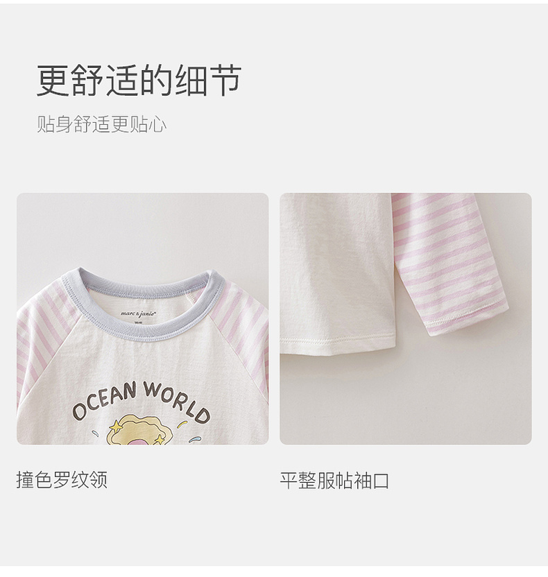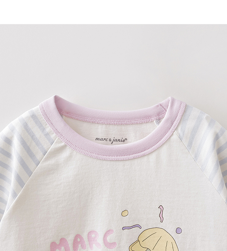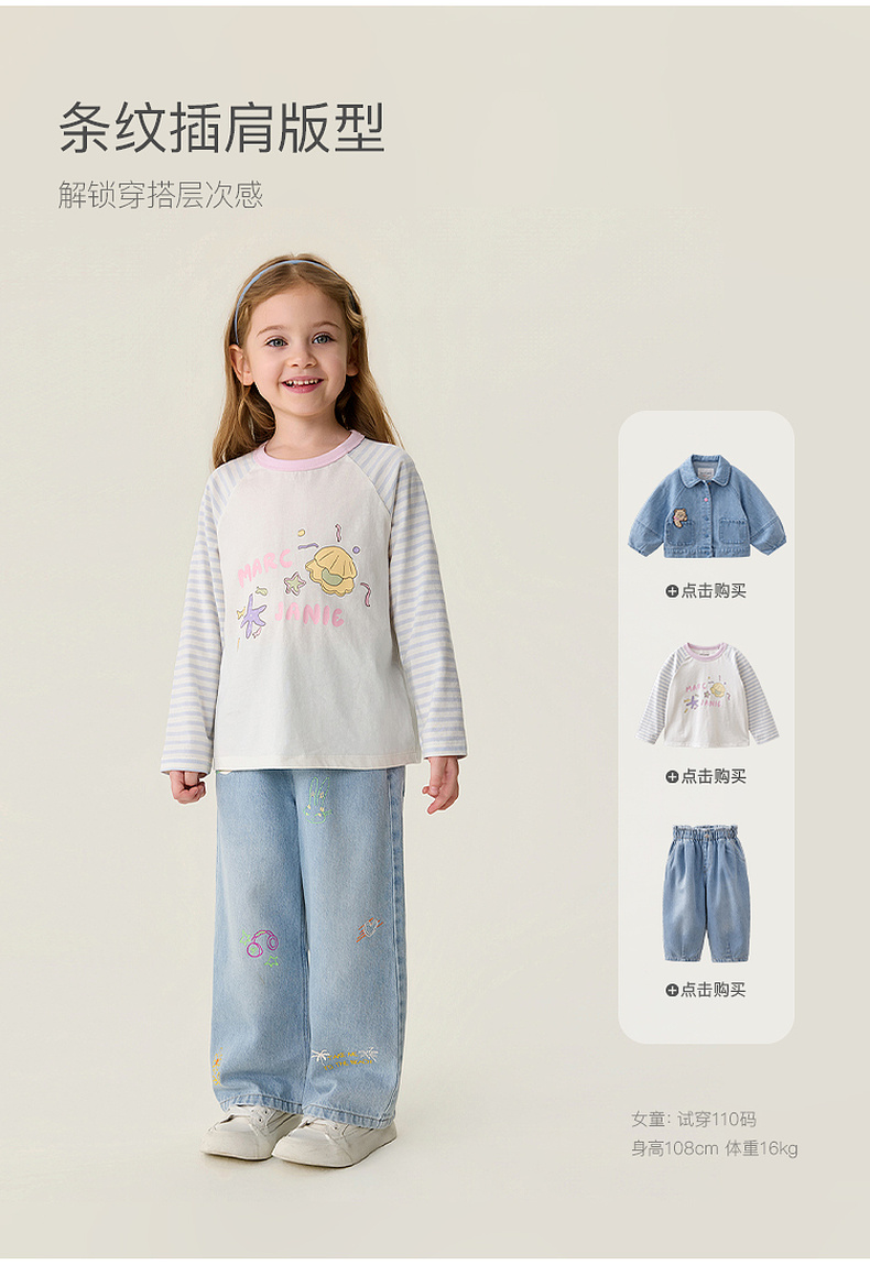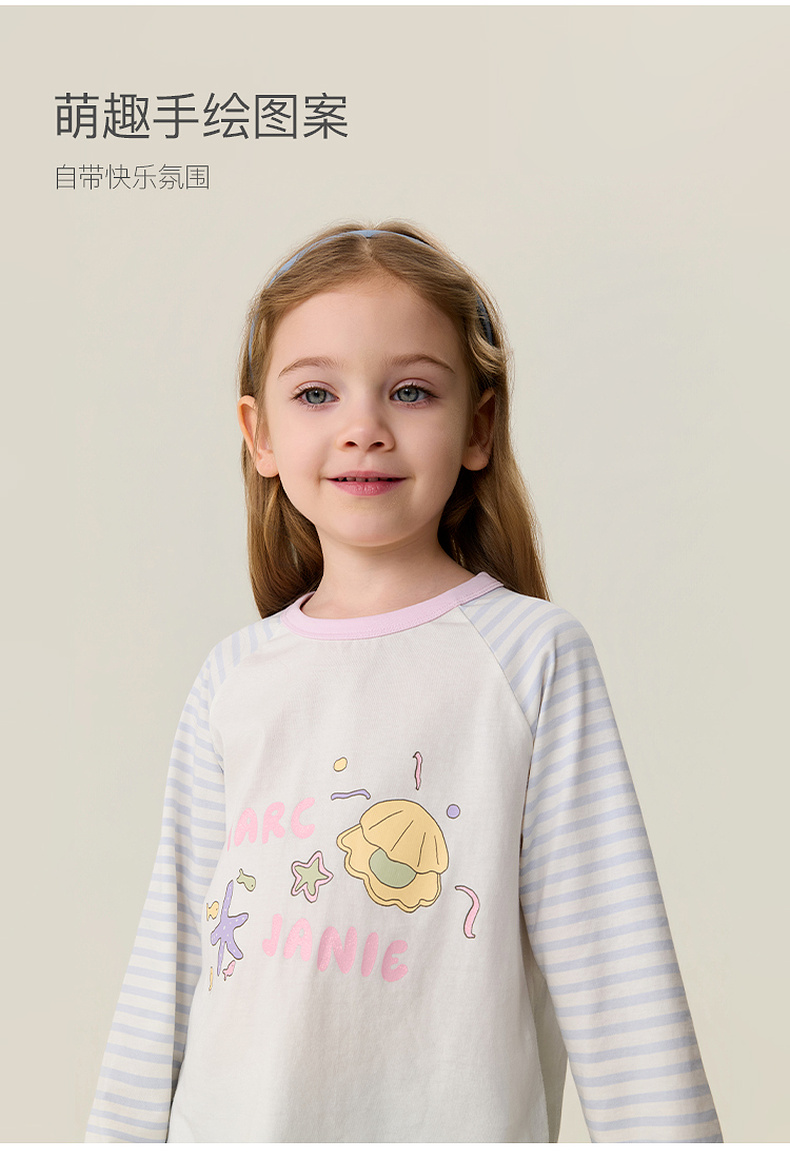 马克珍妮多彩条纹女童纯棉手绘T恤2026年春装新款560119