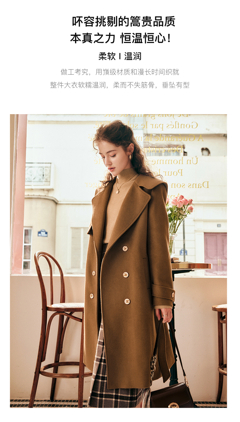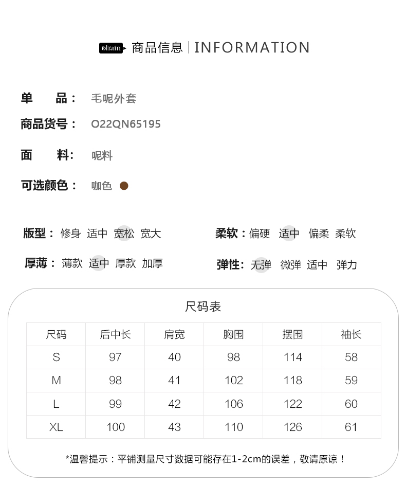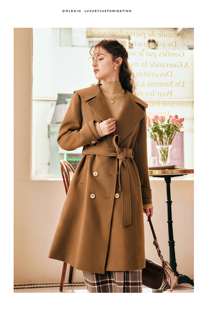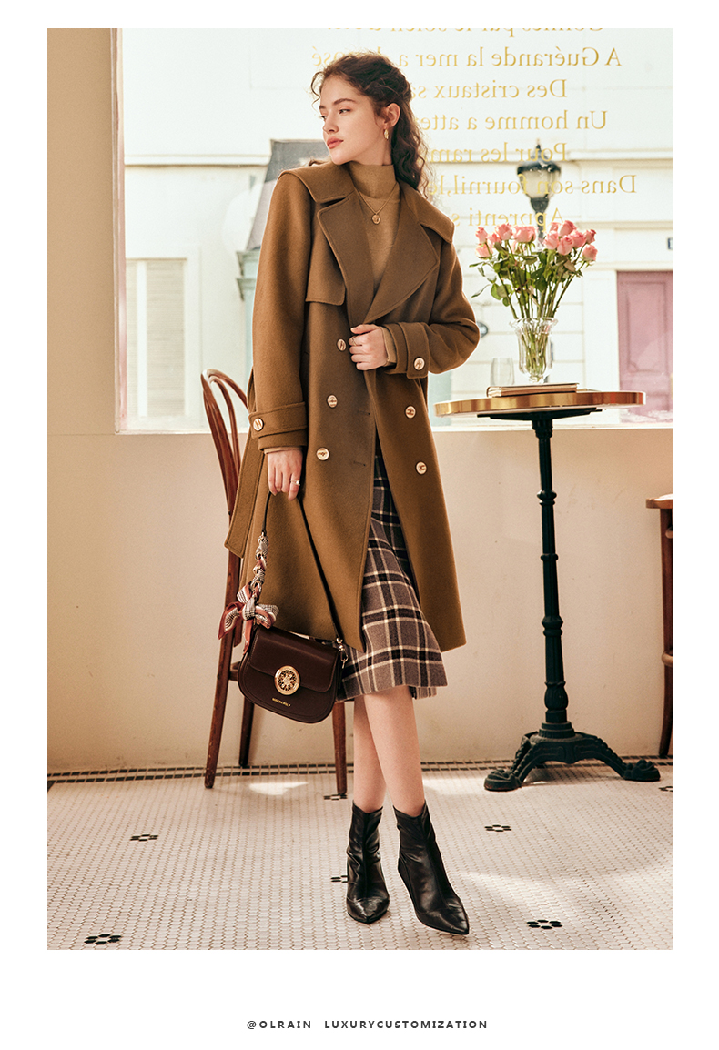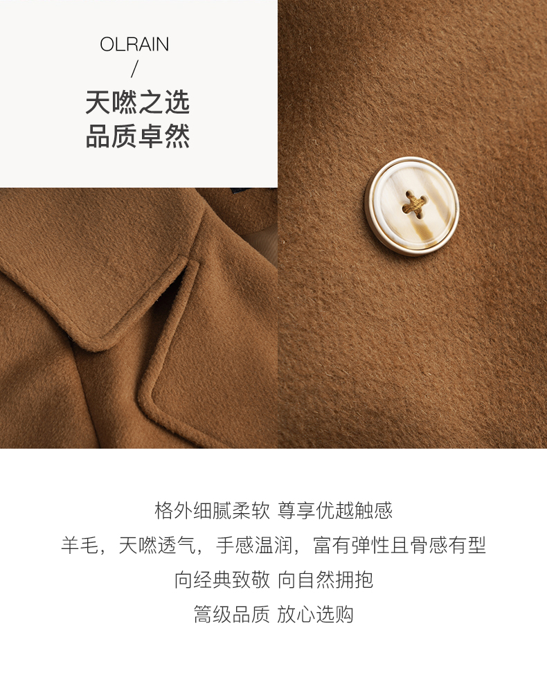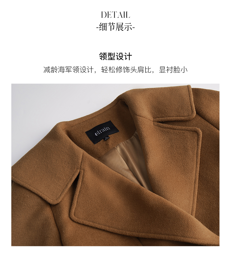 OLrain欧芮儿法式领毛呢外套女冬2025新款咖色羊毛中长大衣