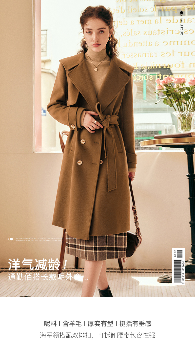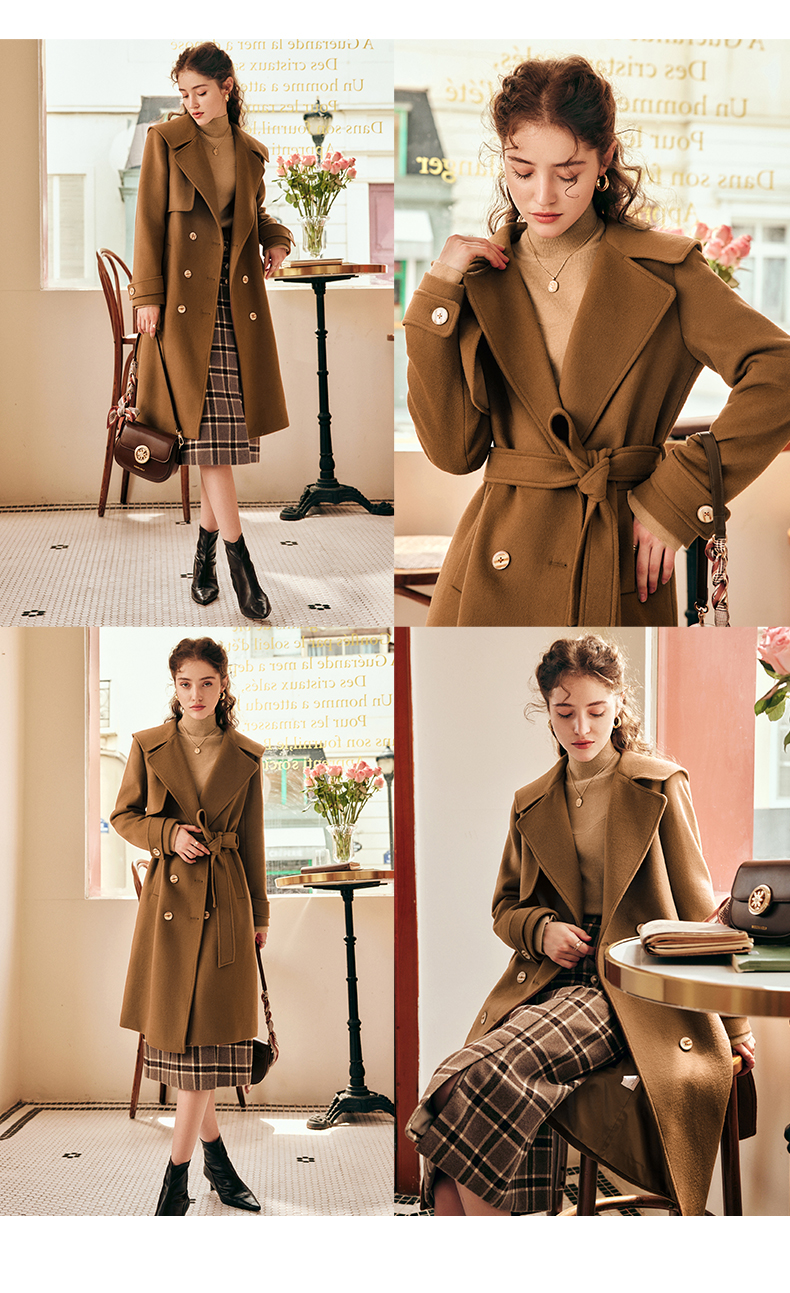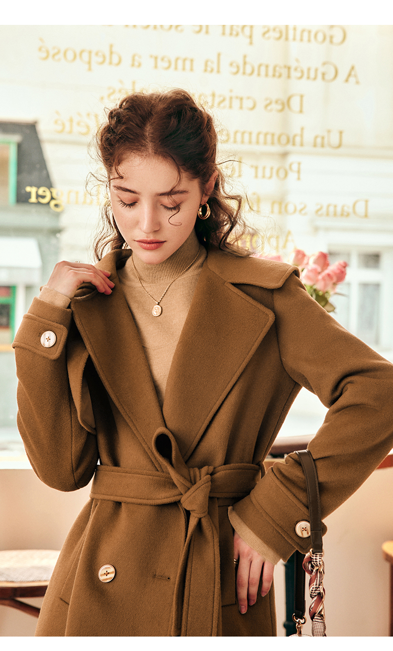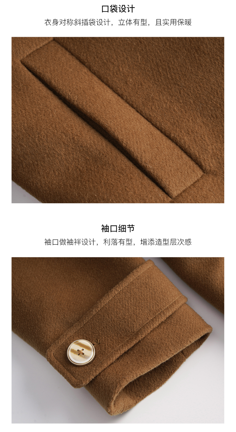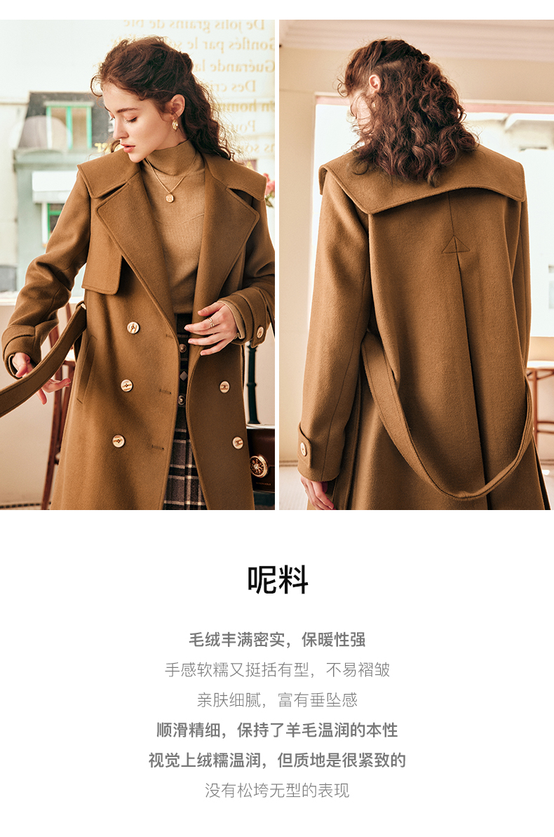 OLrain欧芮儿法式领毛呢外套女冬2025新款咖色羊毛中长大衣