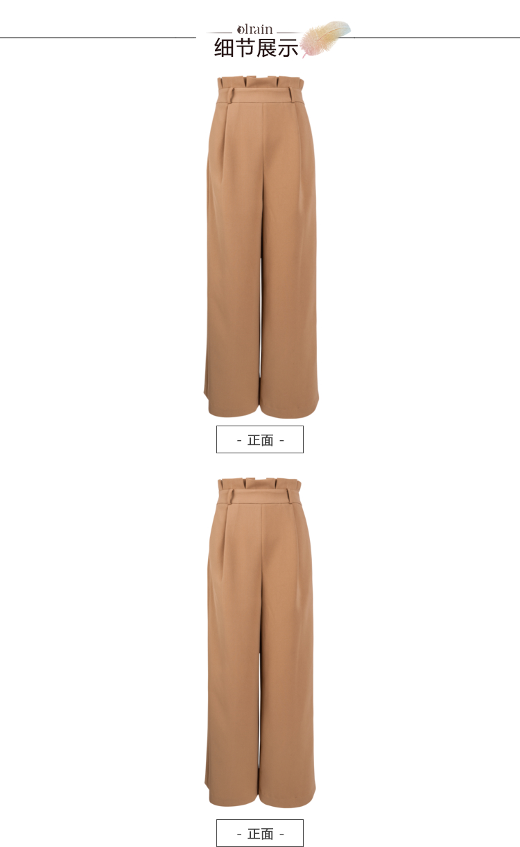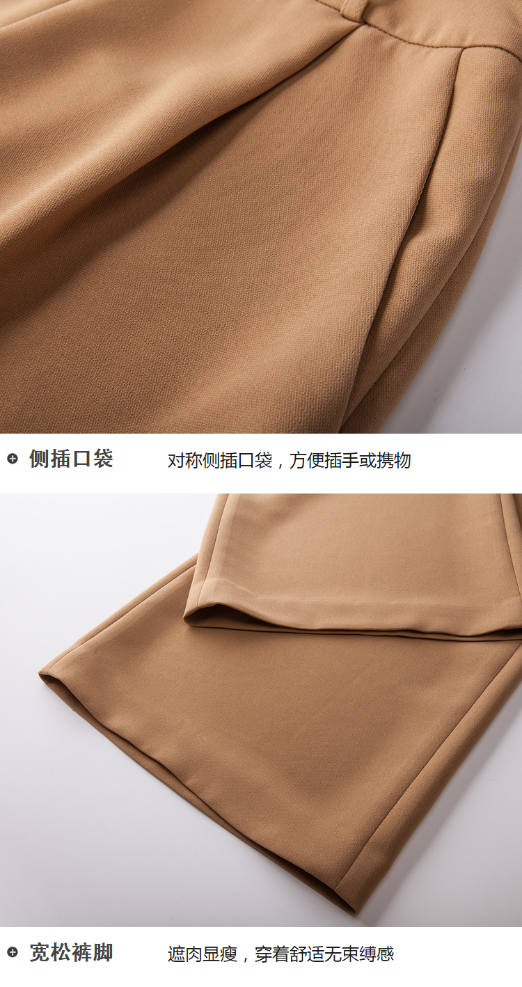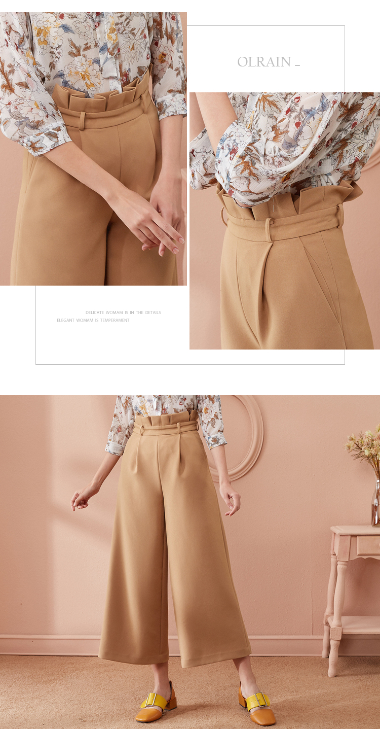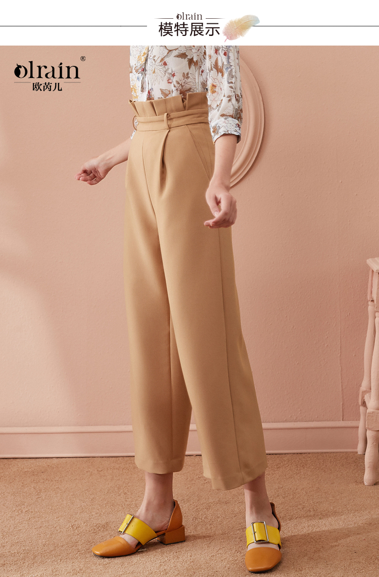欧芮儿春装2019款女装收腰驼色直筒阔腿裤女裤宽松休闲九分裤潮