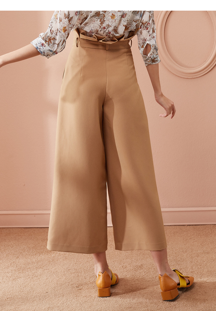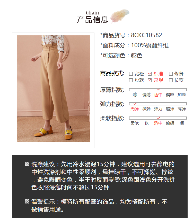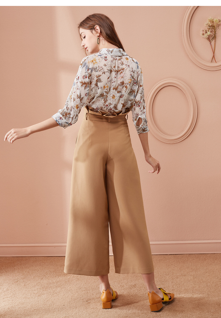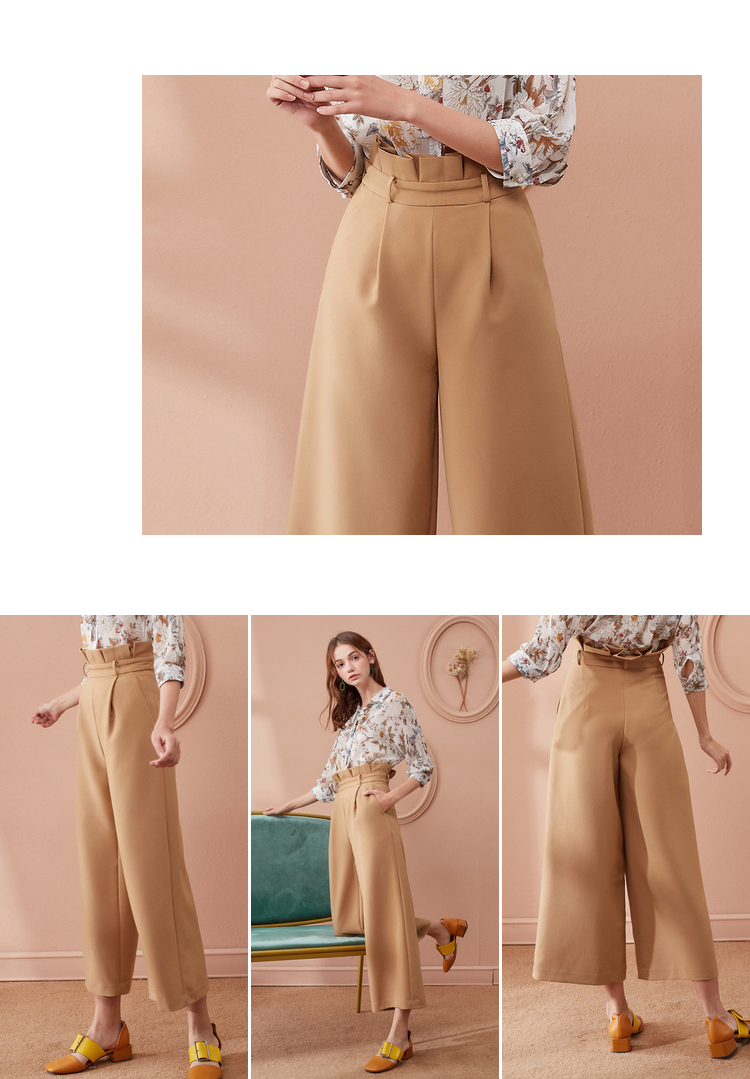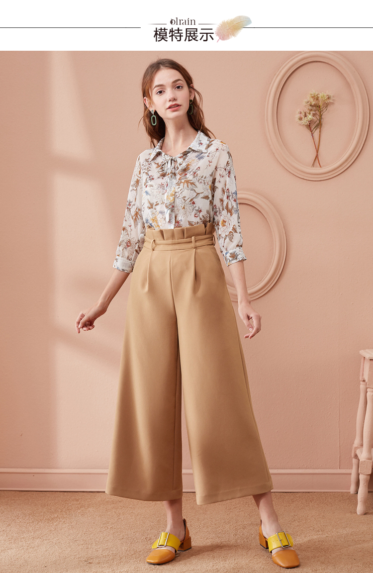 欧芮儿春装2019款女装收腰驼色直筒阔腿裤女裤宽松休闲九分裤潮