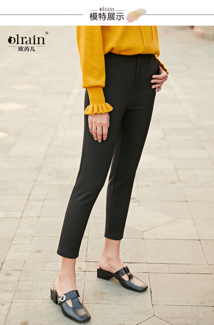 欧芮儿加绒保暖休闲裤女九分裤秋冬女2019新款直筒裤小脚裤女裤