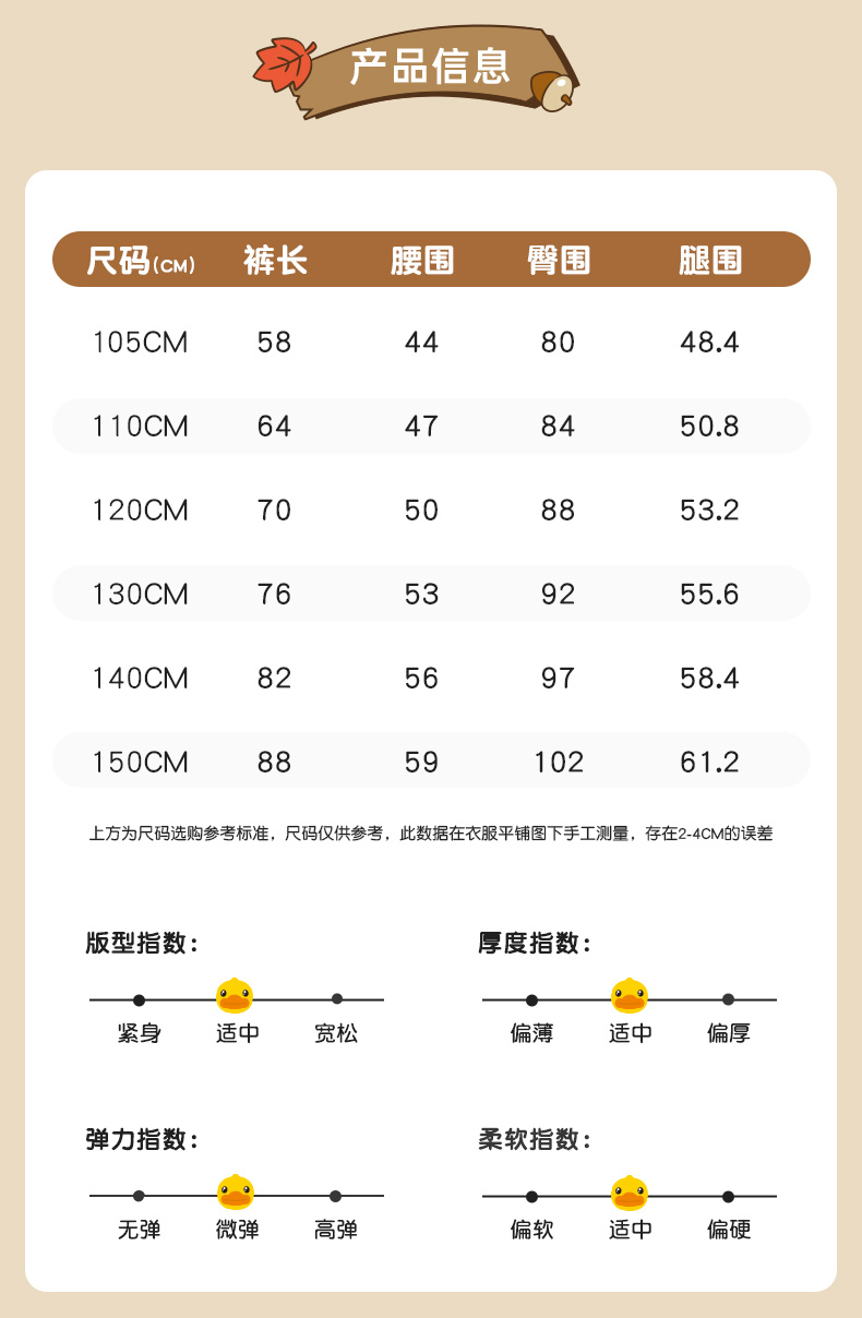 B.Duck小黄鸭童装春秋针织长裤105-150 BF3463051A