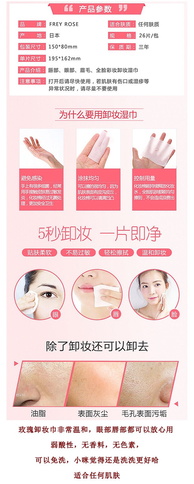 原装正品日本Frey rose 大马士革玫瑰精华卸妆巾26枚装-会员6折