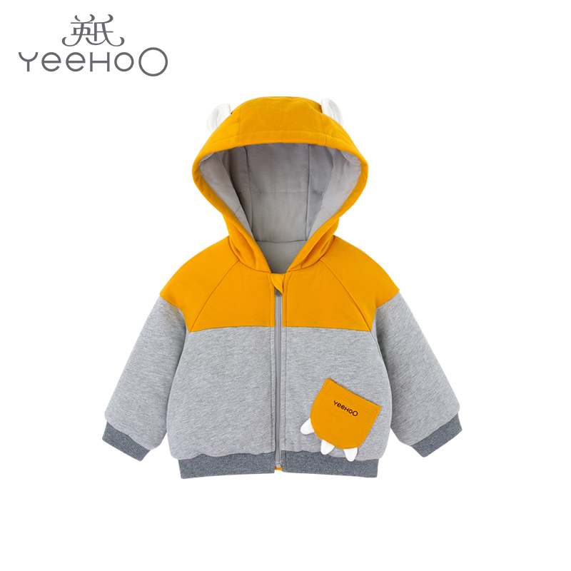 英氏-童衣类(冬)C9英针短帽外套 花灰