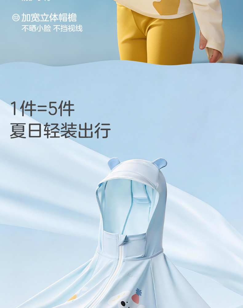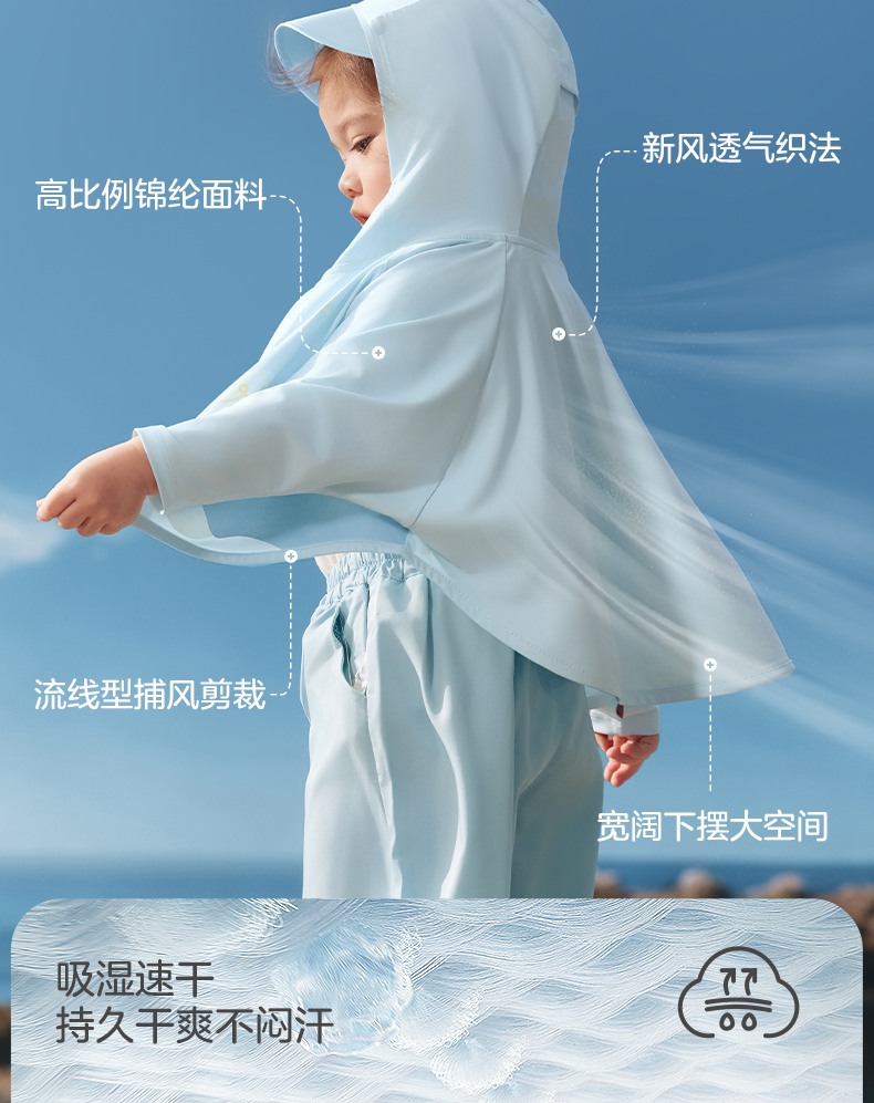 粒粒阳光儿童防晒衣防紫外线冰感面料夏日户外透气轻薄款