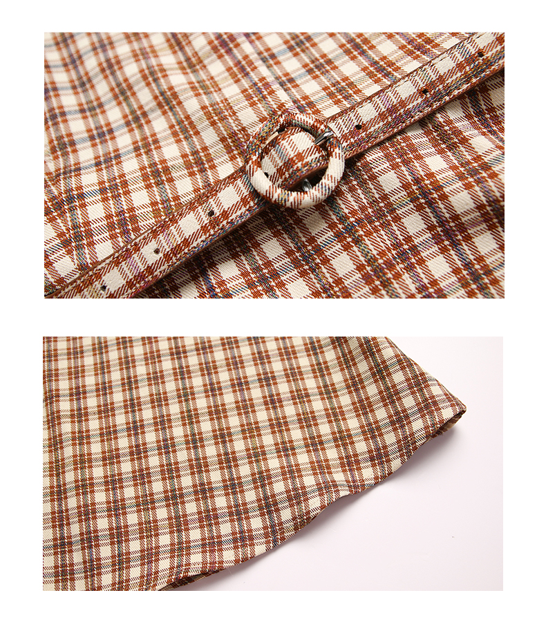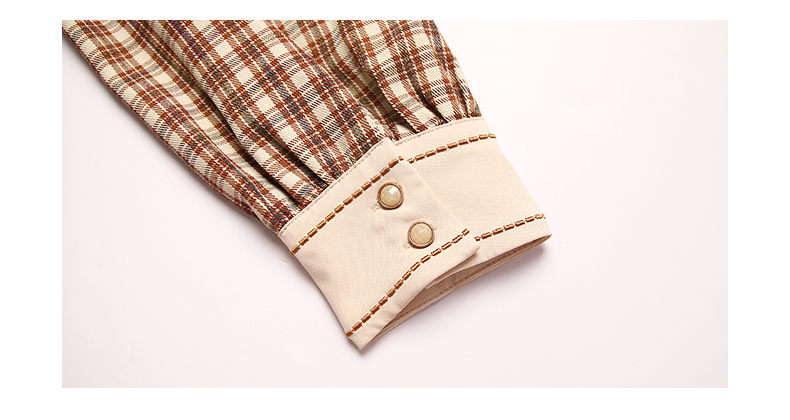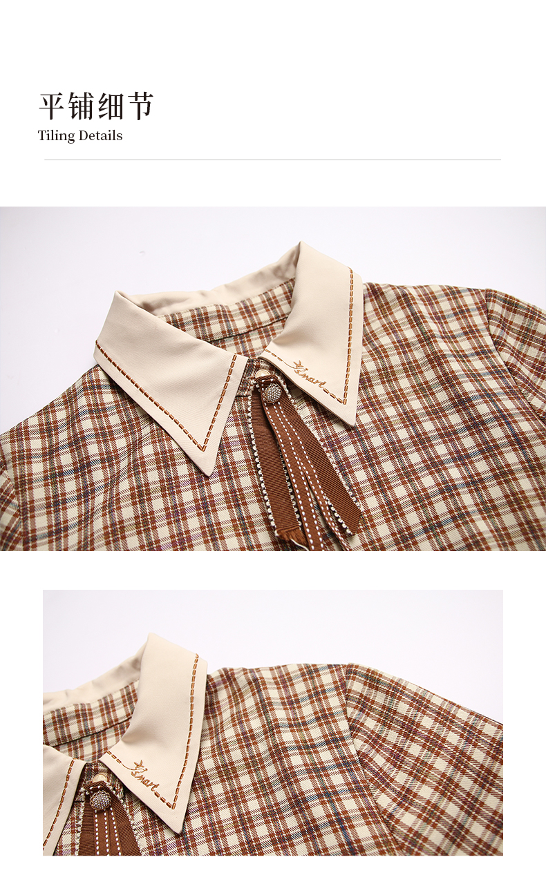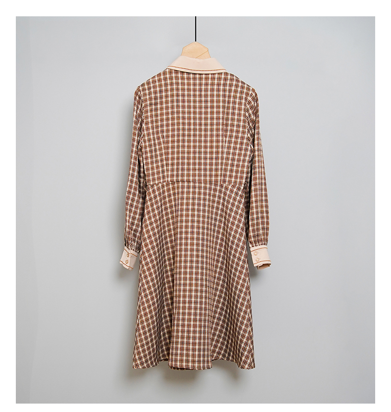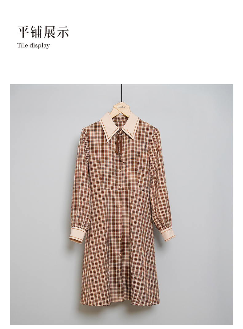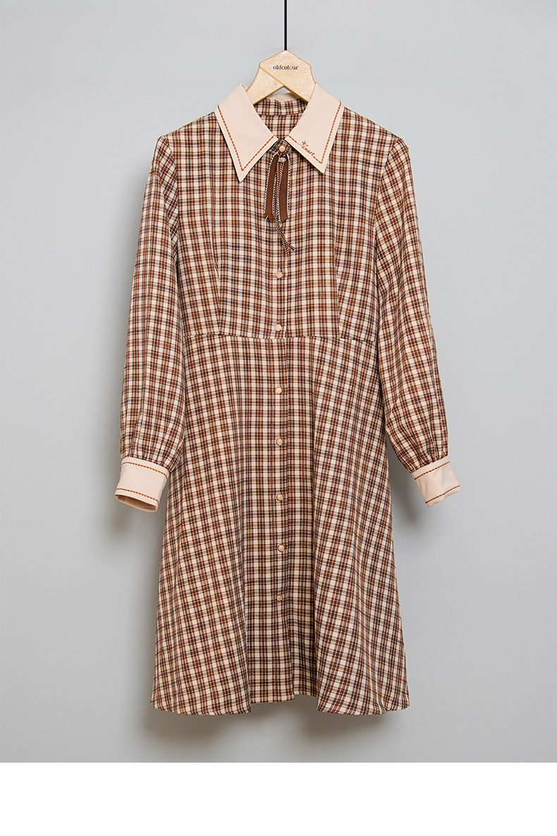 oldcolour格子连衣裙高腰减龄时尚气质长袖中长裙女DN13103008