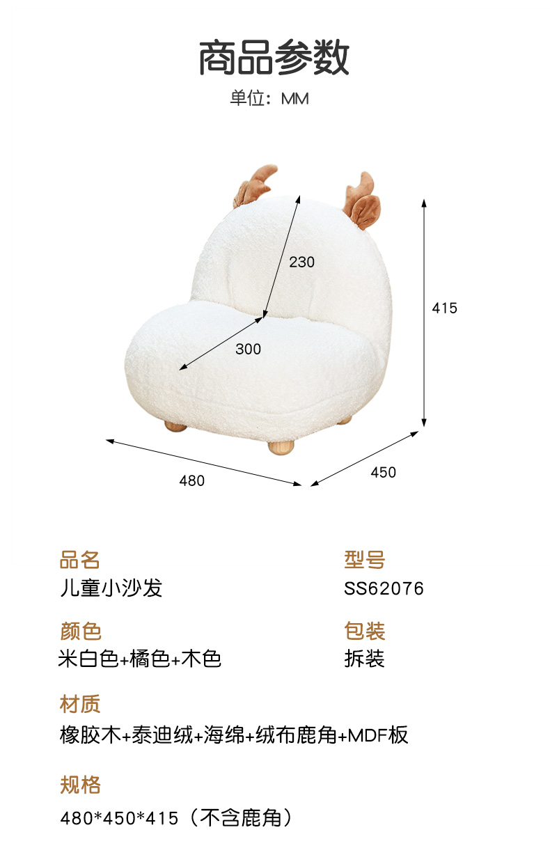 喜梦宝儿童椅客厅家用卡通沙发可爱小型宝宝沙发 小白鹿