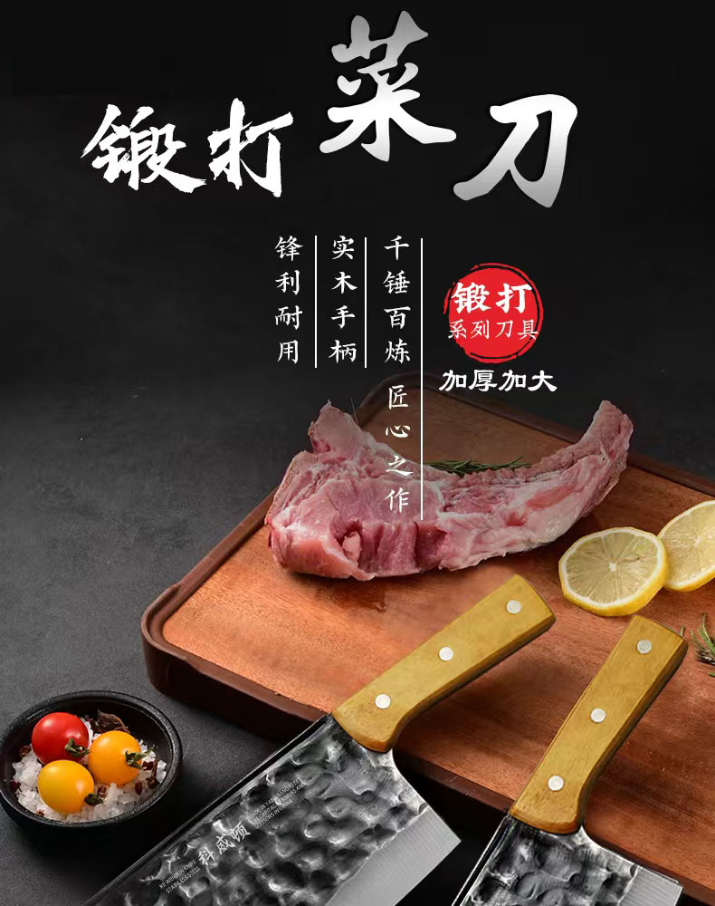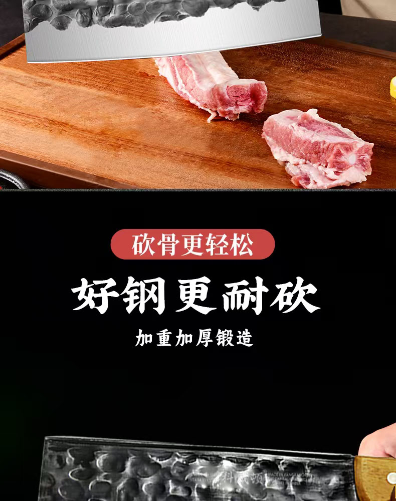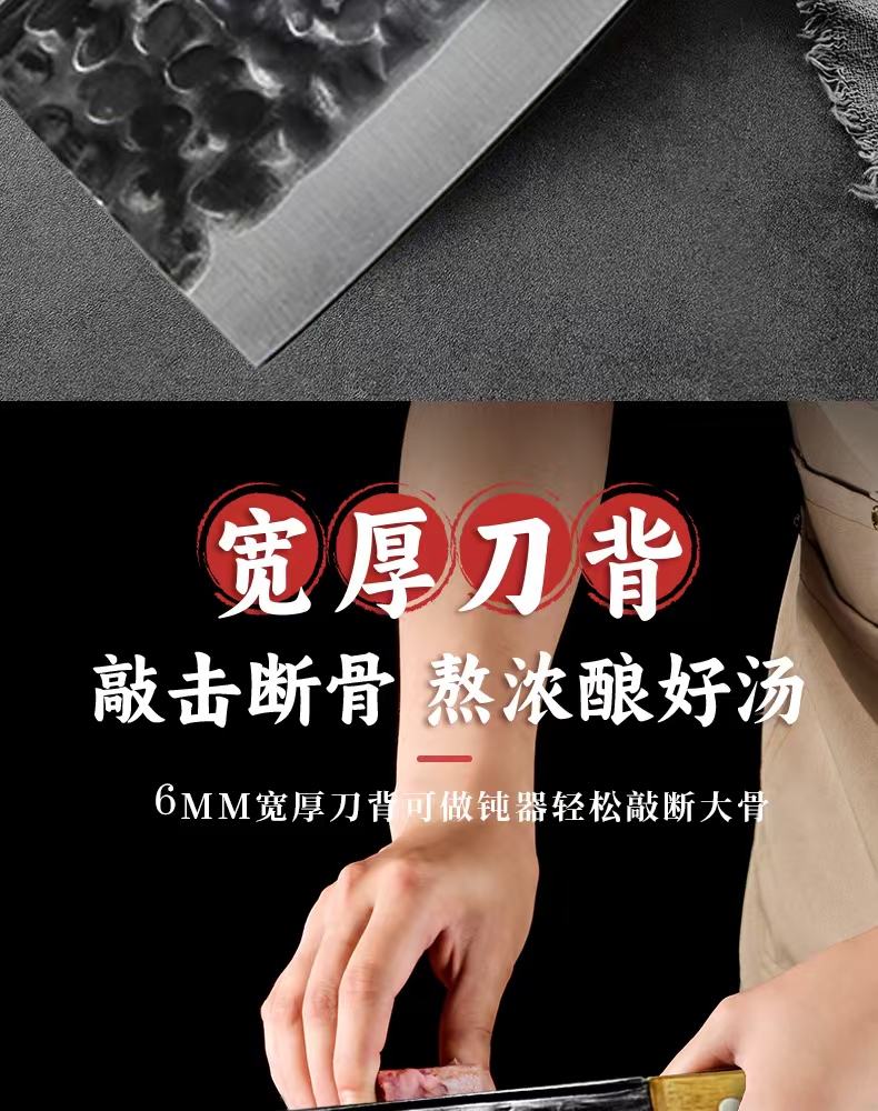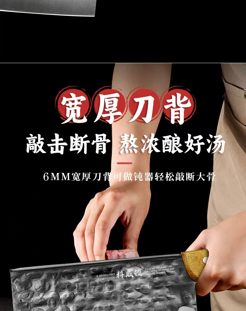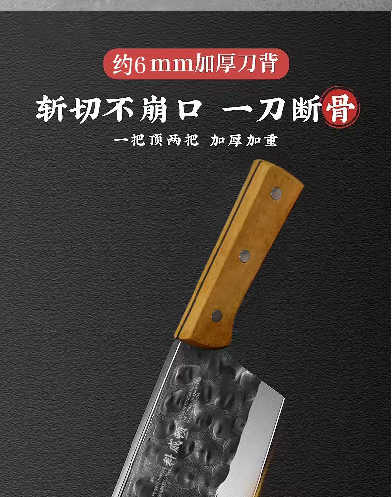 立减6【科威顿黄柄扁鹊加厚6毫米厚背斩切刀木柄斩切刀斩骨刀菜刀】#异业福利