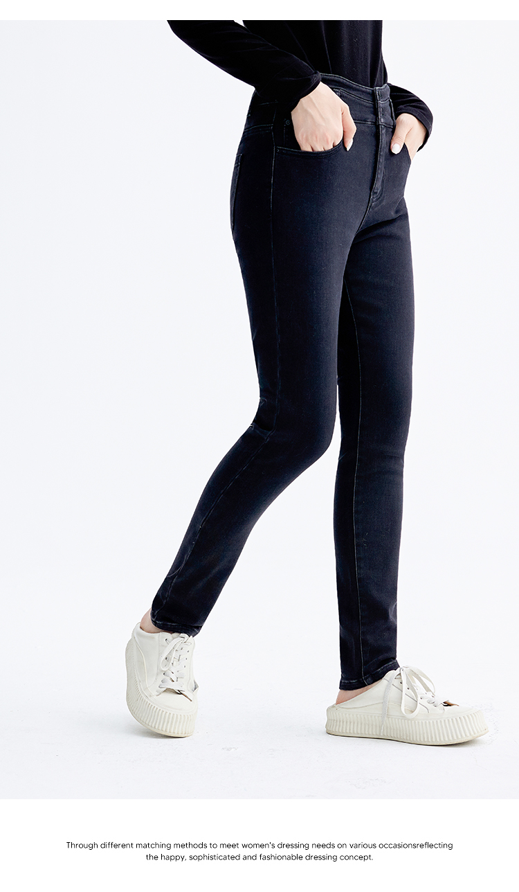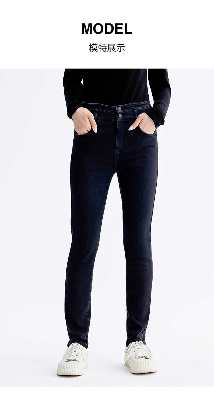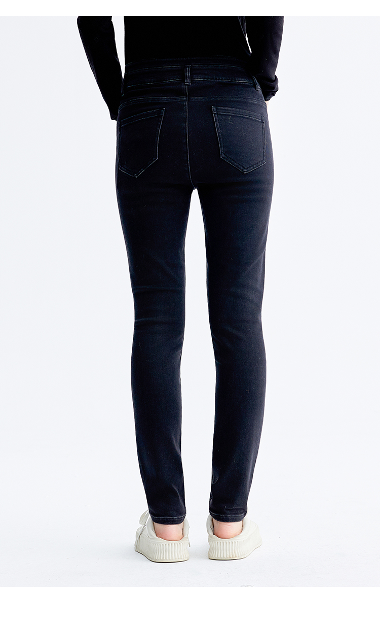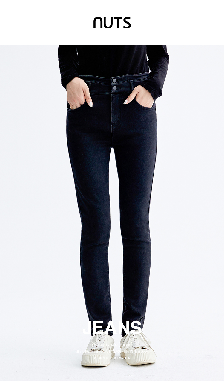 NUTS那时商场同款冬黑色高腰修身铅笔裤水洗牛仔长裤女5491103A1