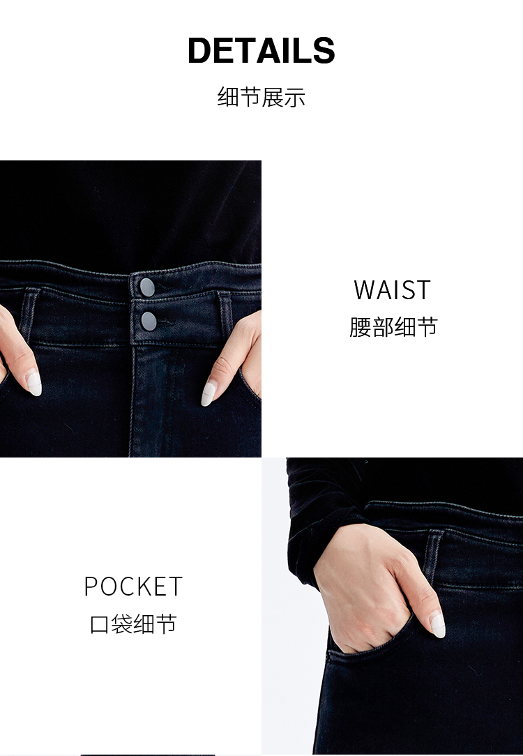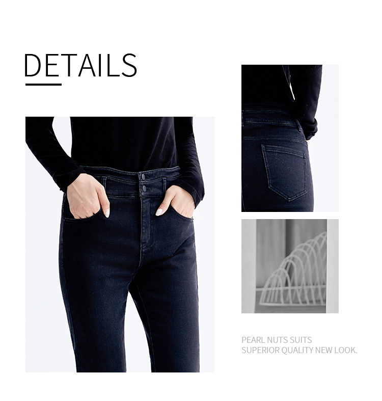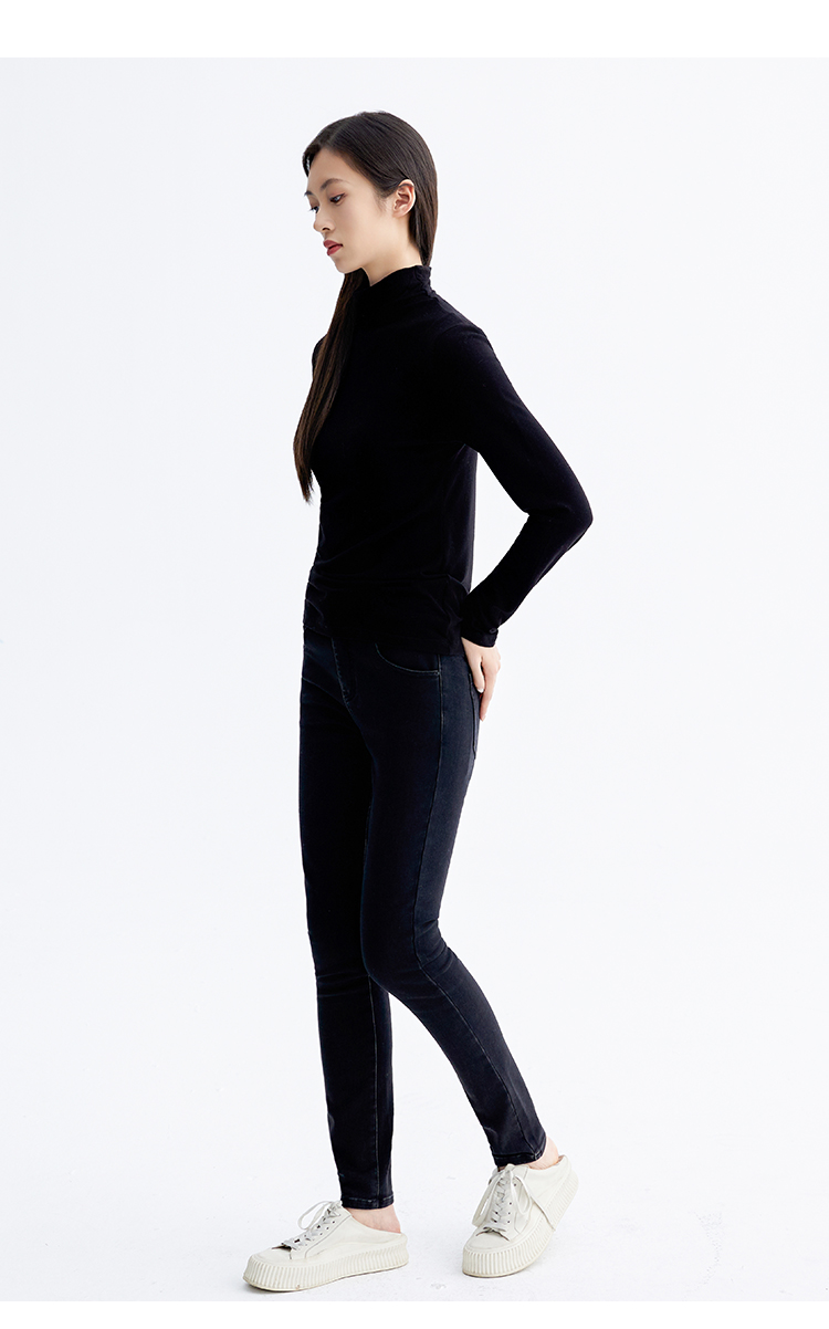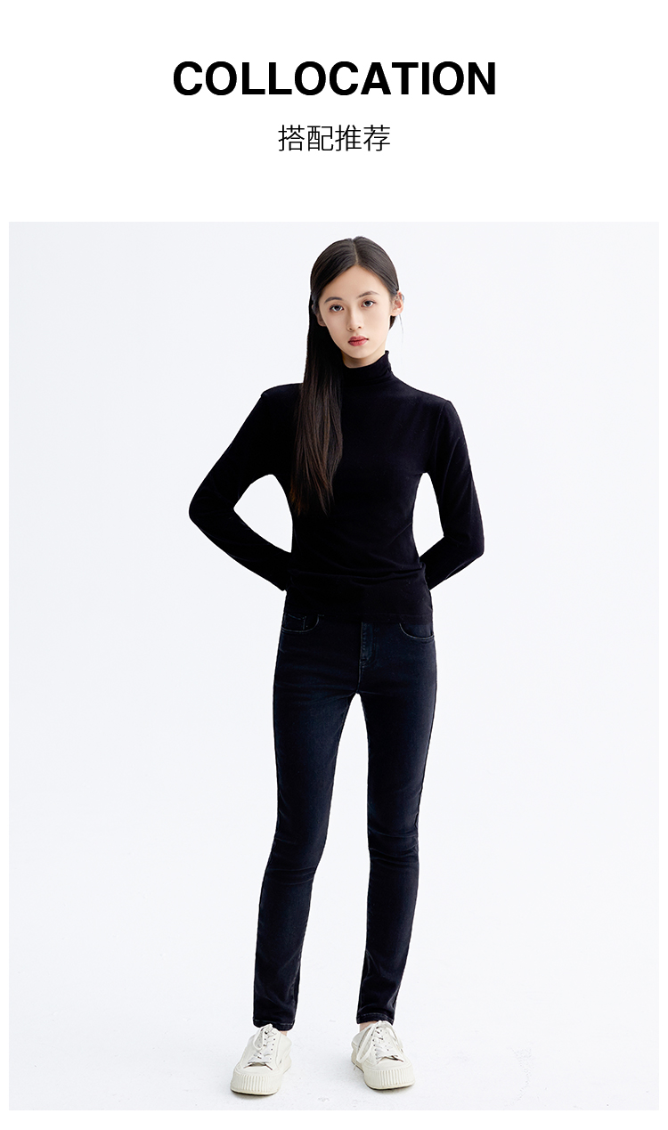 NUTS那时商场同款冬黑色高腰修身铅笔裤水洗牛仔长裤女5491103A1