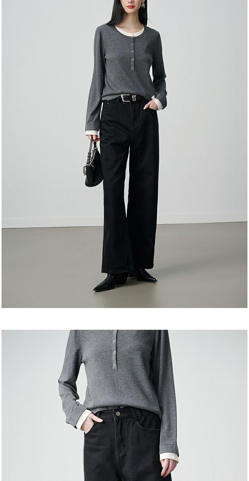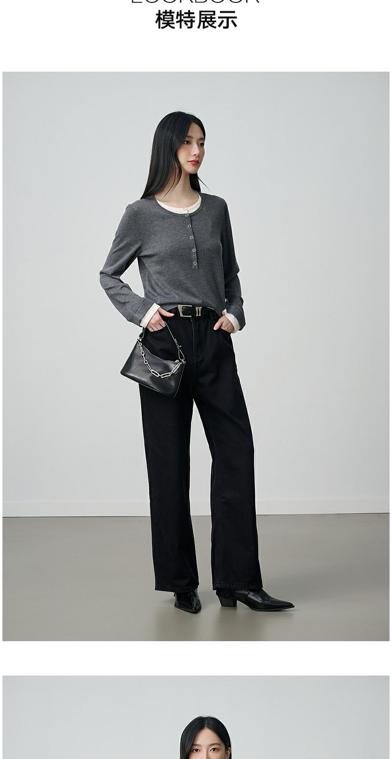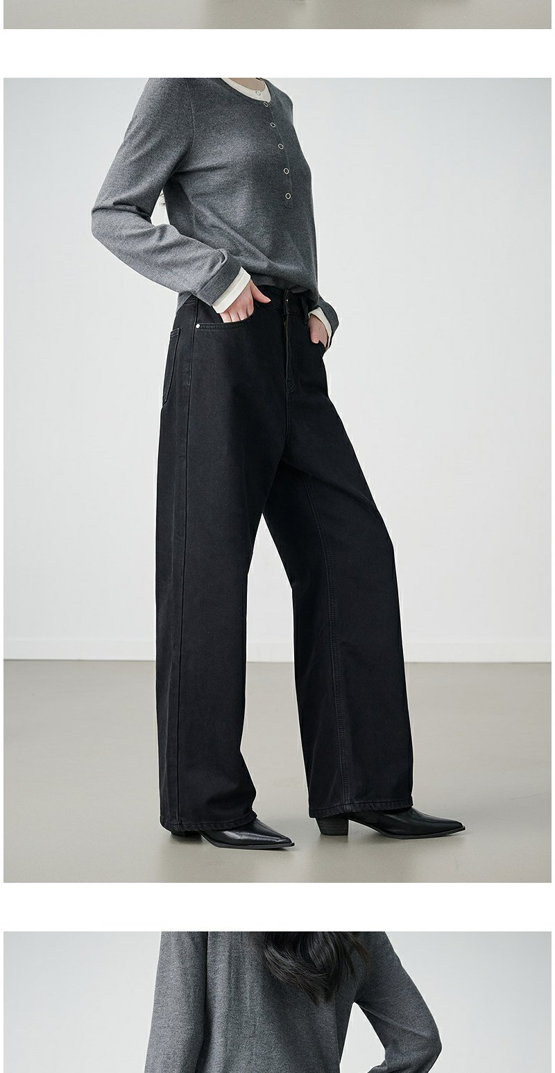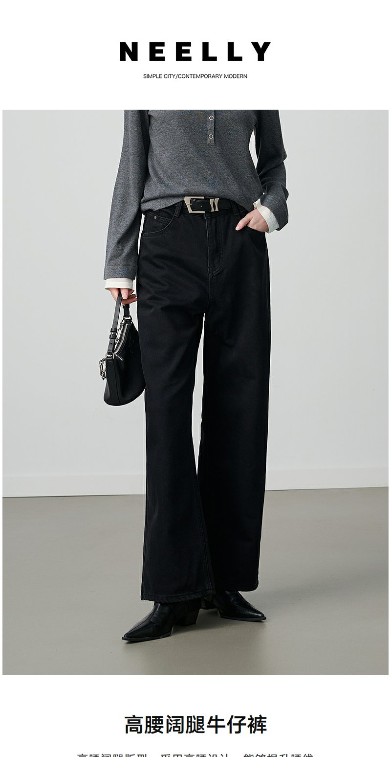 NEELLY纳俪商场同款冬季新款时尚高腰直筒牛仔裤女百搭显瘦长裤N25104H04523